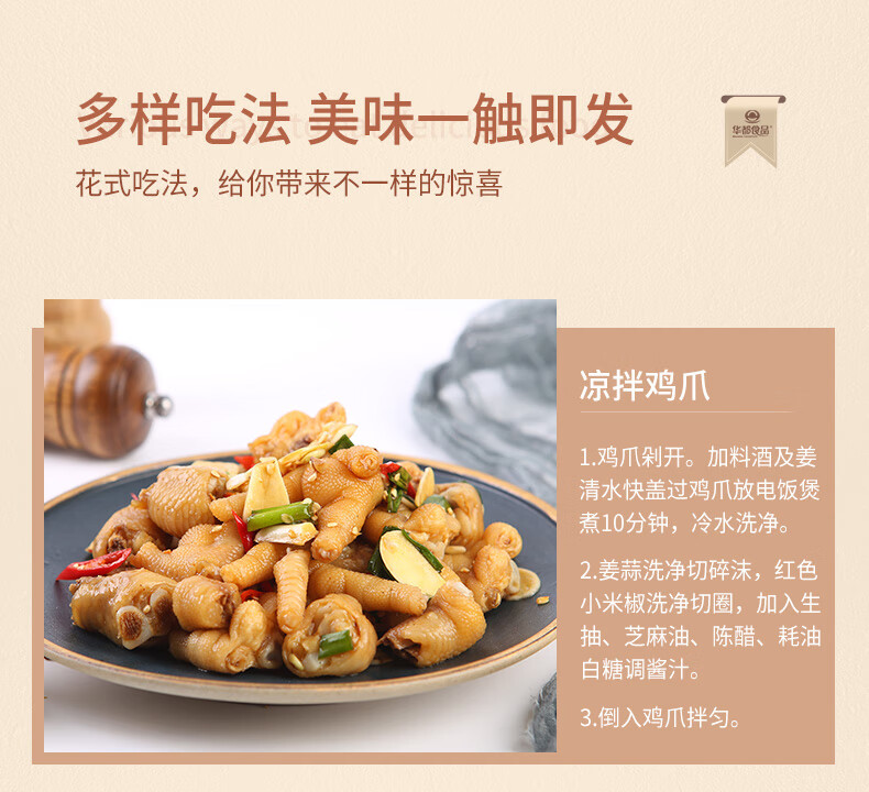 华都食品鸡爪2斤 卤鸡爪 柠檬鸡爪 无骨鸡爪脱骨鸡爪食材