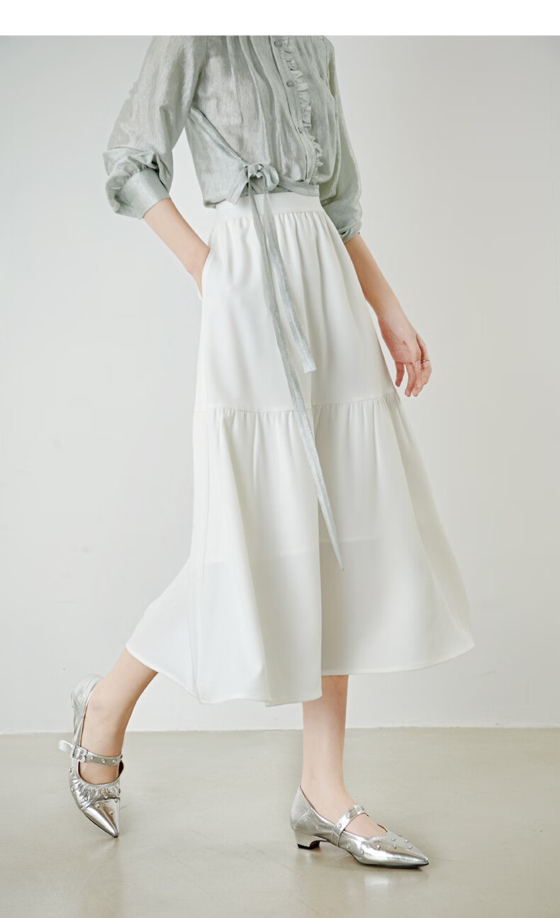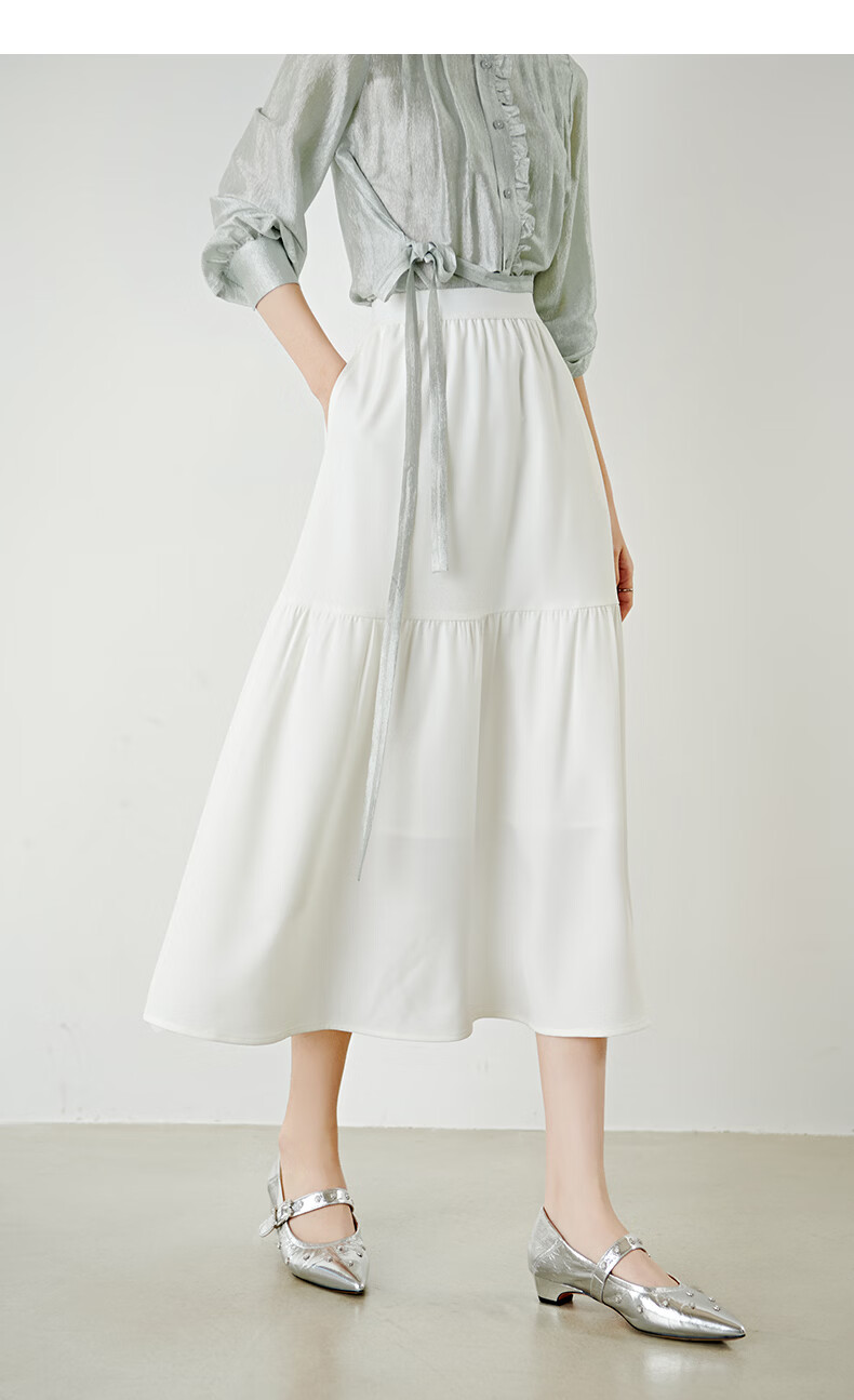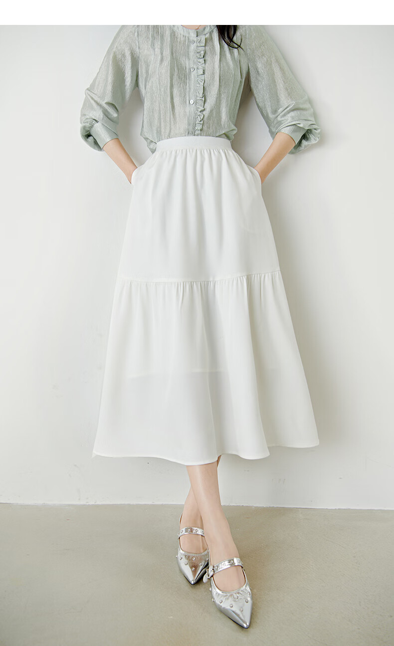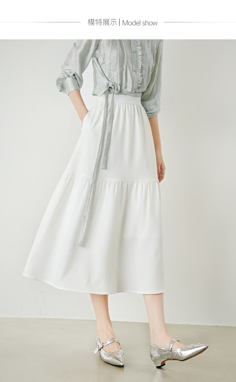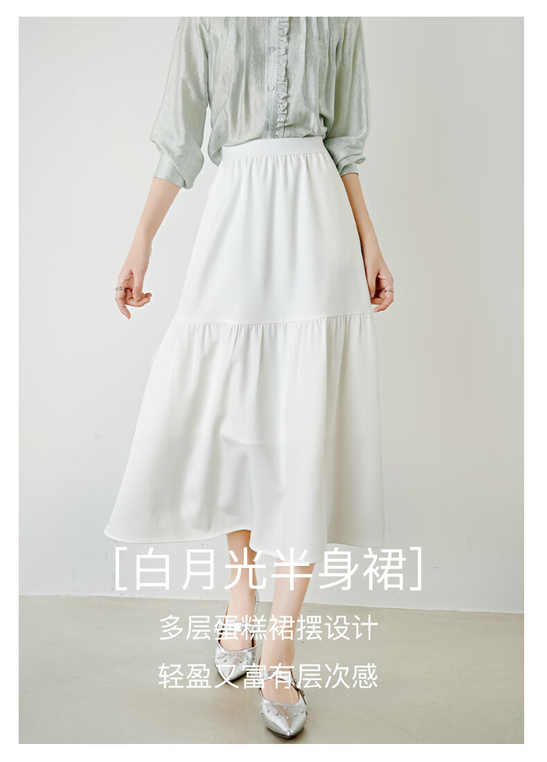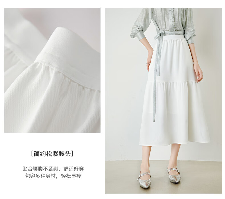 晚白【新品】2026年春款时尚半身裙松紧高腰显瘦垂顺大摆蛋糕裙 白色 XL