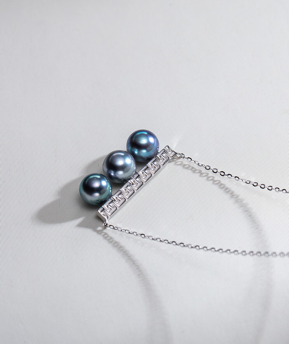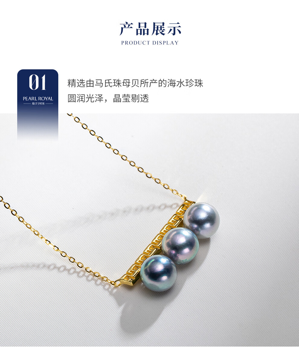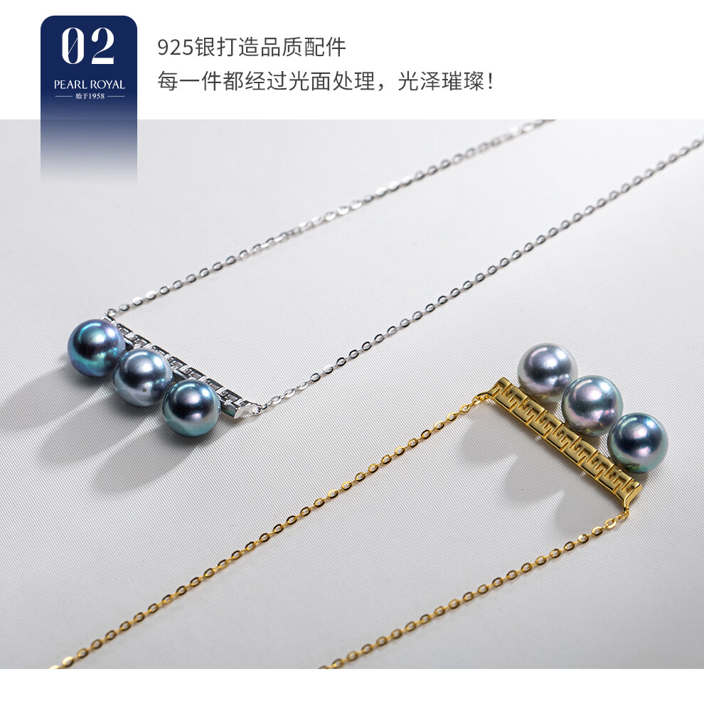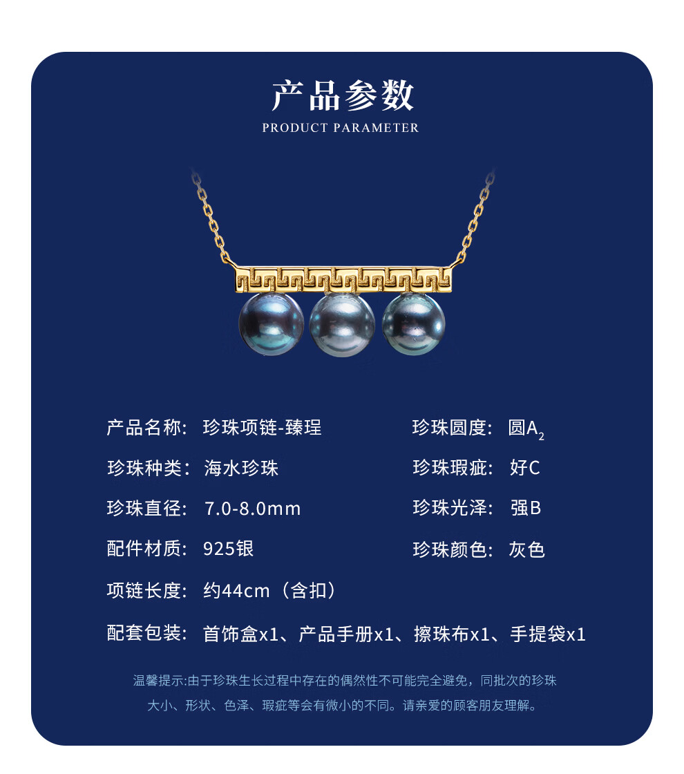 南珠宫臻珵真多麻925银平衡木海水珍珠项链强光圆形新年礼物送妈妈 金色款 7.0-8.0mm