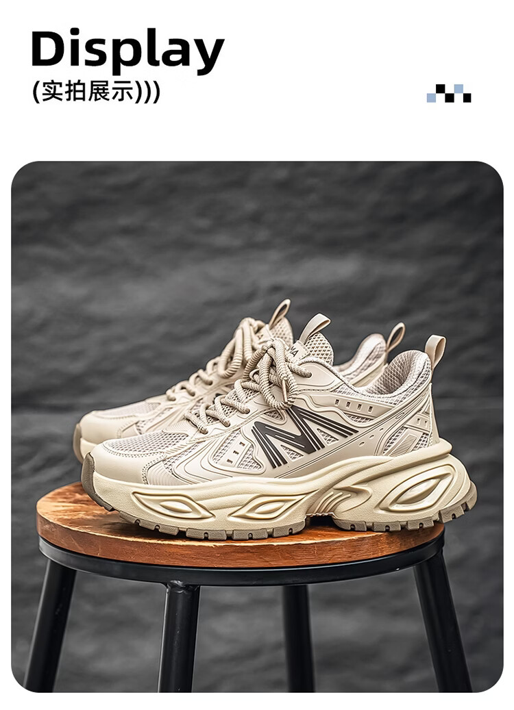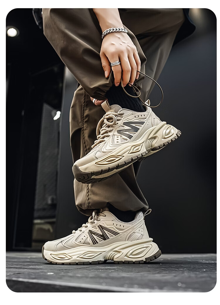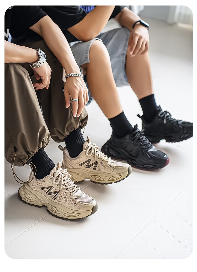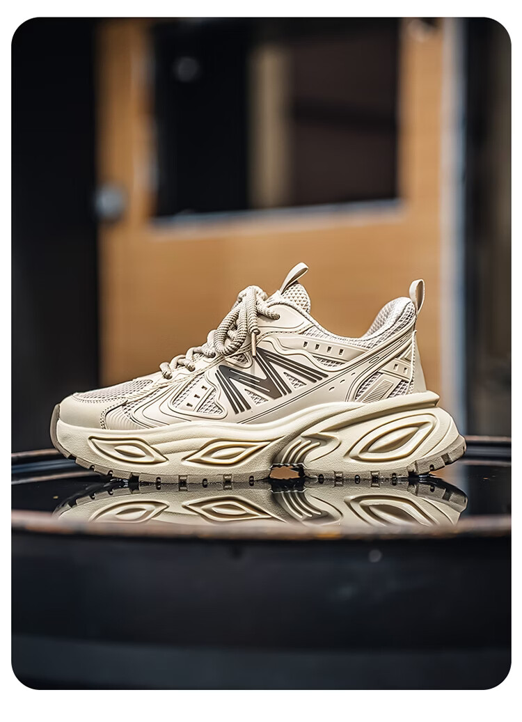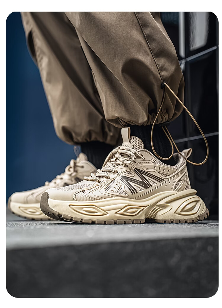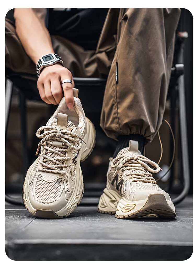 森馬男鞋2026新款春季青少年户外休闲跑步运动鞋男士厚底减震老爹潮鞋 卡其【基础款】 39 标准码数/现货秒发