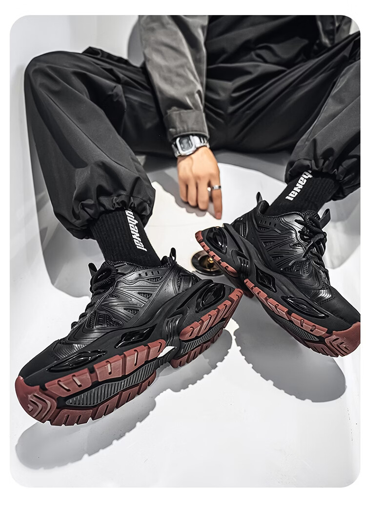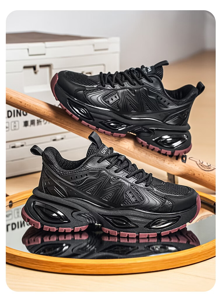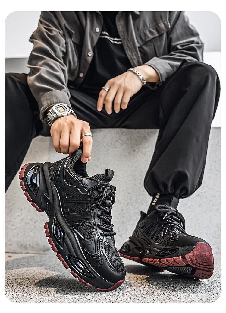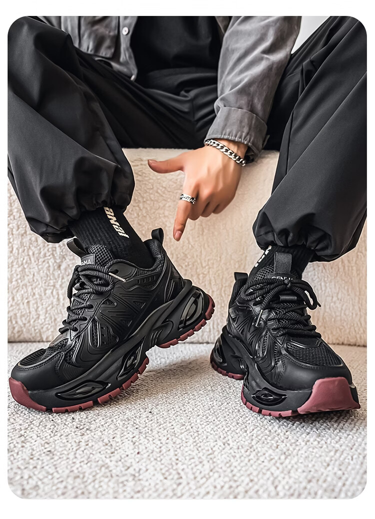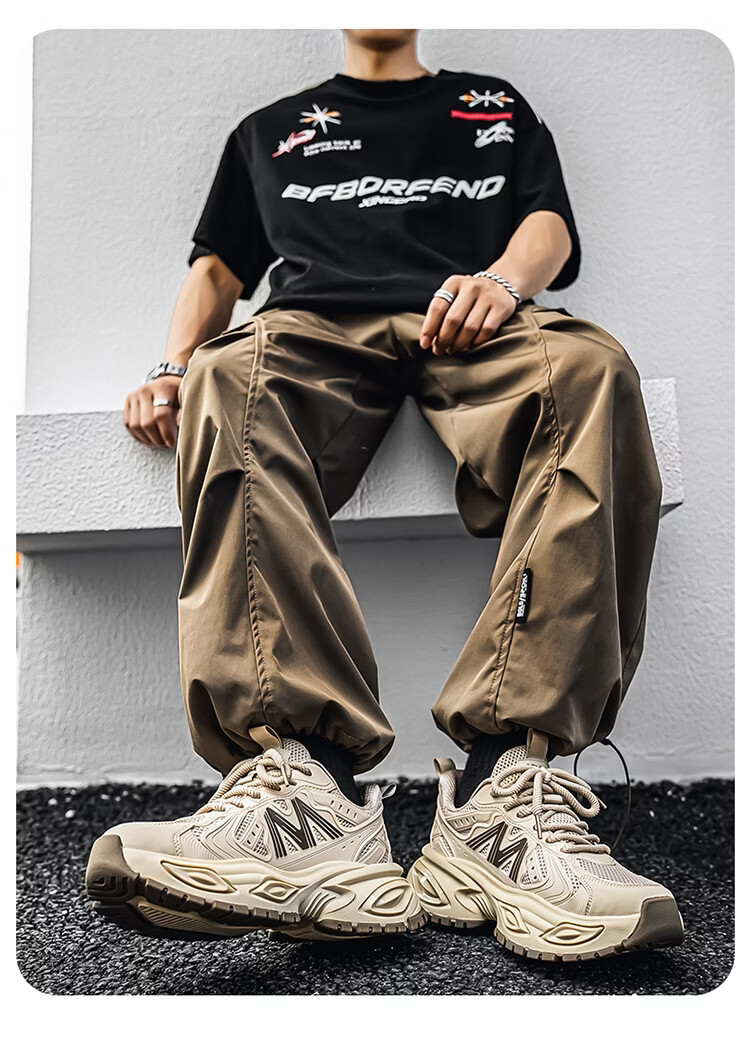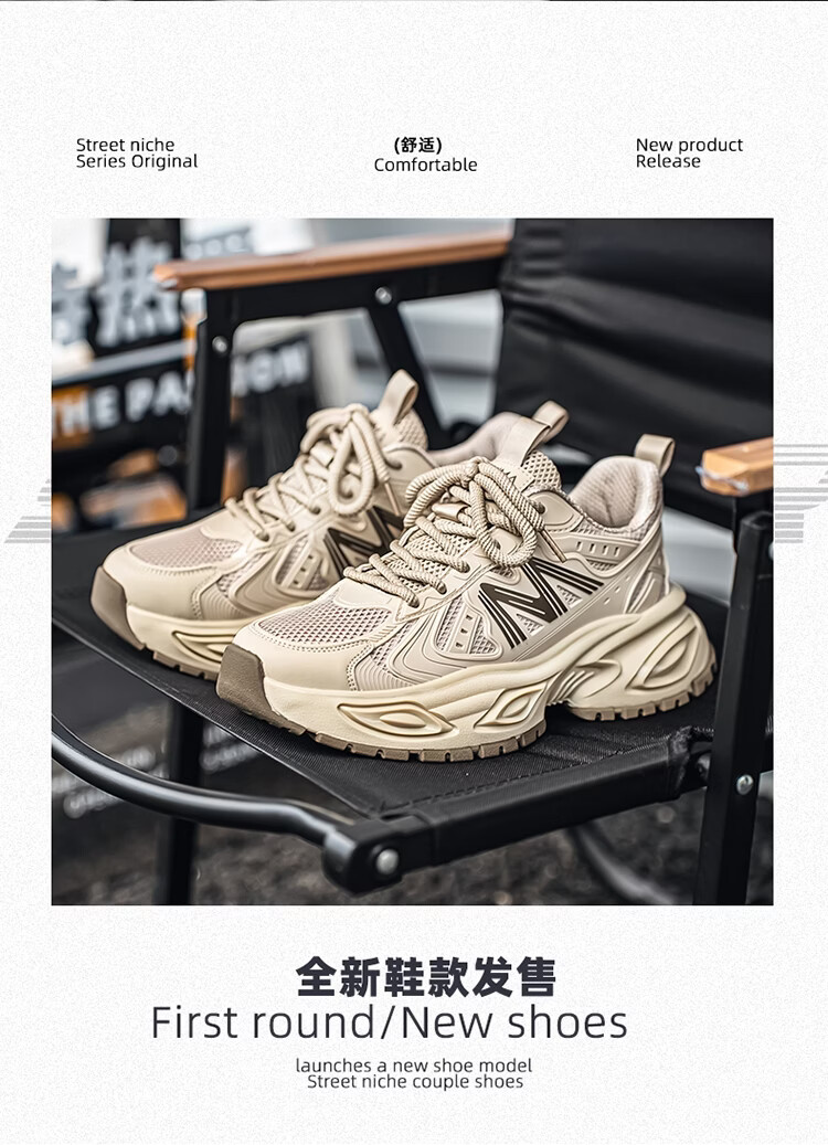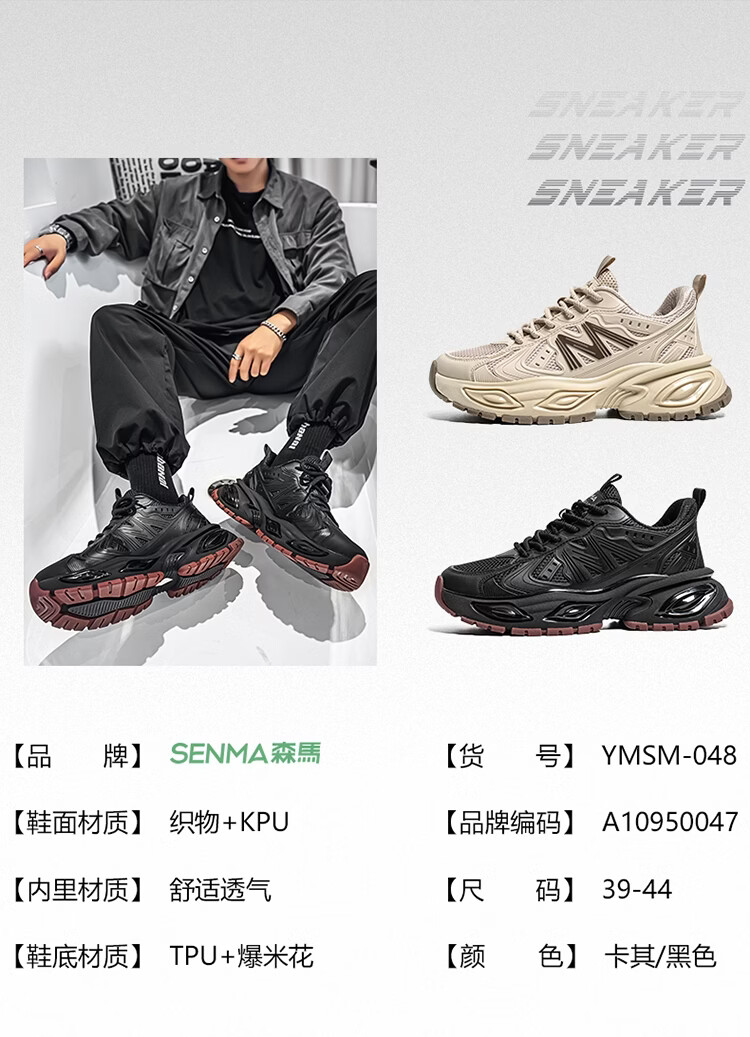 森馬男鞋2026新款春季青少年户外休闲跑步运动鞋男士厚底减震老爹潮鞋 卡其【基础款】 39 标准码数/现货秒发