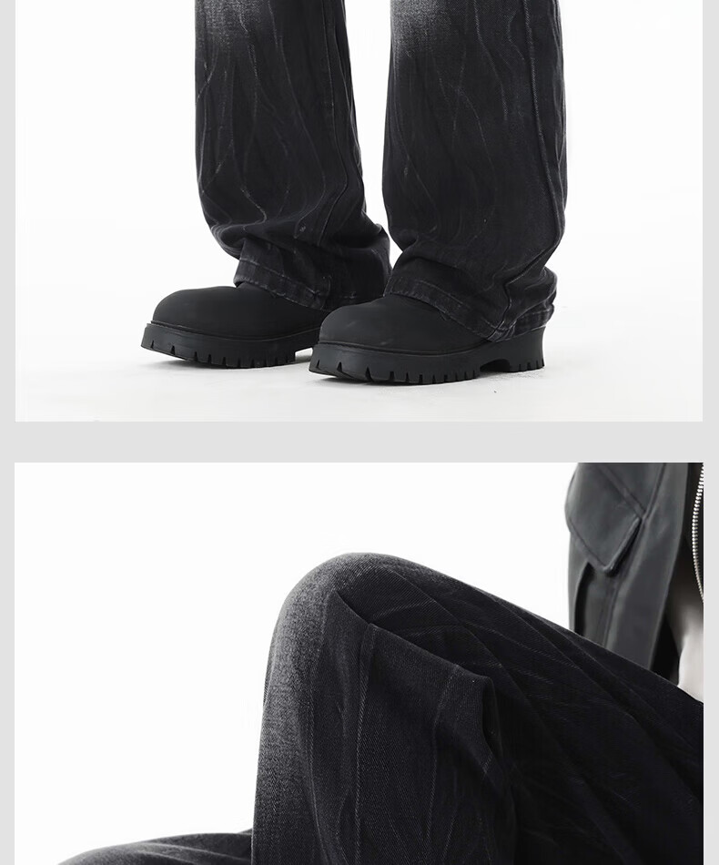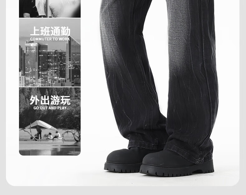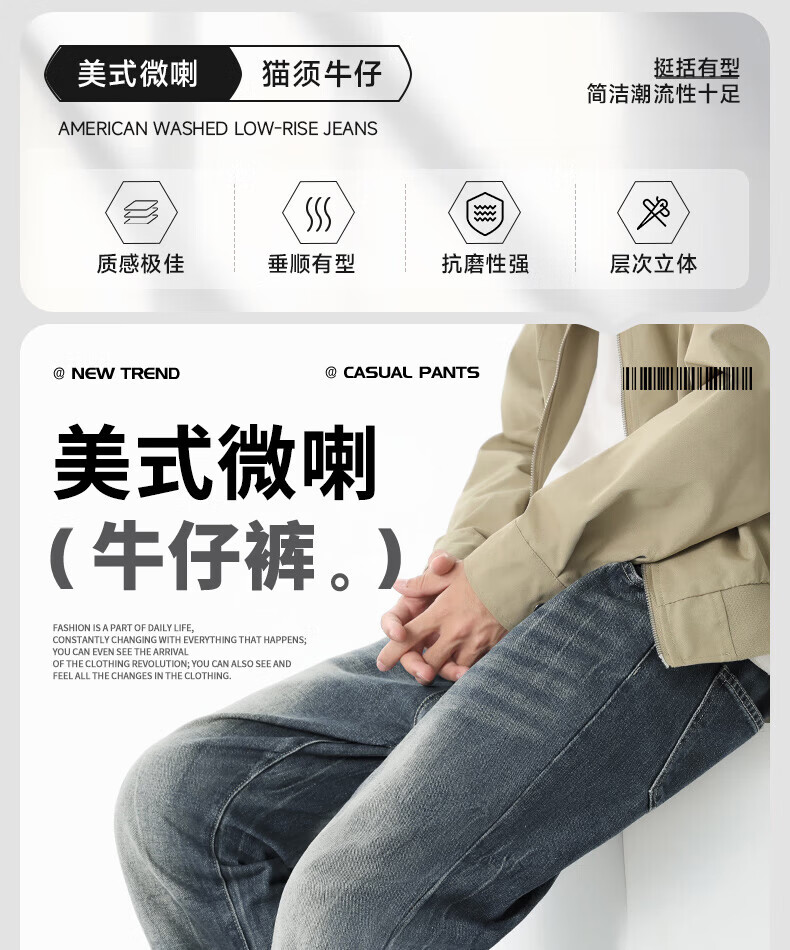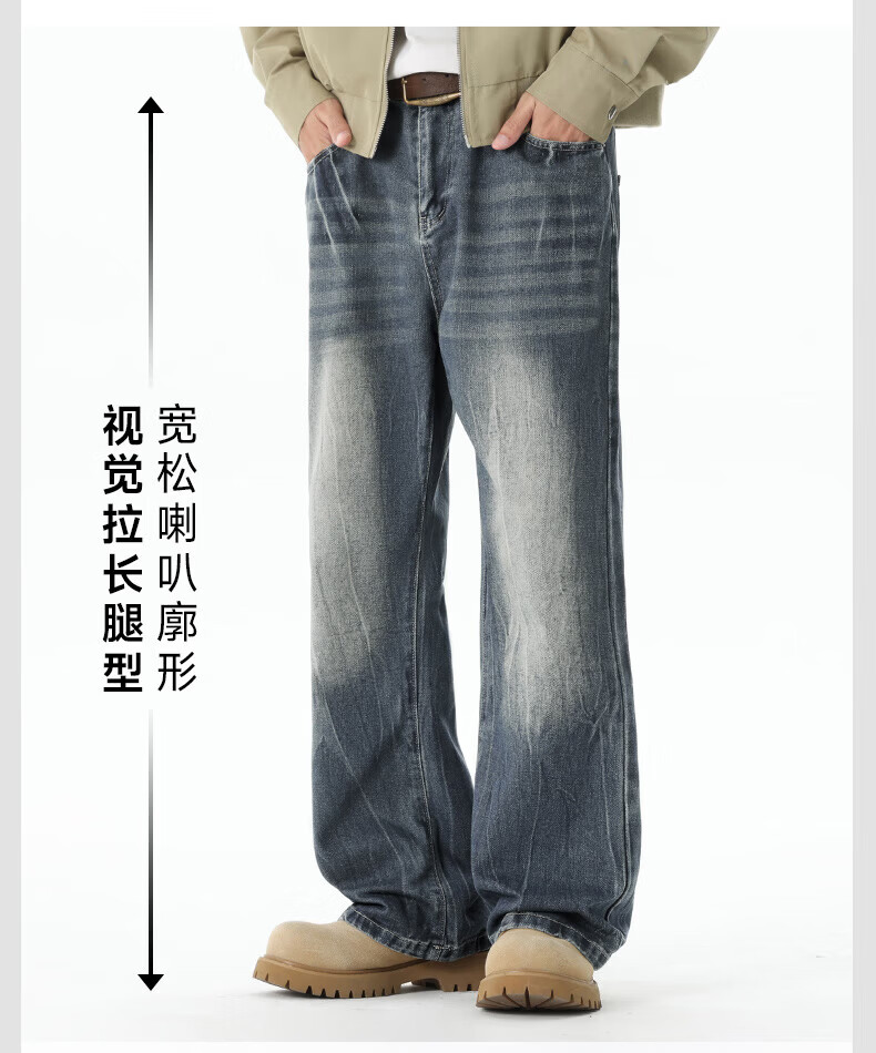 真维斯(Jeanswest)男士牛仔裤2026新款美式潮流vibe裤子男垂感微喇休闲长裤 黑灰2044 M 【推荐体重100-120斤】