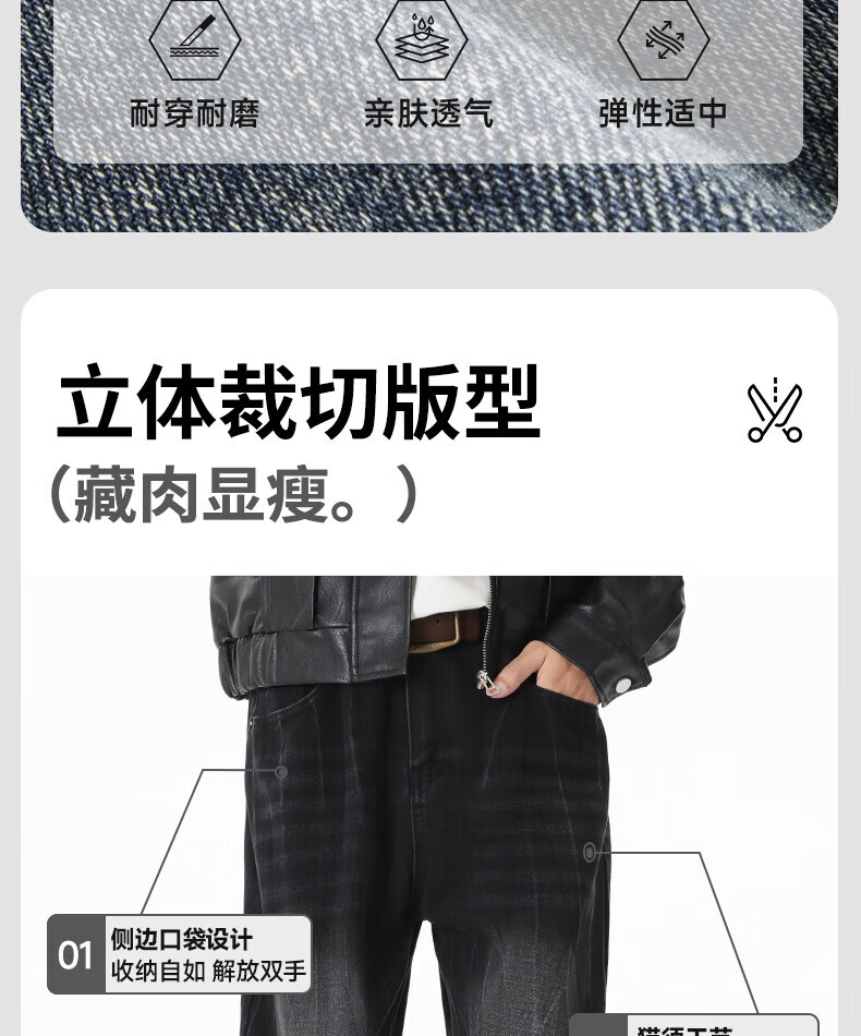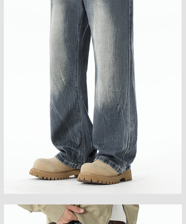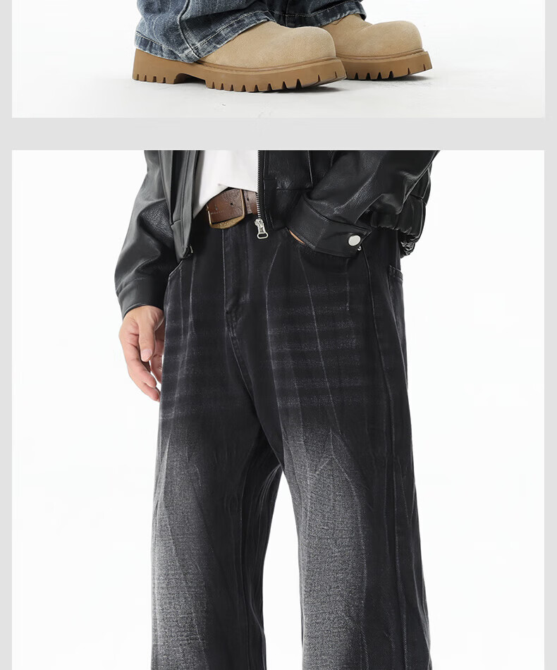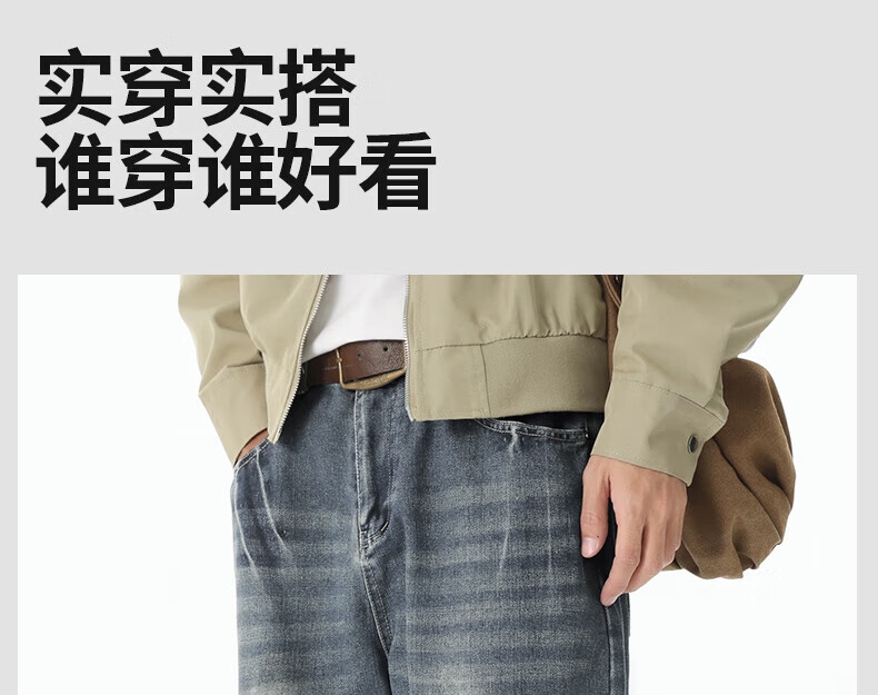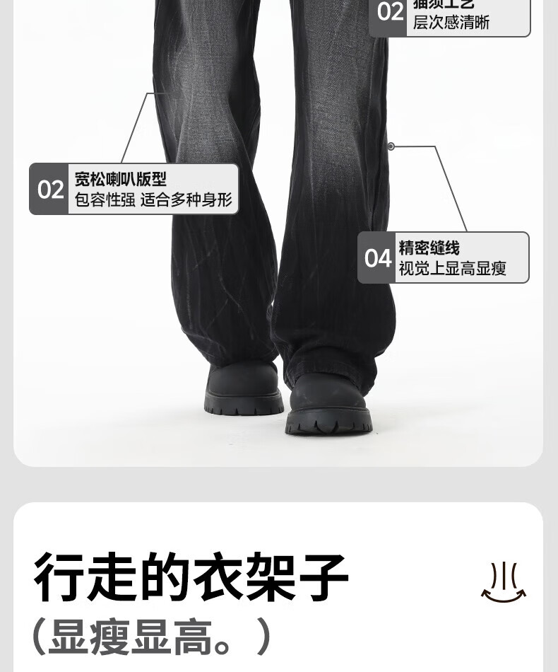 真维斯(Jeanswest)男士牛仔裤2026新款美式潮流vibe裤子男垂感微喇休闲长裤 黑灰2044 M 【推荐体重100-120斤】