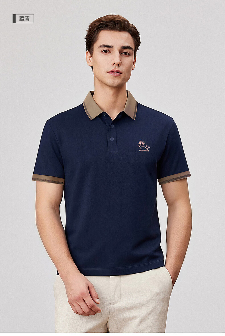 杉杉【马年贺岁刺绣马】26夏季凉感吸湿排汗刺绣男士短袖POLO衫 卡其 M