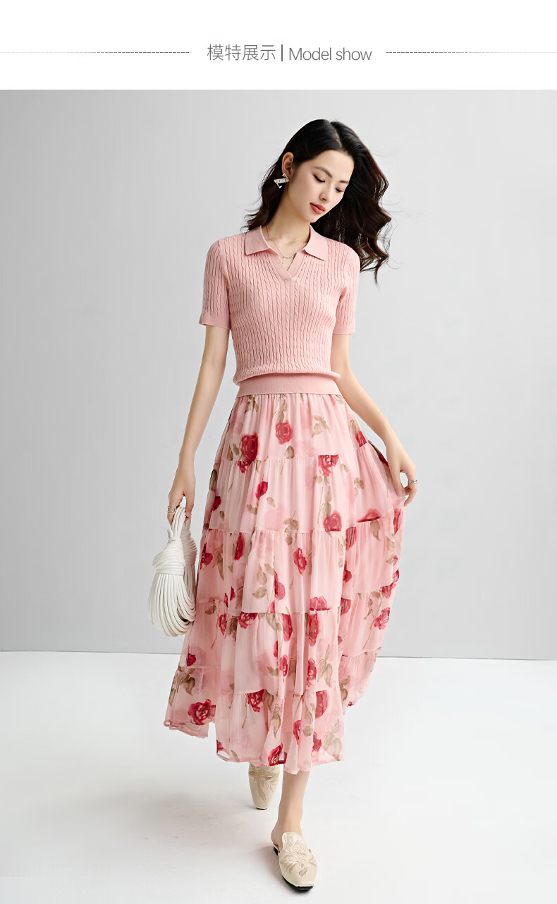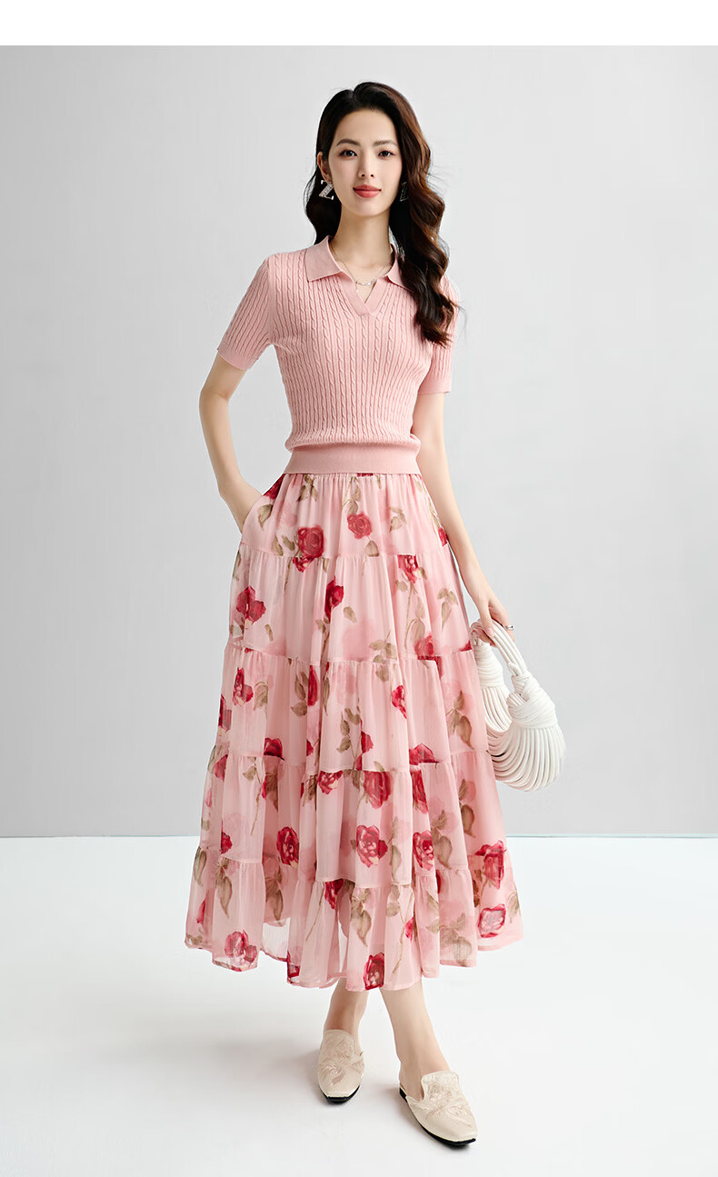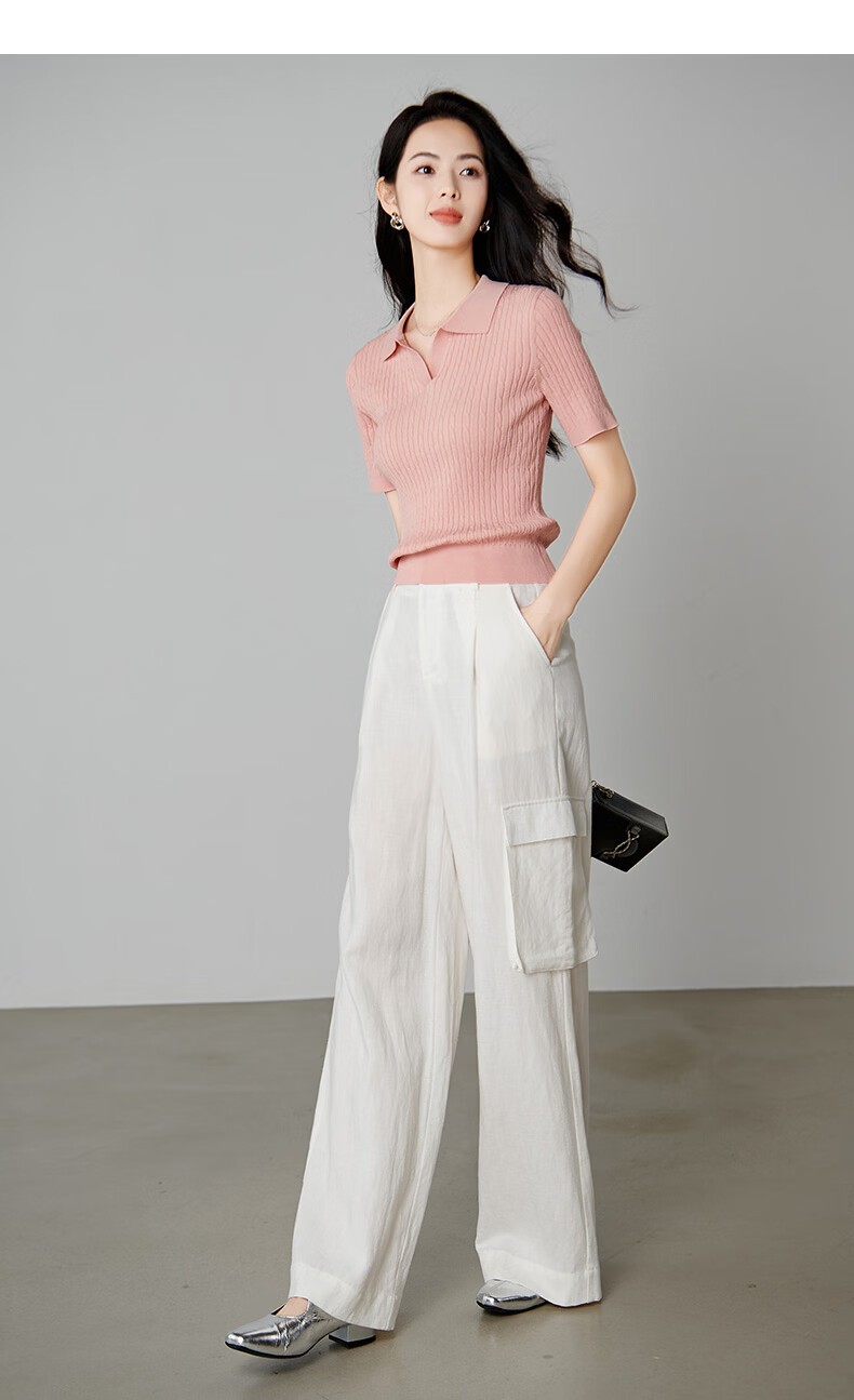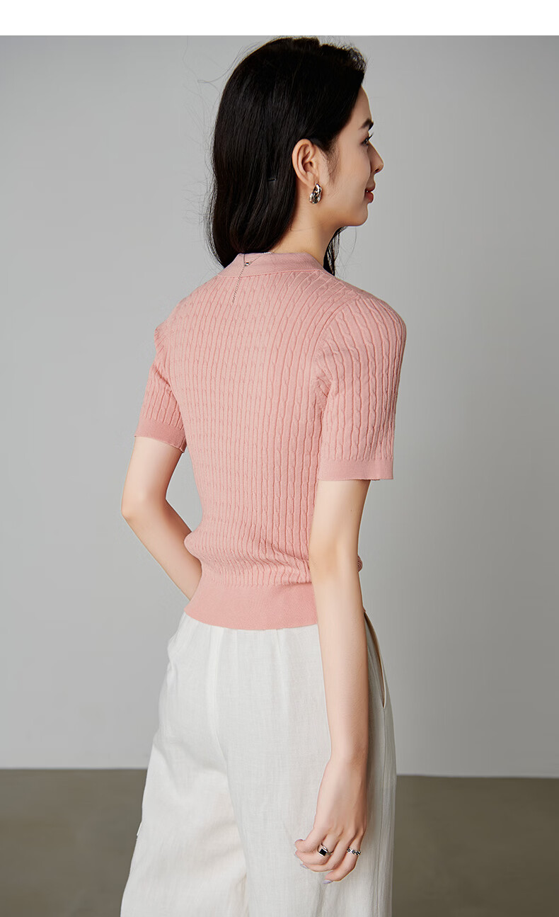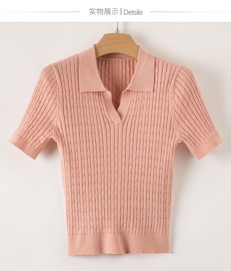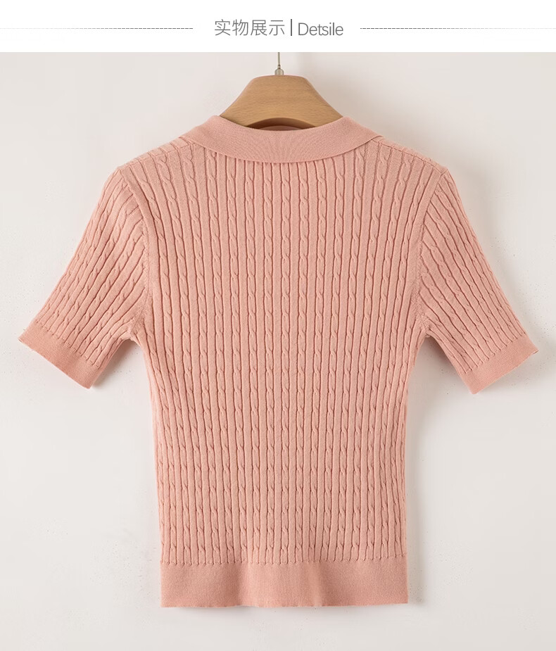 晚白【新品】2026年春款时尚温柔翻领POLO衫弹力修身短袖针织衫女 粉色 S