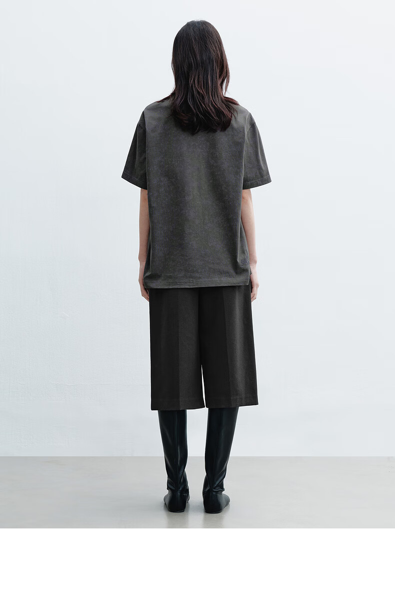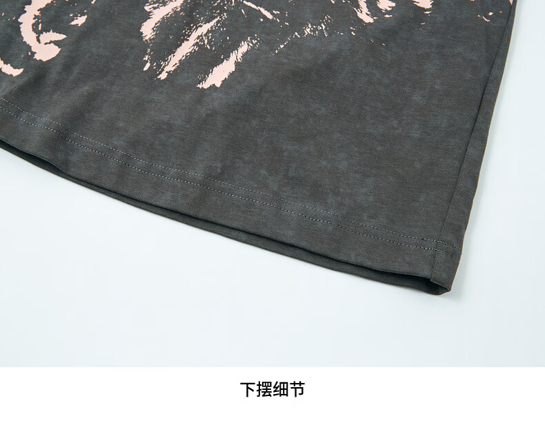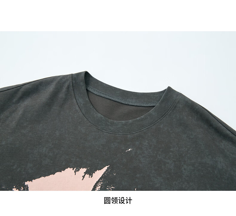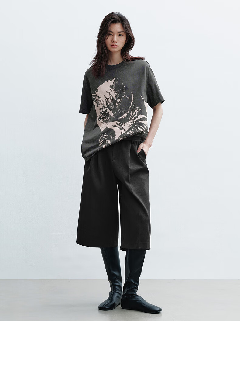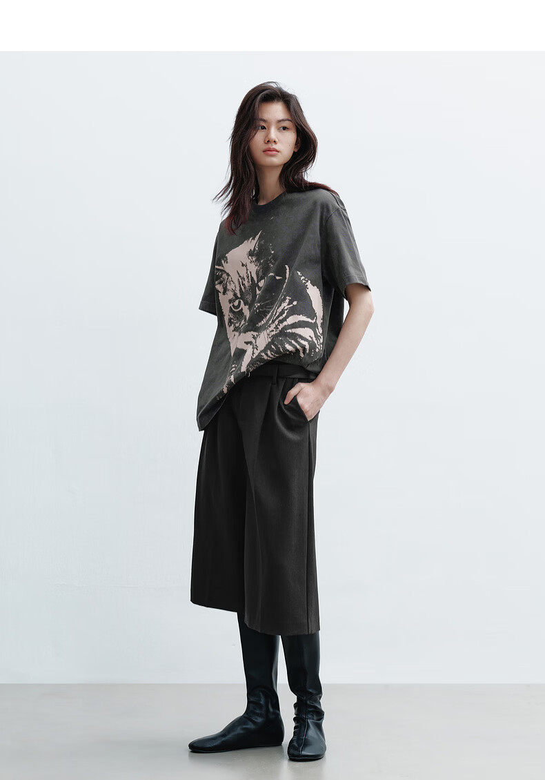H's烟灰色短袖T恤女26年春季新款高级设计感100棉猫咪印花宽松上衣 烟灰色 M