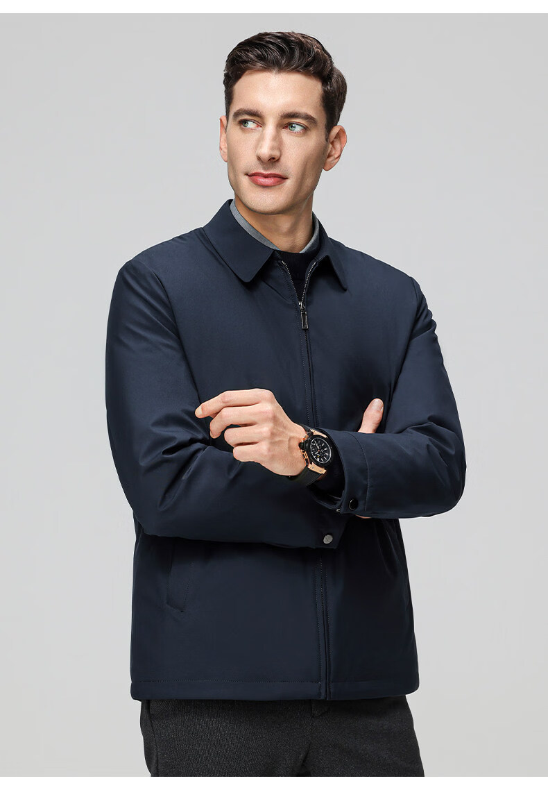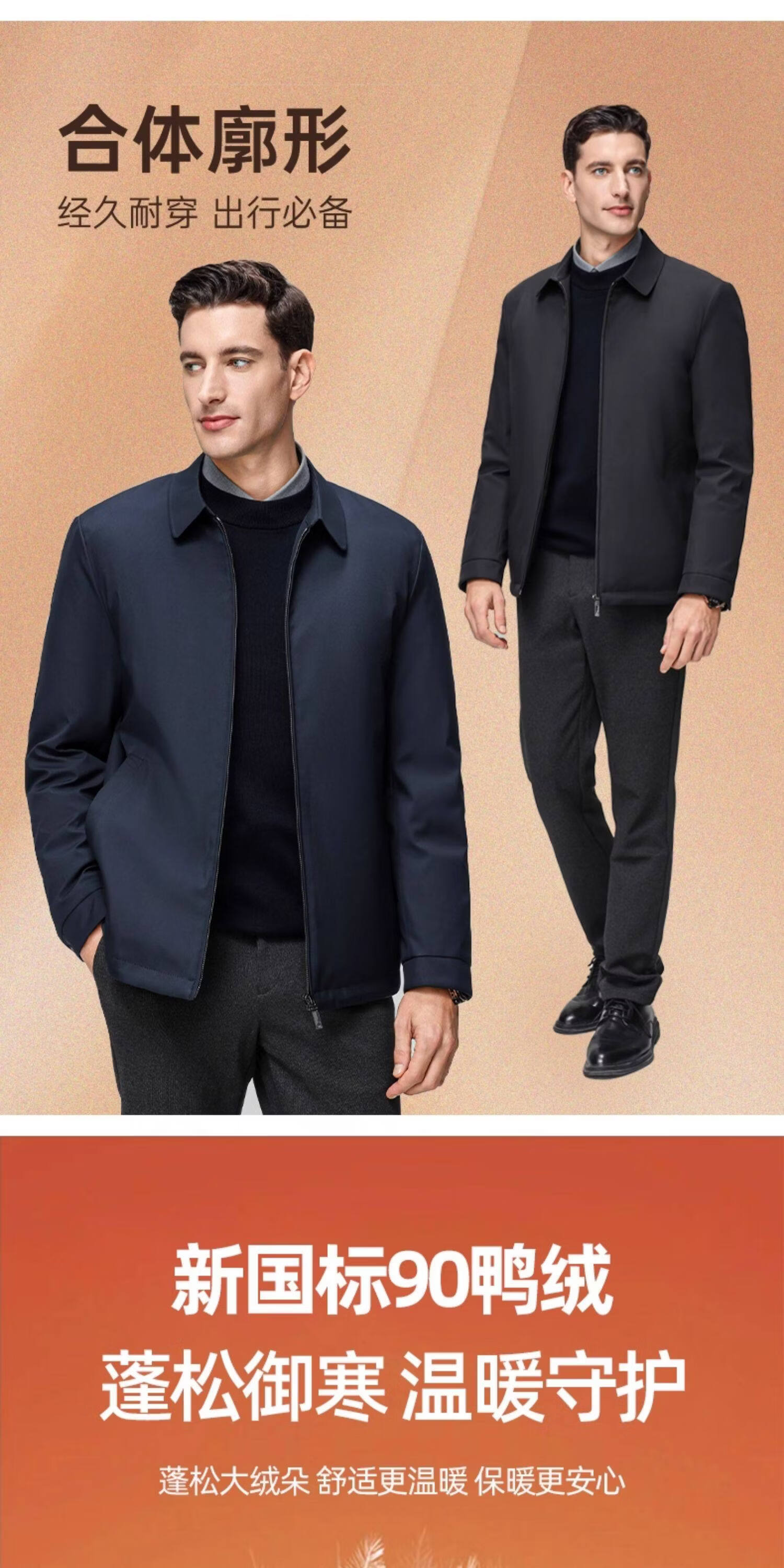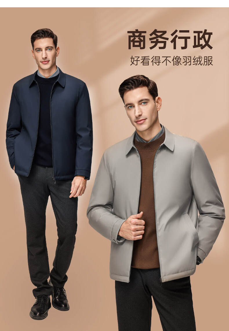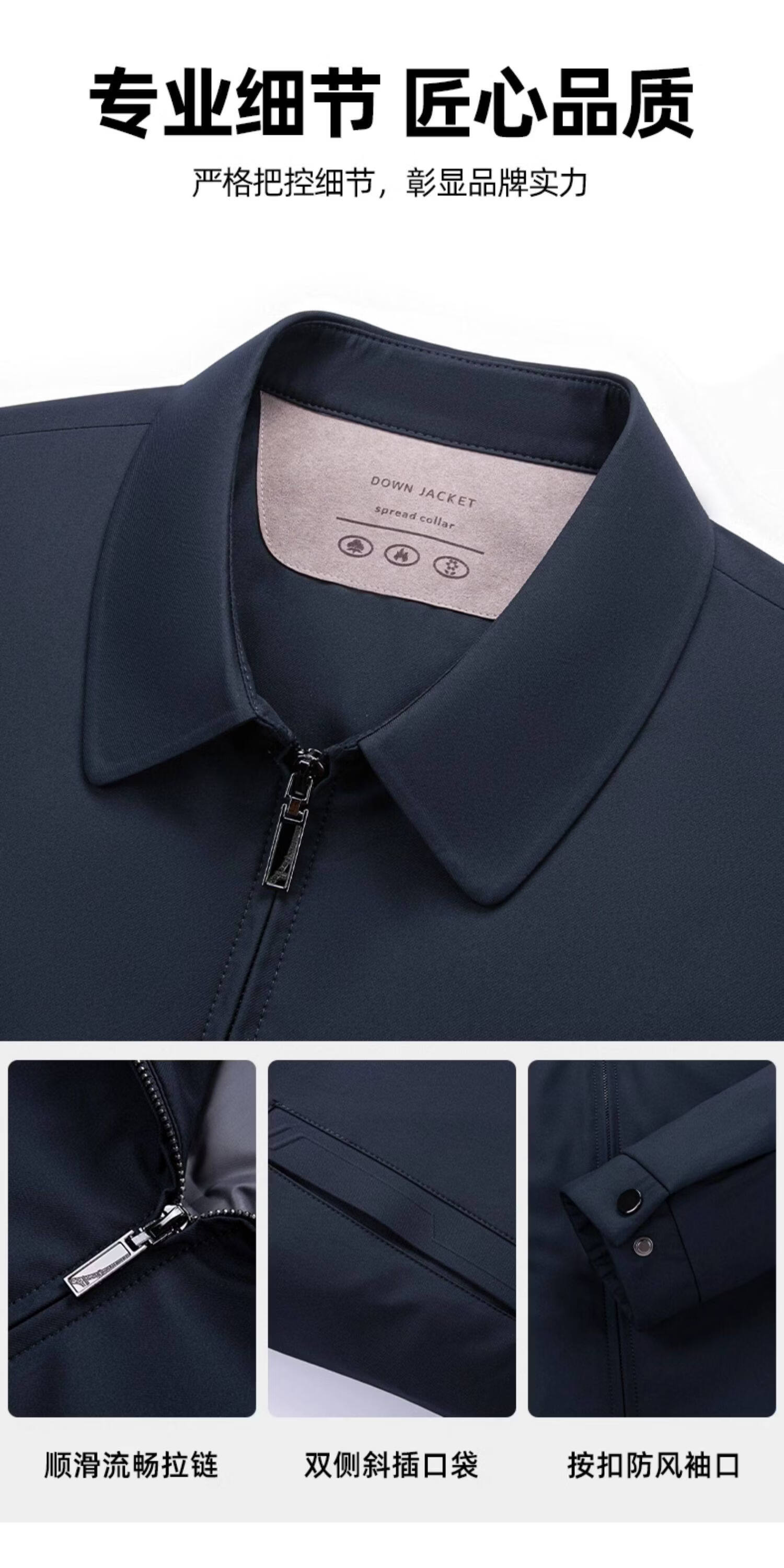 罗蒙【送父亲】行政翻领羽绒服男士冬新款商务干部装保暖外套爸爸装 藏青色 2XL (185) 【建议150-165斤】