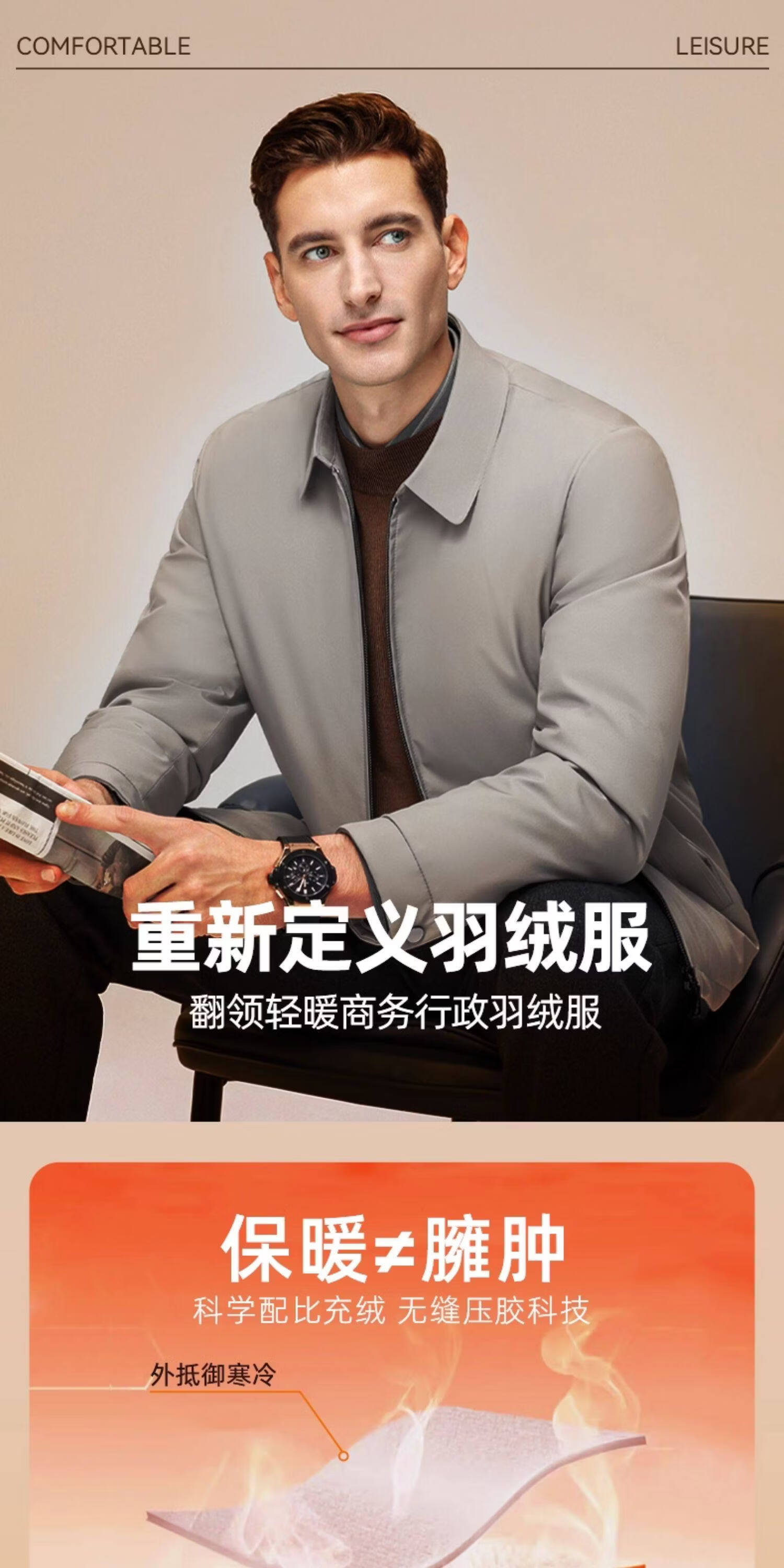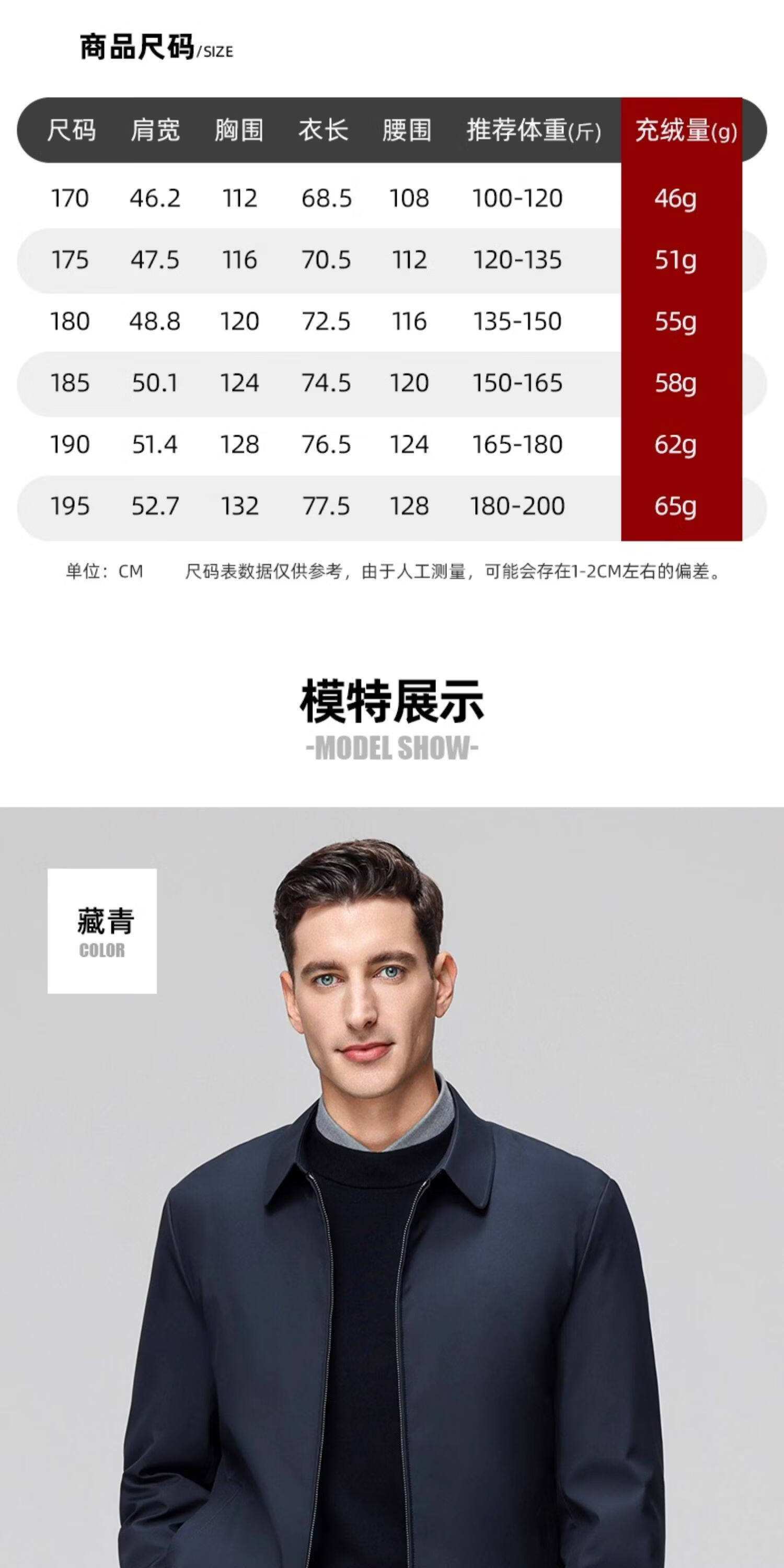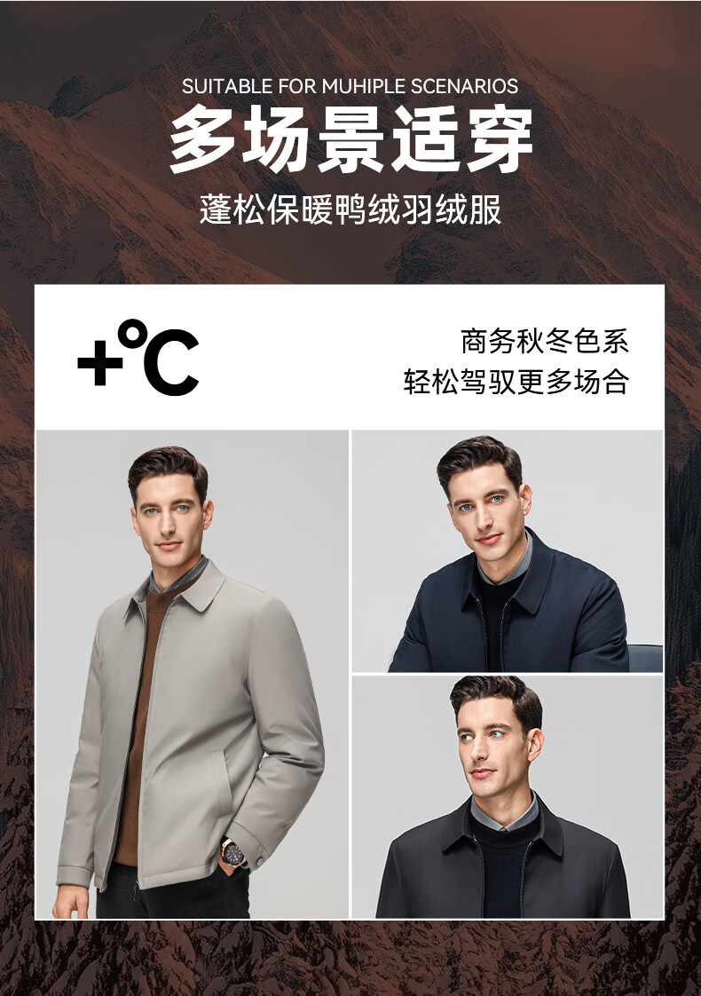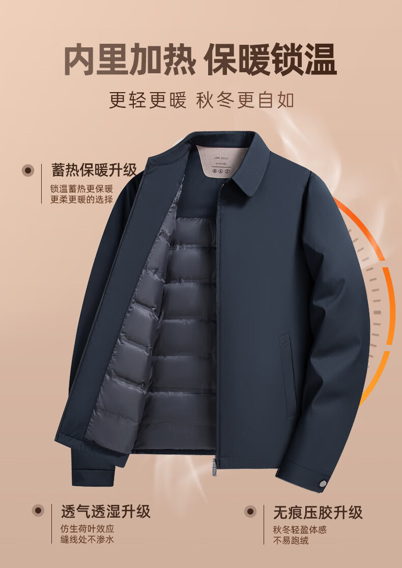 罗蒙【送父亲】行政翻领羽绒服男士冬新款商务干部装保暖外套爸爸装 藏青色 2XL (185) 【建议150-165斤】