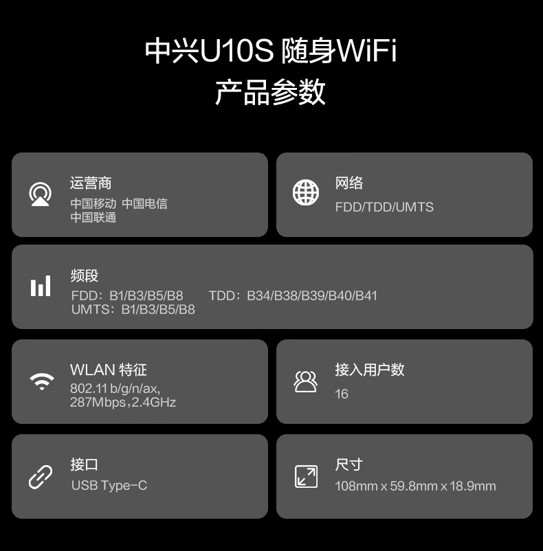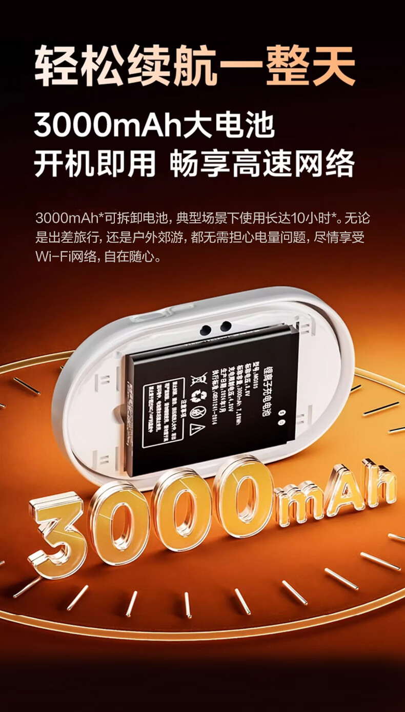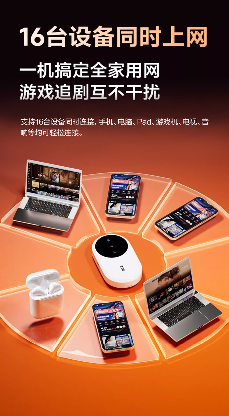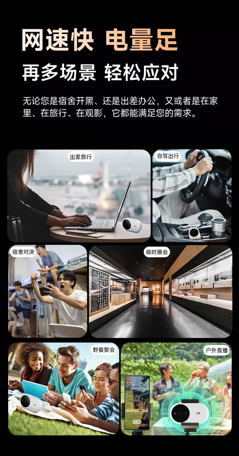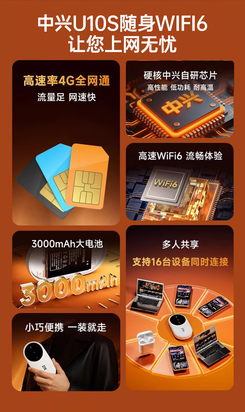 中兴随身wifi6免插卡移动路由器U10S支持4g/5g设备全网通用2025款YM25移动联通电信无限制流量便携网卡 升级版【升级3000毫安 长续航】 300G