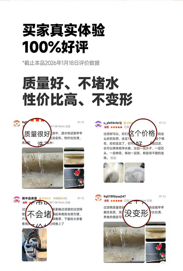 苏川鱼缸过滤棉专用 防尘净化空气棉 水族机箱工业羊绒蛋白棉过滤材料 600*30*3cm【旗舰款加厚加长过滤棉白色】