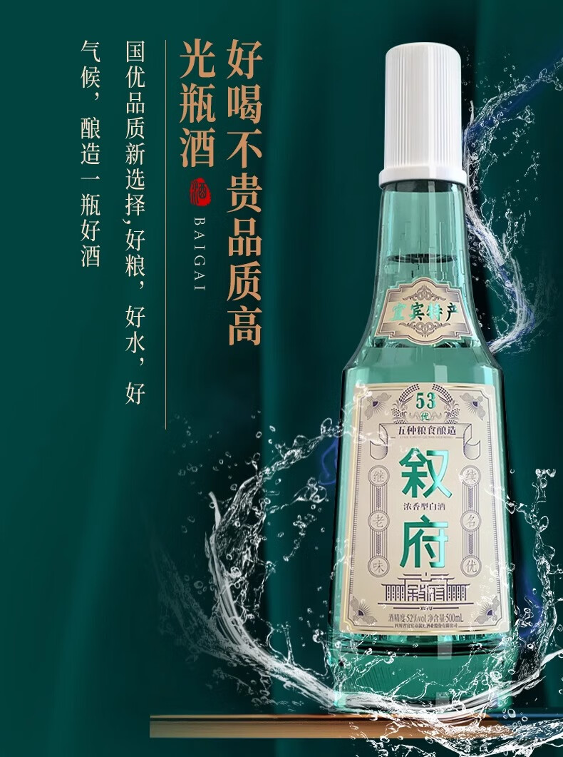 叙府酒 经典白盖 五粮浓香型白酒 商务宴请接待酒光瓶酒 送礼酒长辈 52度 500mL 2瓶 礼袋装