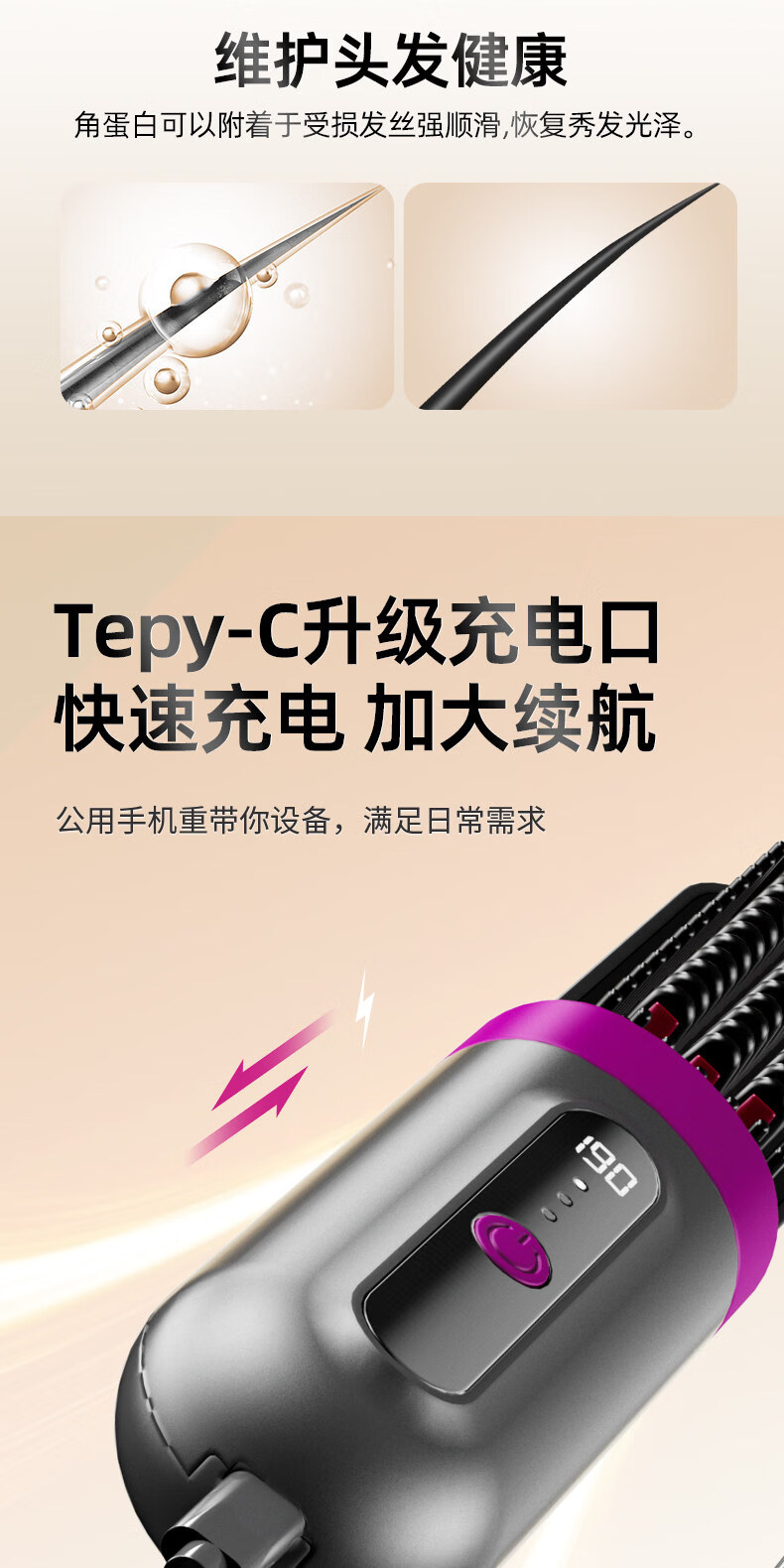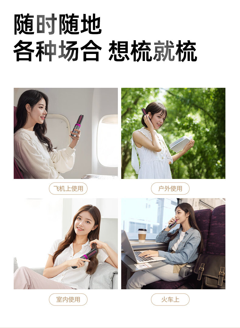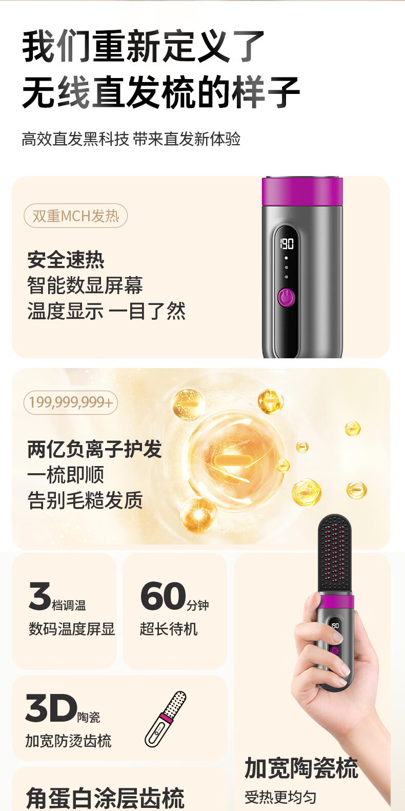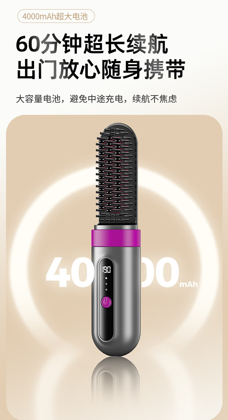 夏新(Amoi)直发梳负离子无线直发器不伤发夹板卷发棒便携电梳子蓬松卷发神器宿舍可用 旗舰款 【三排梳齿 2亿负离子】