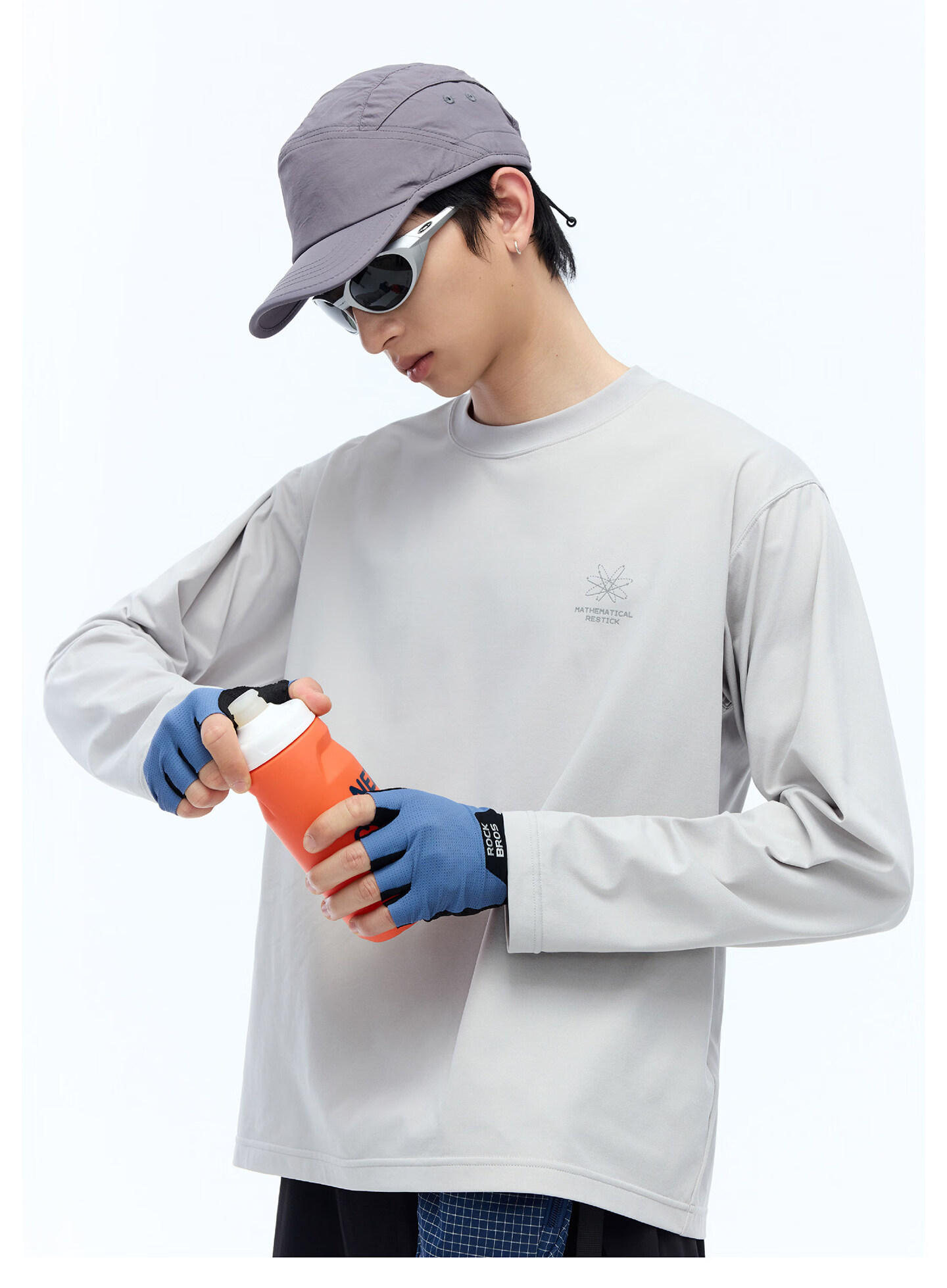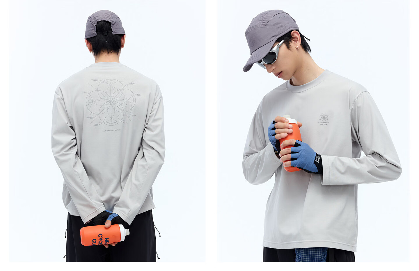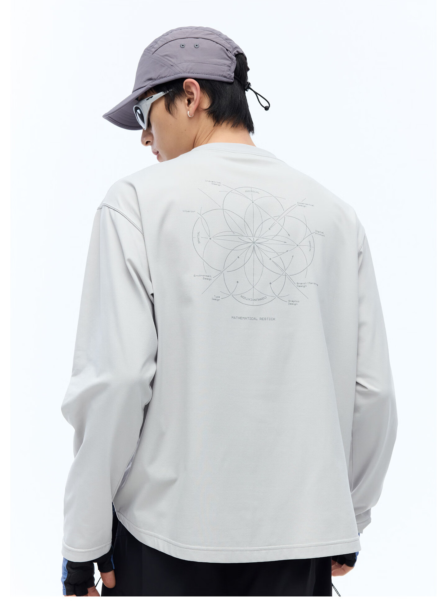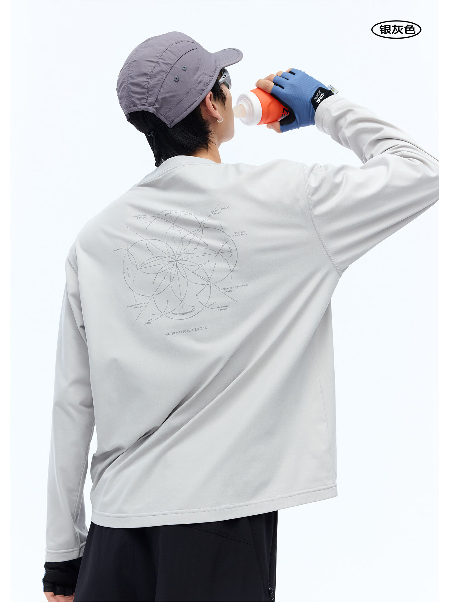 RESTICK 几何解构户外吸湿速干衣7A抗菌运动印花长袖T恤男女春季 银灰色 L