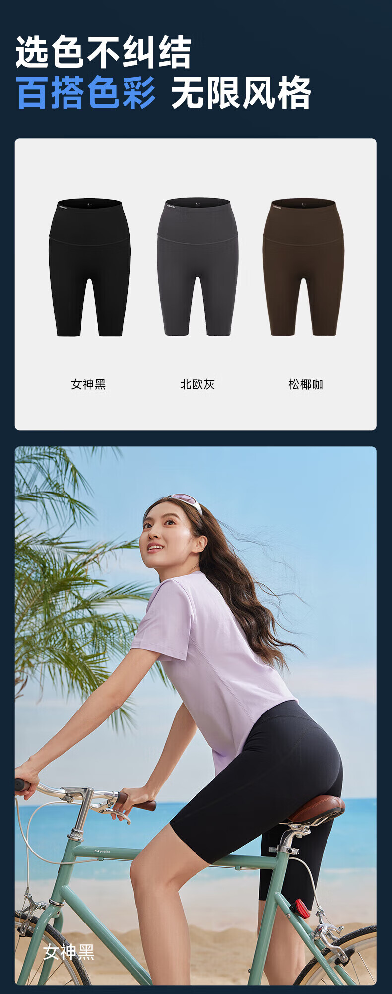 MissWiss夏新款五分凉感防晒外穿鲨鱼裤收腹提臀显瘦女瑜伽打底裤 【五分款】女神黑 S