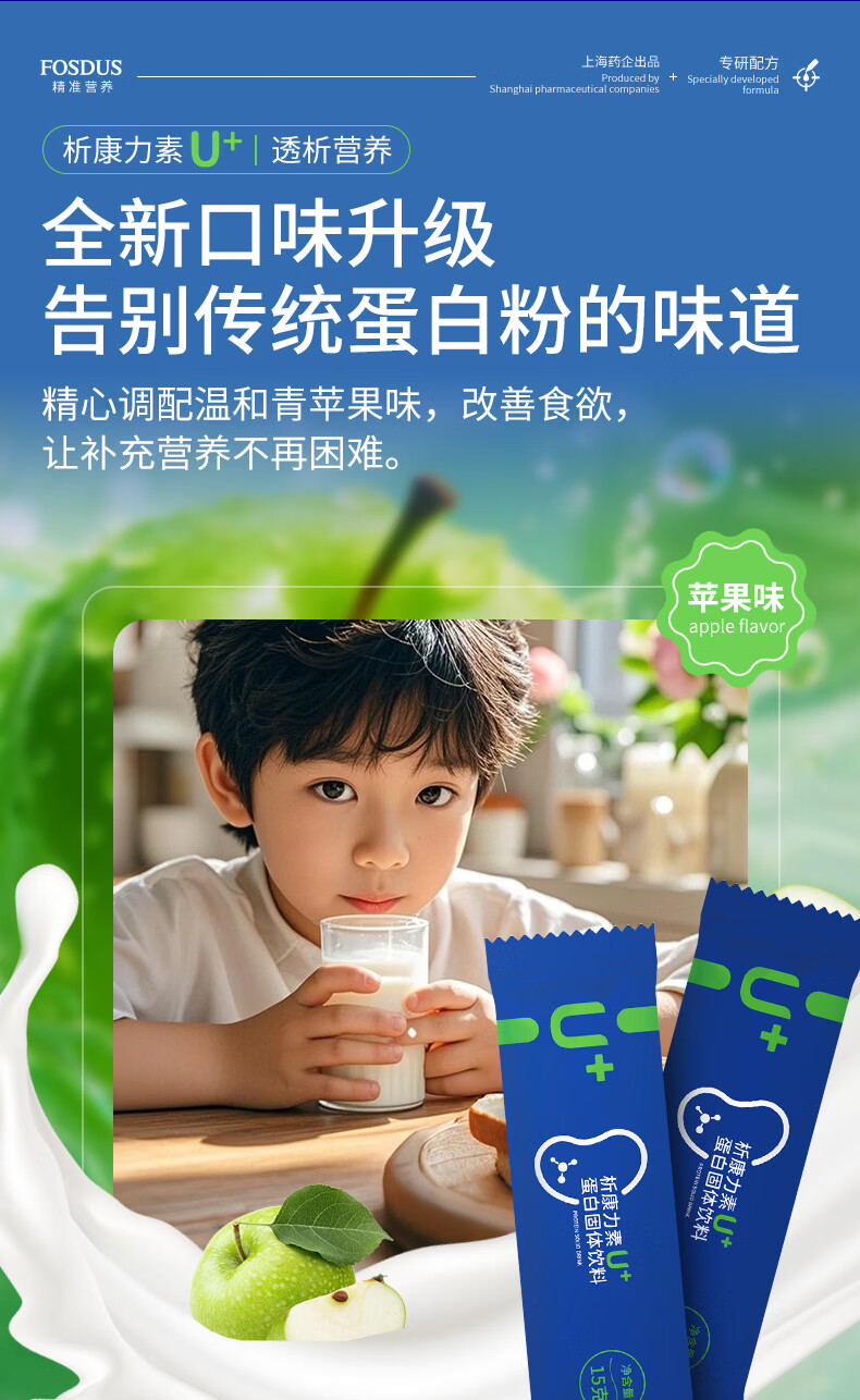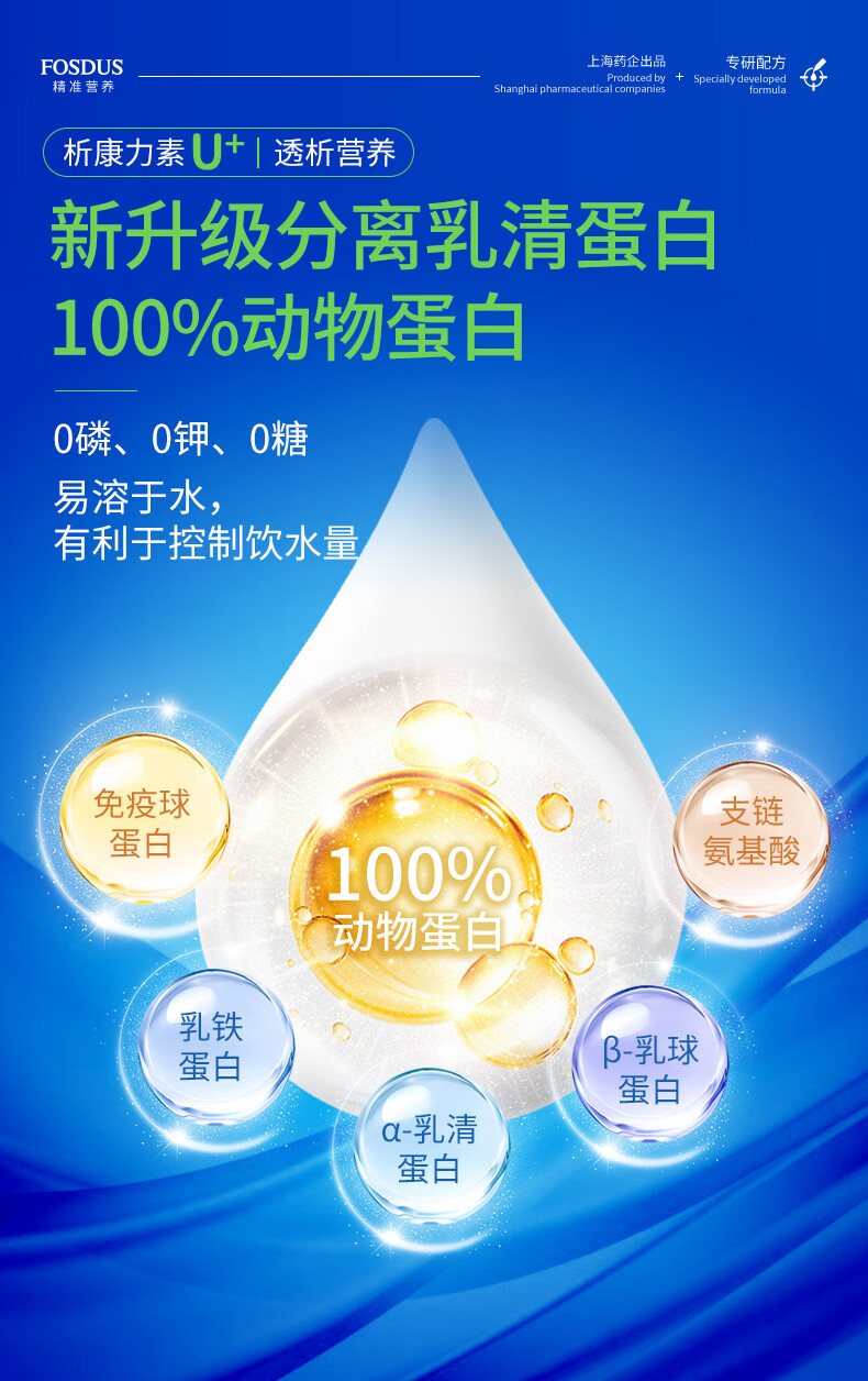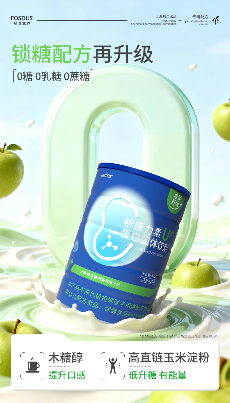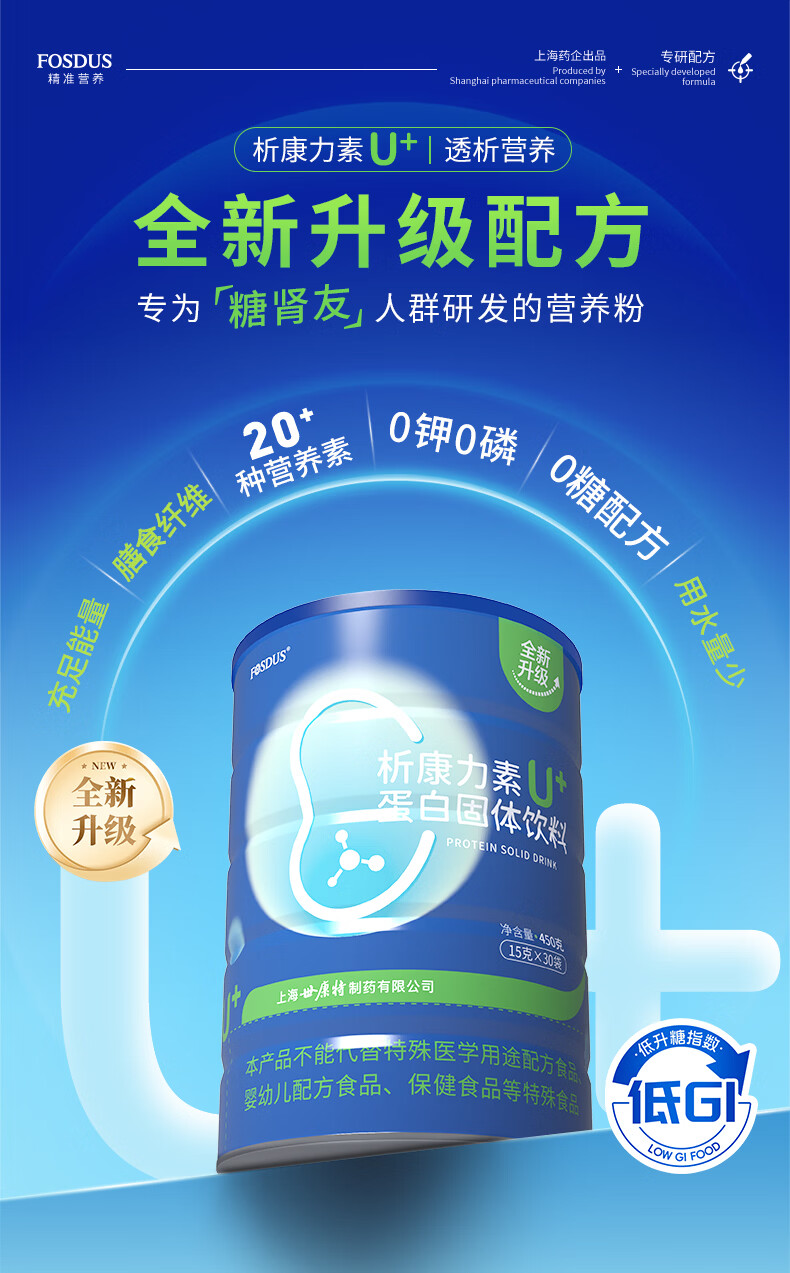 FOSDUS析康力素低GI透析分离乳清蛋白粉0磷0钾肾友术后奶粉营养礼品 450g*6罐 【活动直降 单罐只要148元】 青苹果味