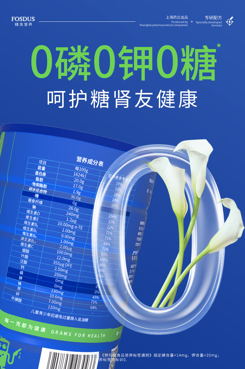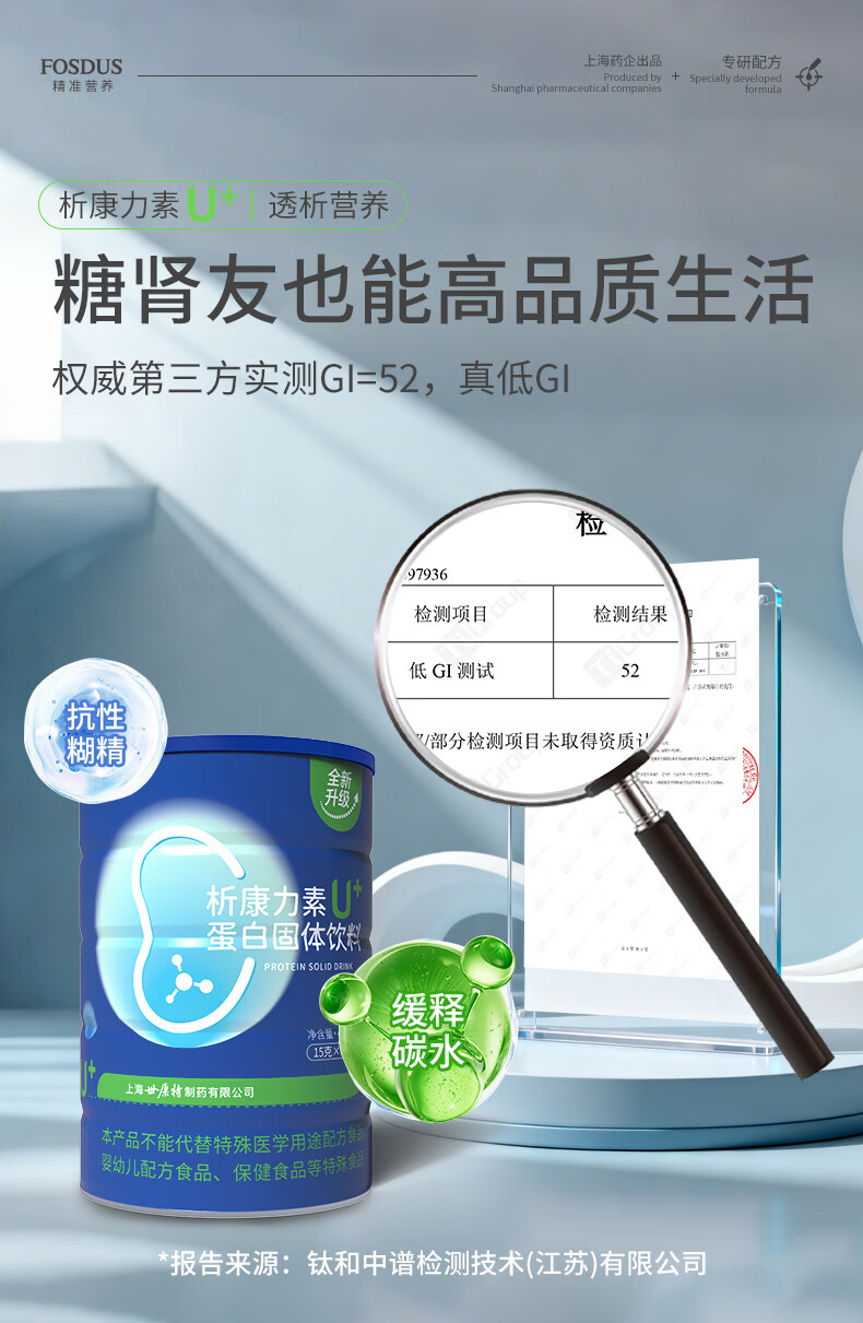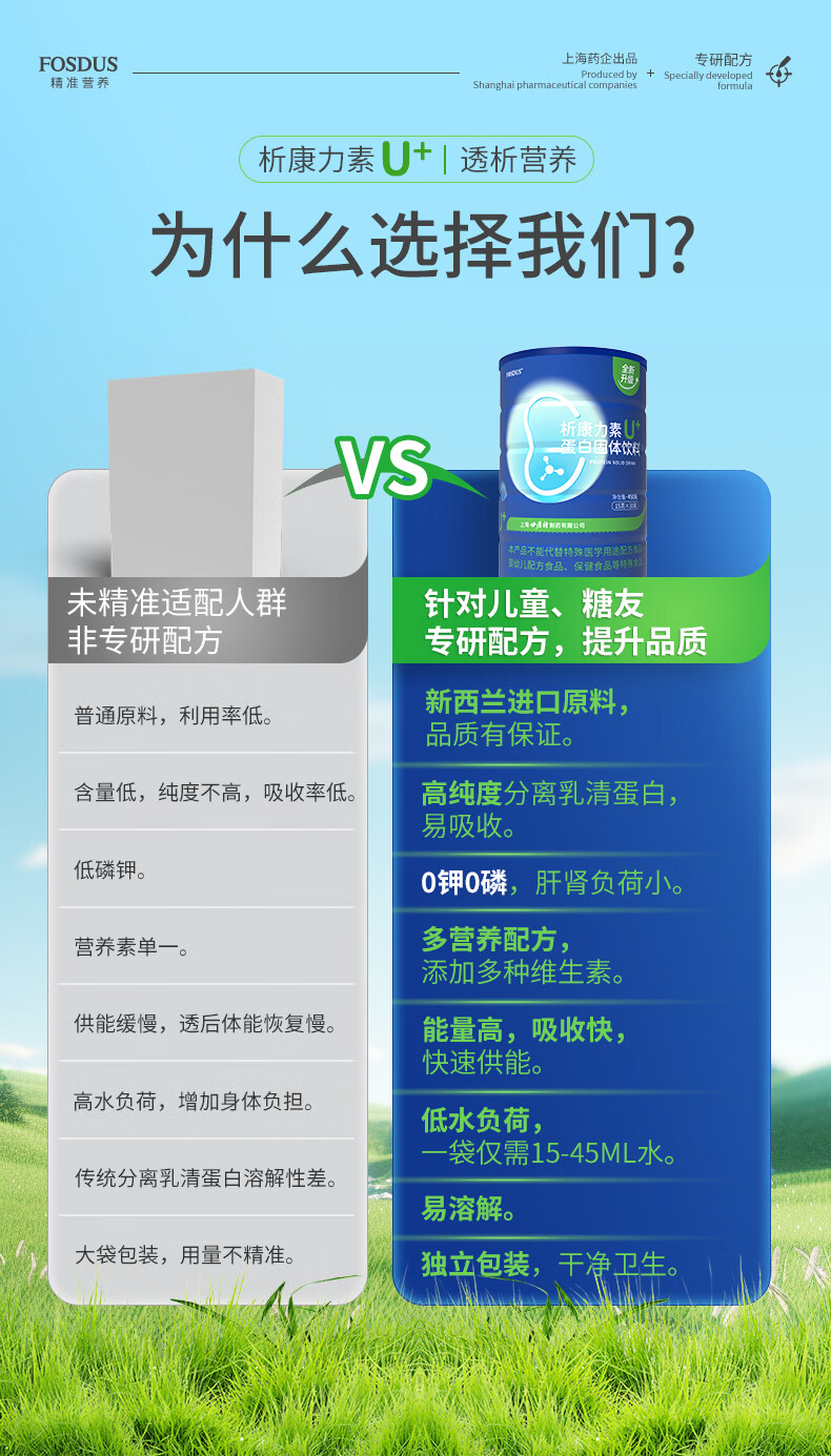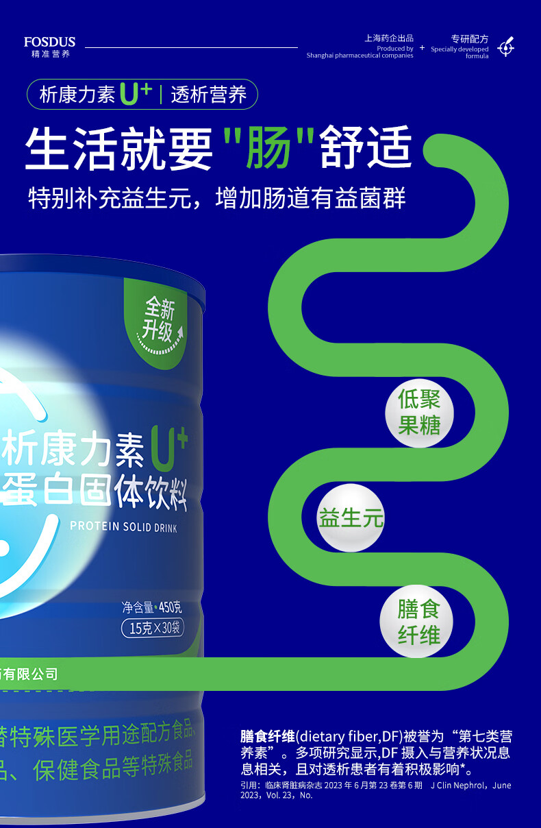 FOSDUS析康力素低GI透析分离乳清蛋白粉0磷0钾肾友术后奶粉营养礼品 450g*6罐 【活动直降 单罐只要148元】 青苹果味