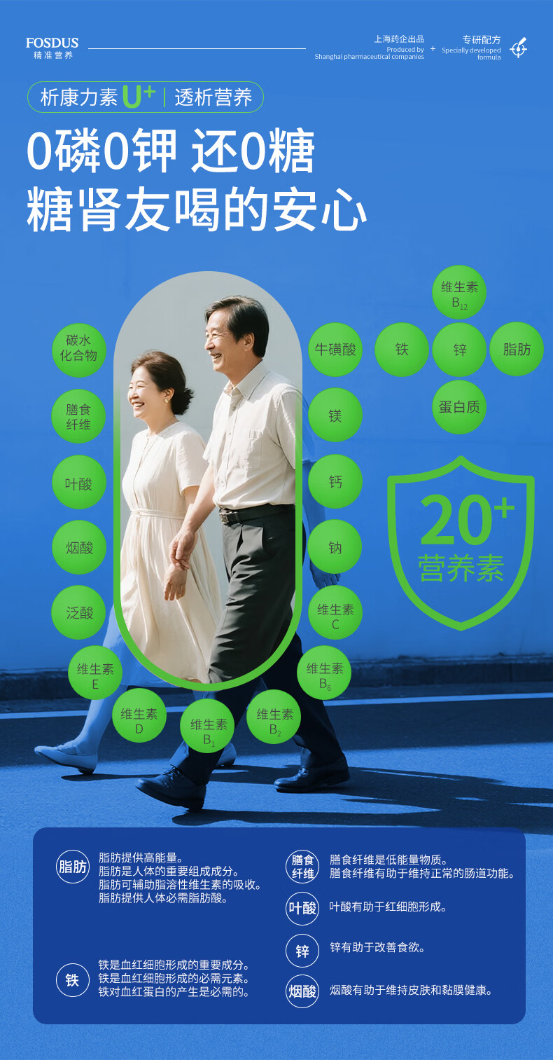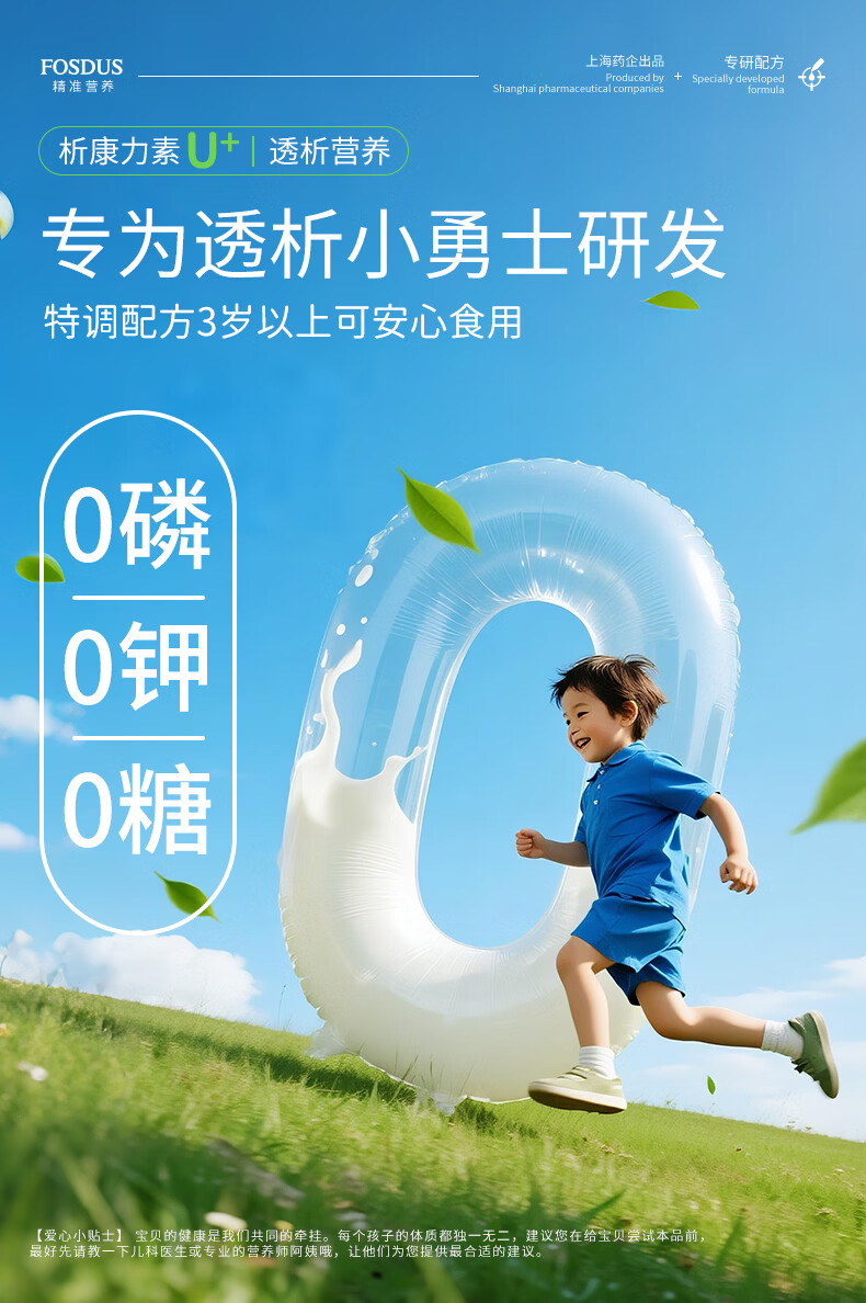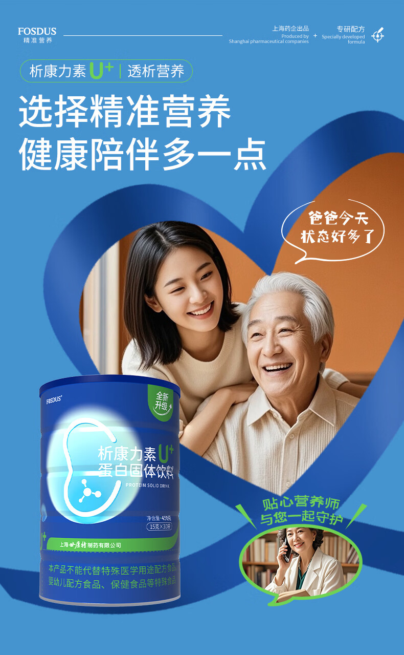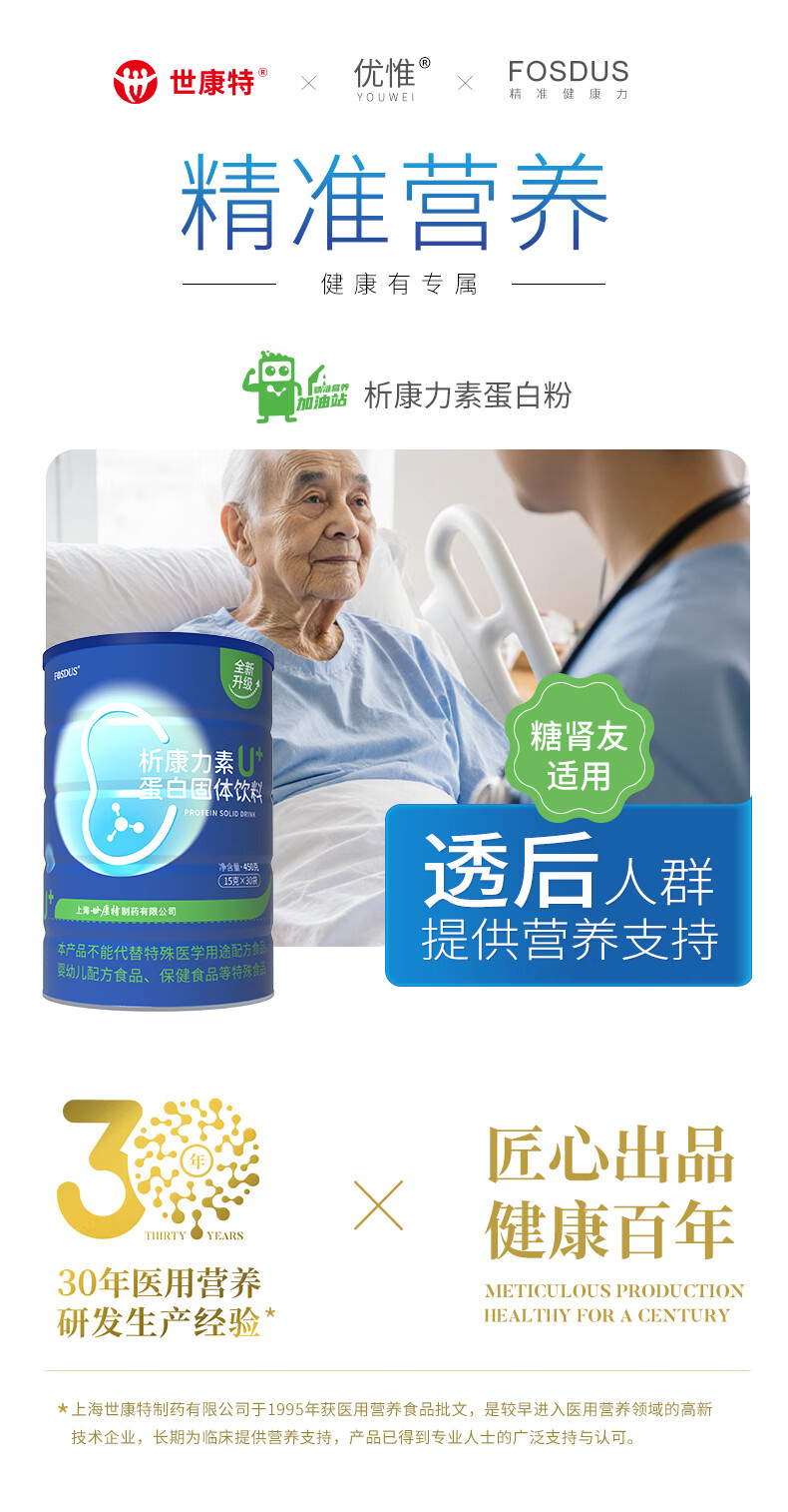 FOSDUS析康力素低GI透析分离乳清蛋白粉0磷0钾肾友术后奶粉营养礼品 450g*6罐 【活动直降 单罐只要148元】 青苹果味