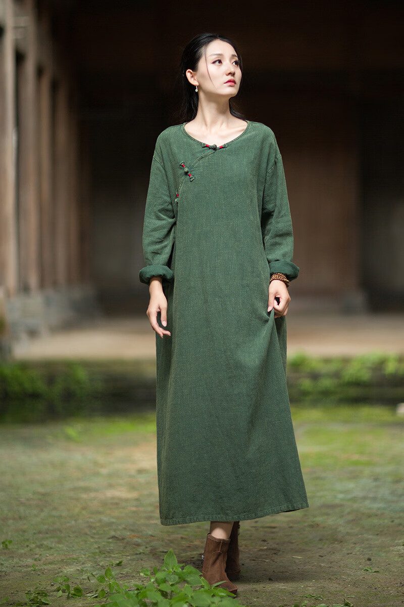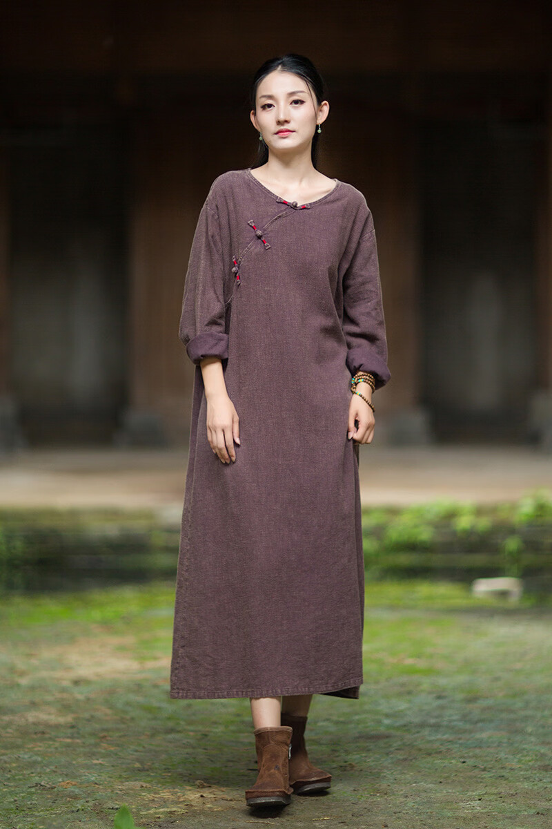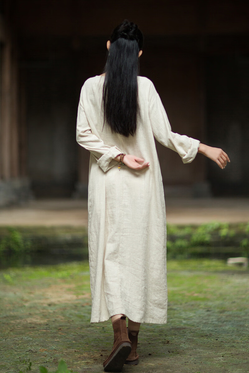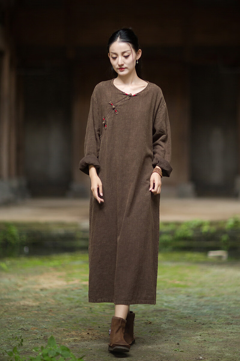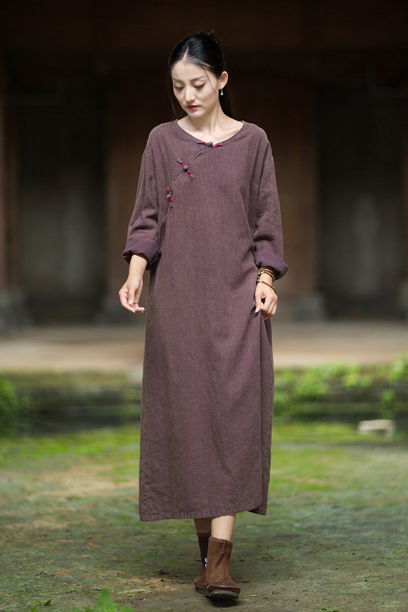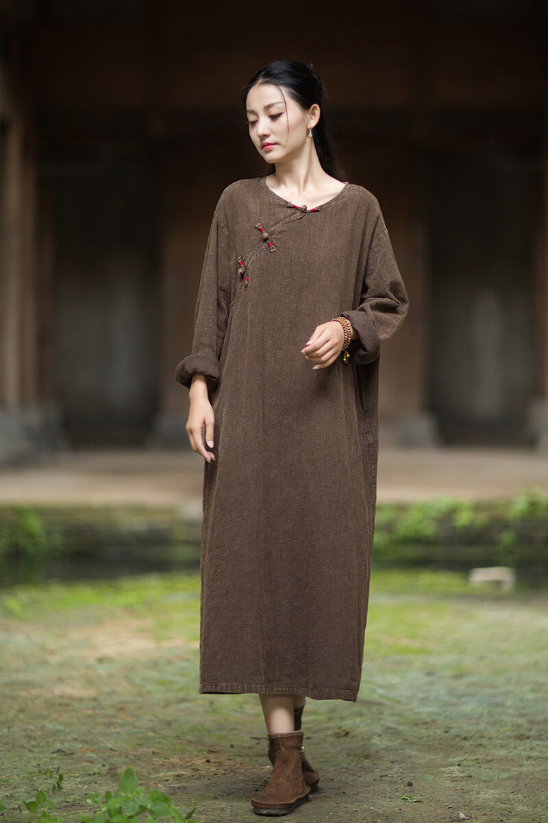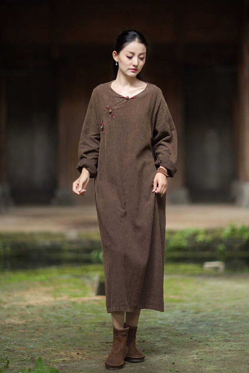 怡豆豆26春新中式苎麻禅意连衣裙斜襟盘扣 原麻色 均码