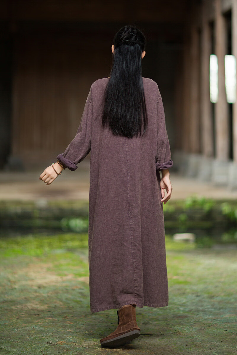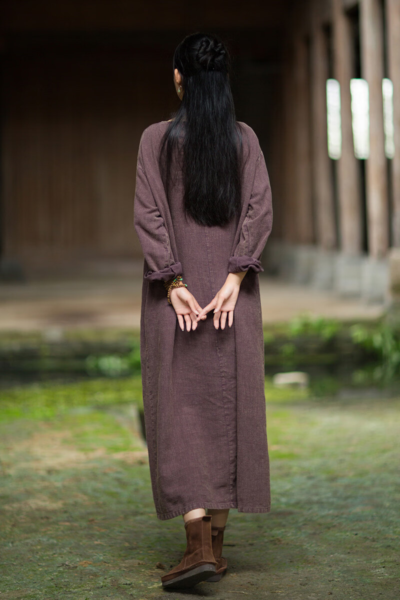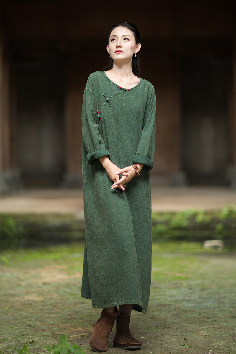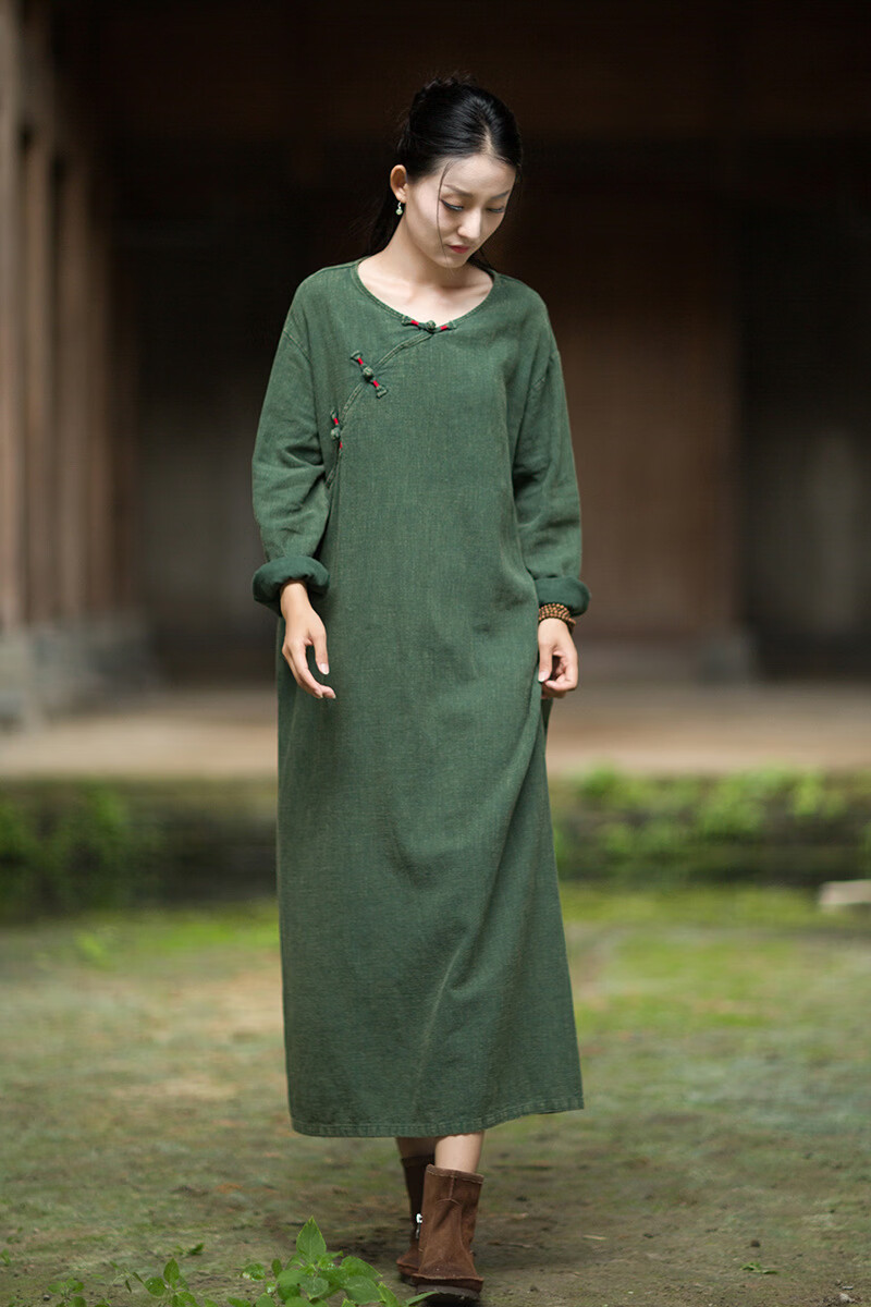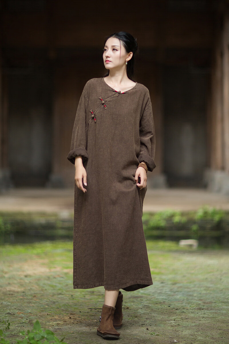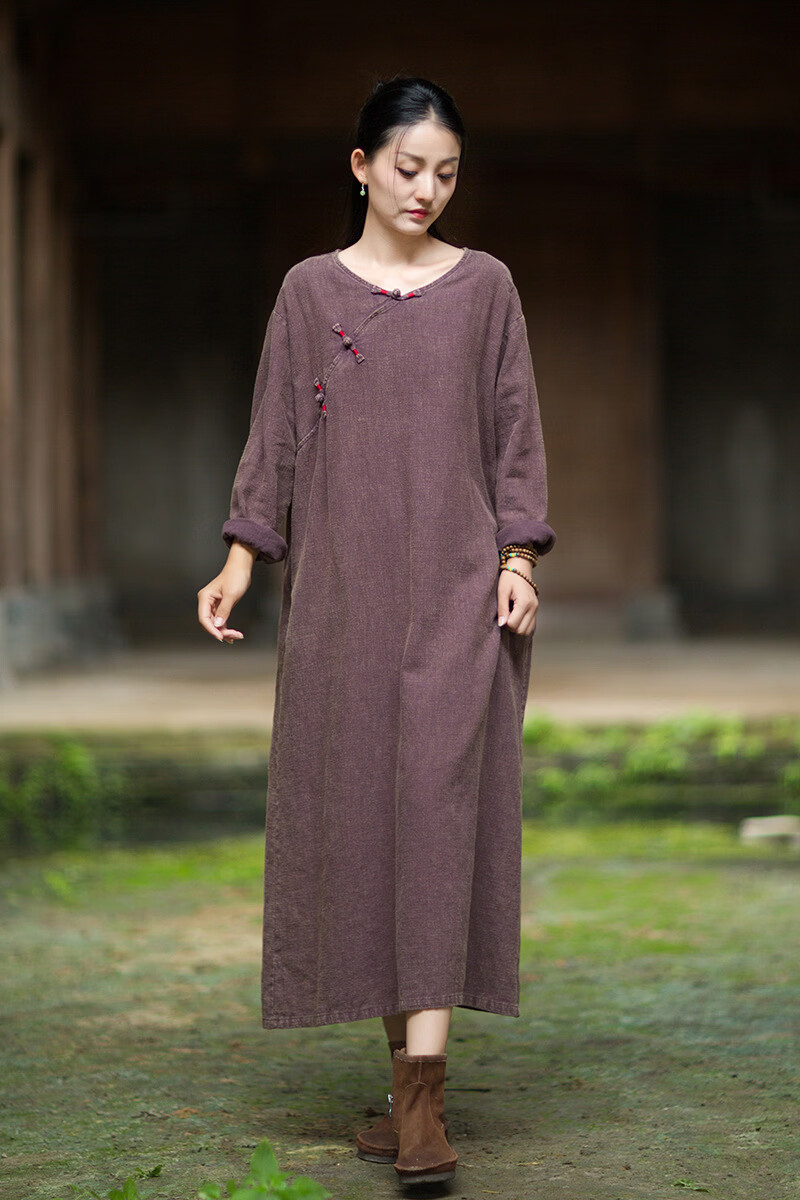 怡豆豆26春新中式苎麻禅意连衣裙斜襟盘扣 原麻色 均码