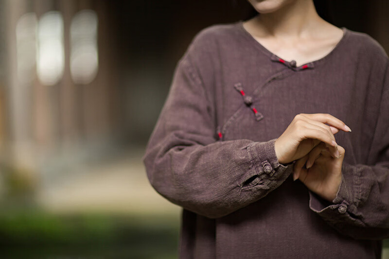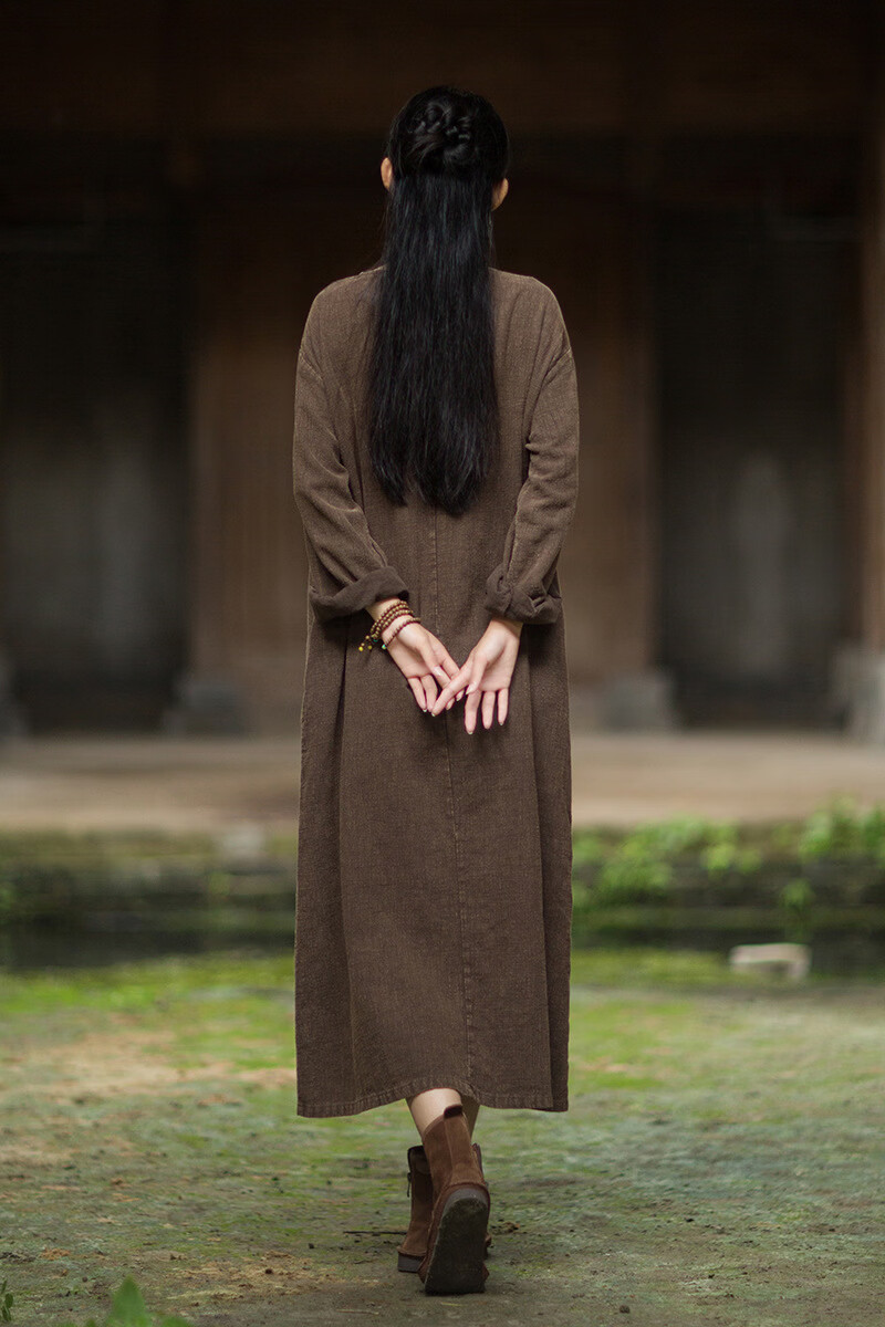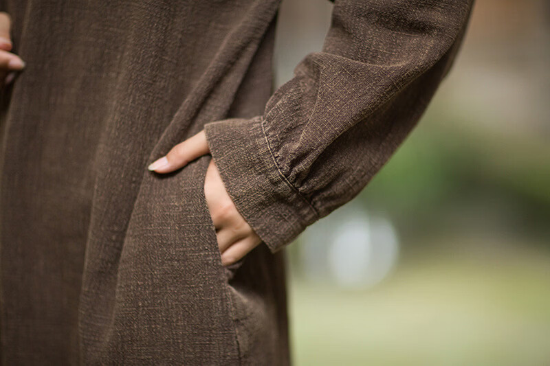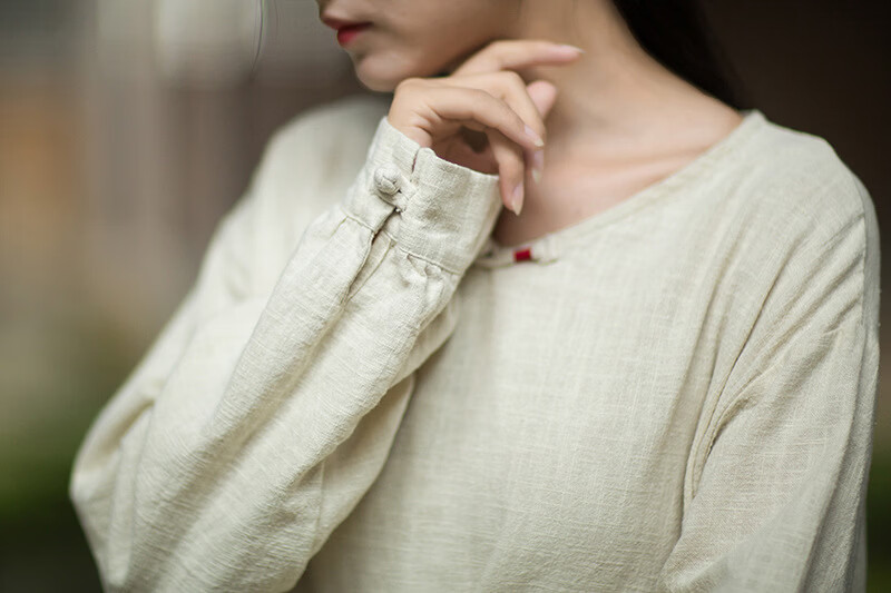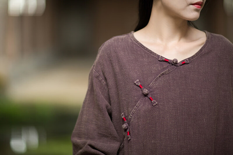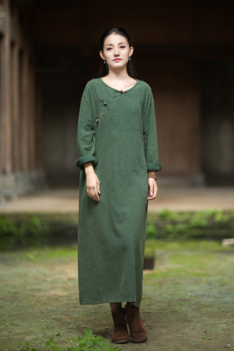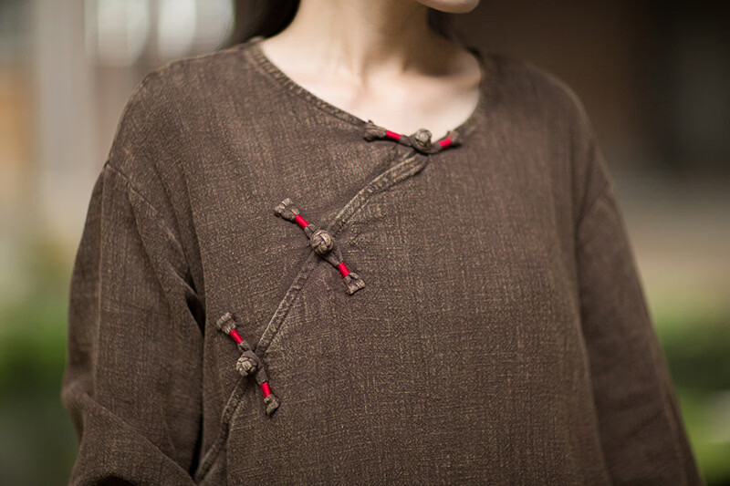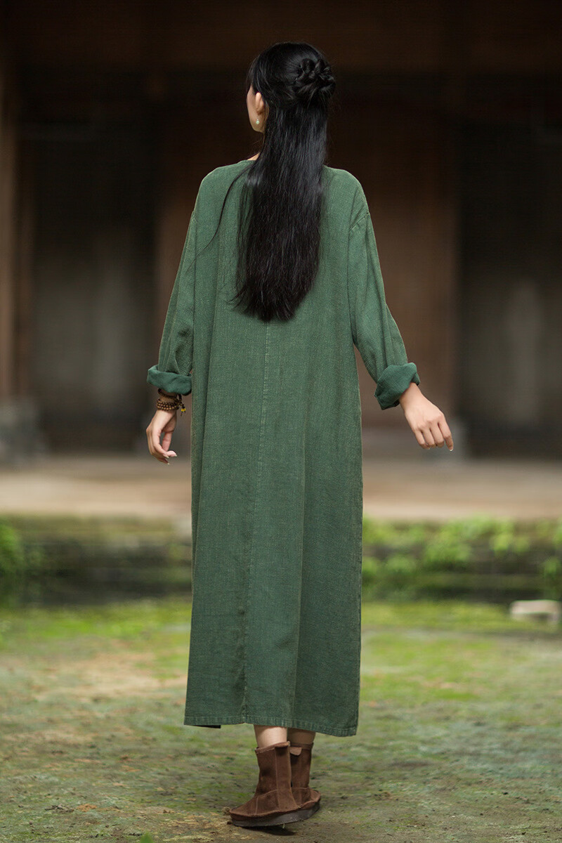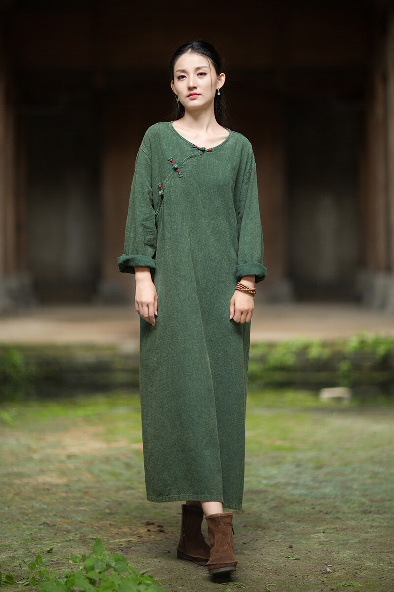 怡豆豆26春新中式苎麻禅意连衣裙斜襟盘扣 原麻色 均码