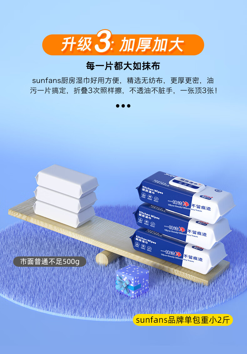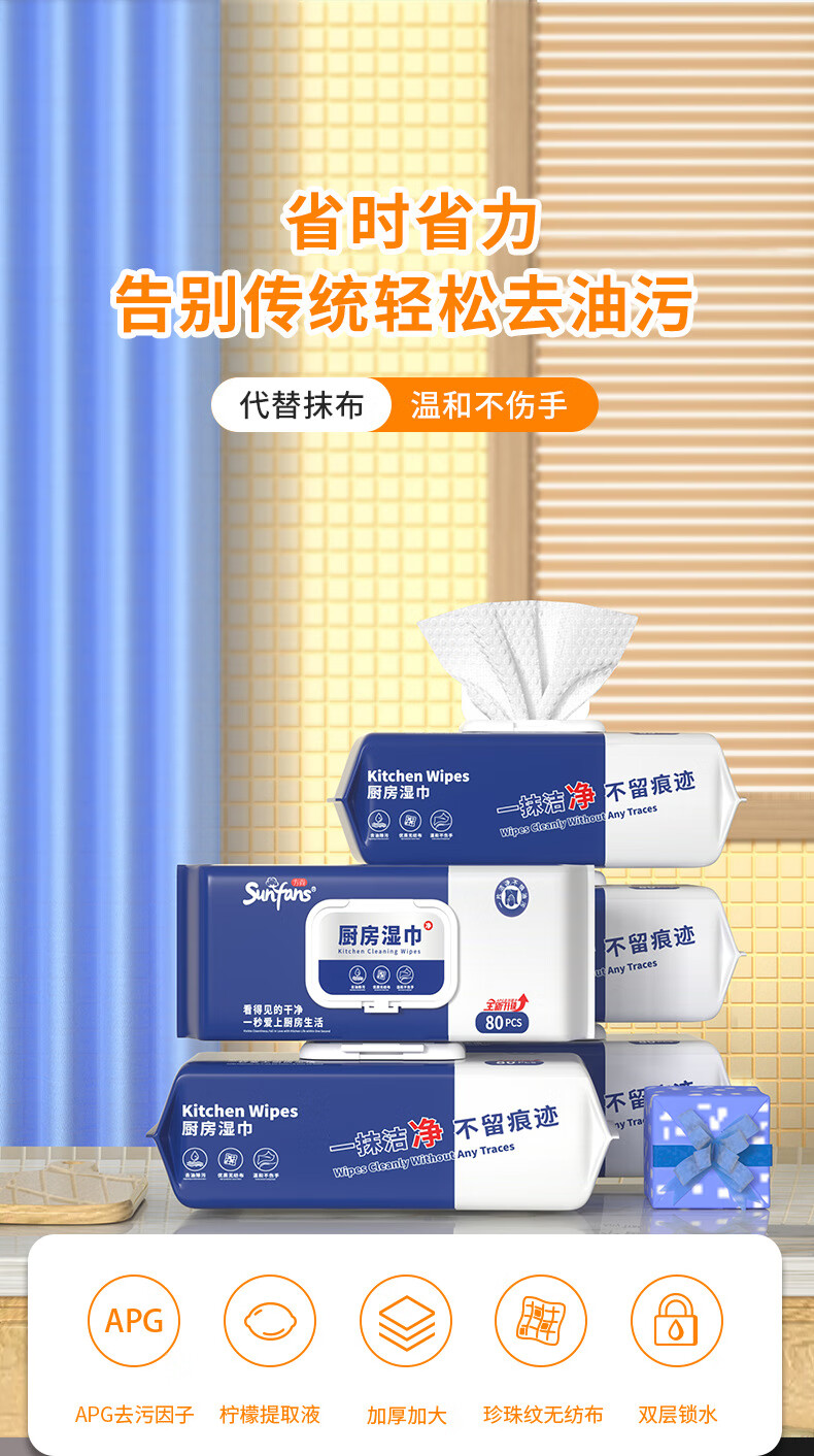 厨房湿巾去油污加大加厚专用湿纸巾厨房湿巾80抽大包装去污油渍 80片 -超大包厨房