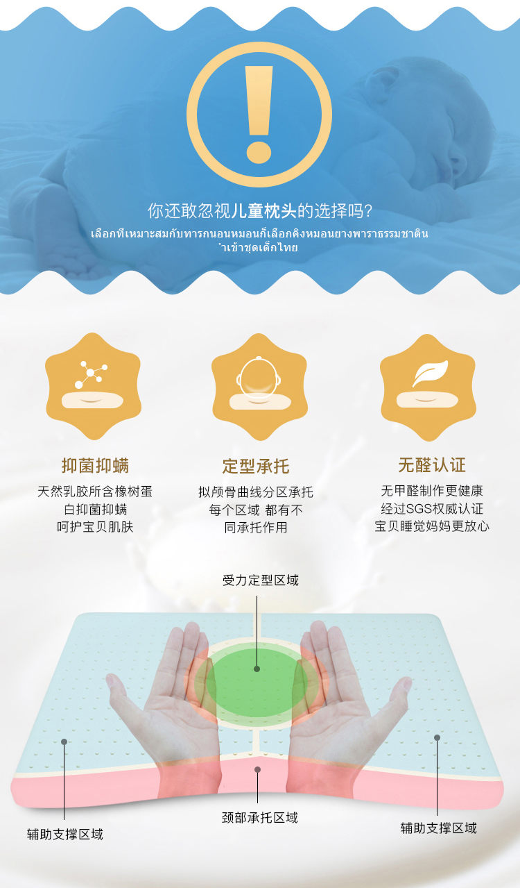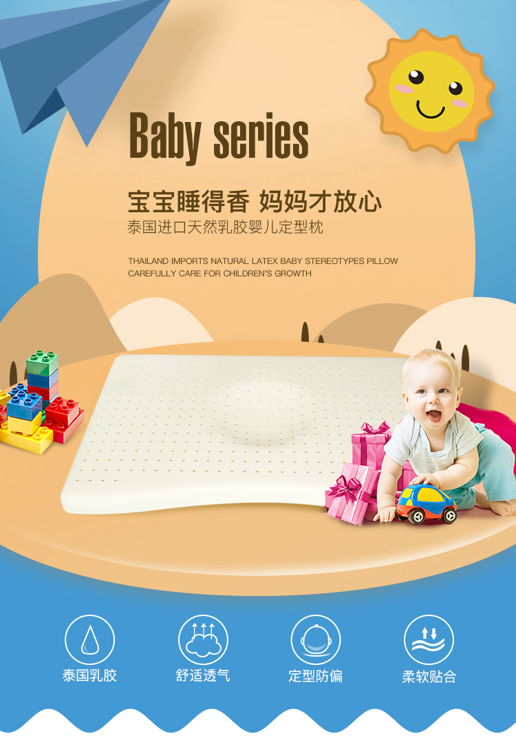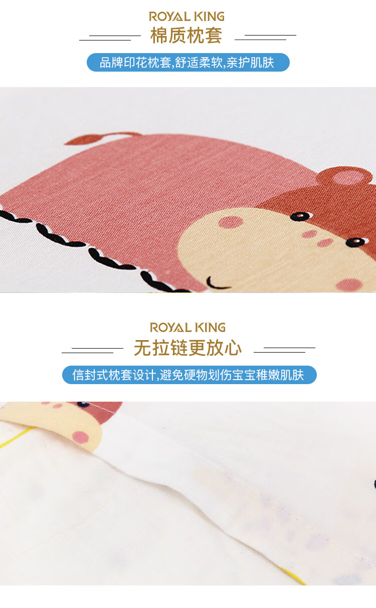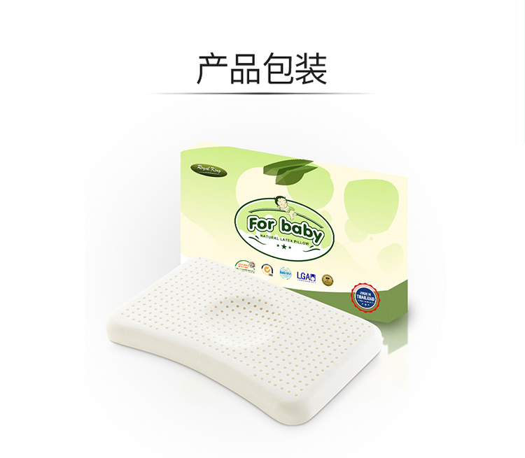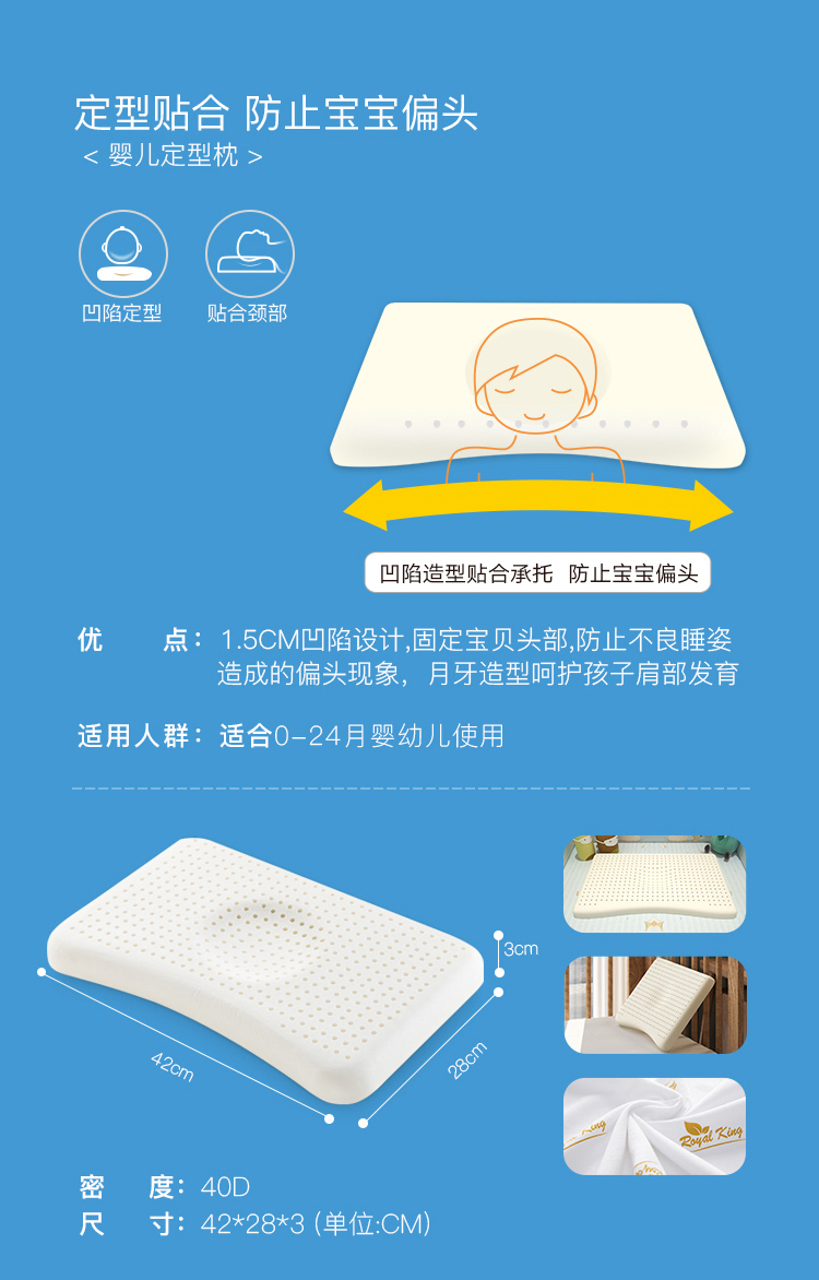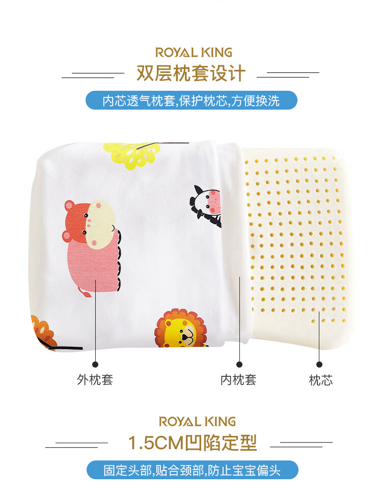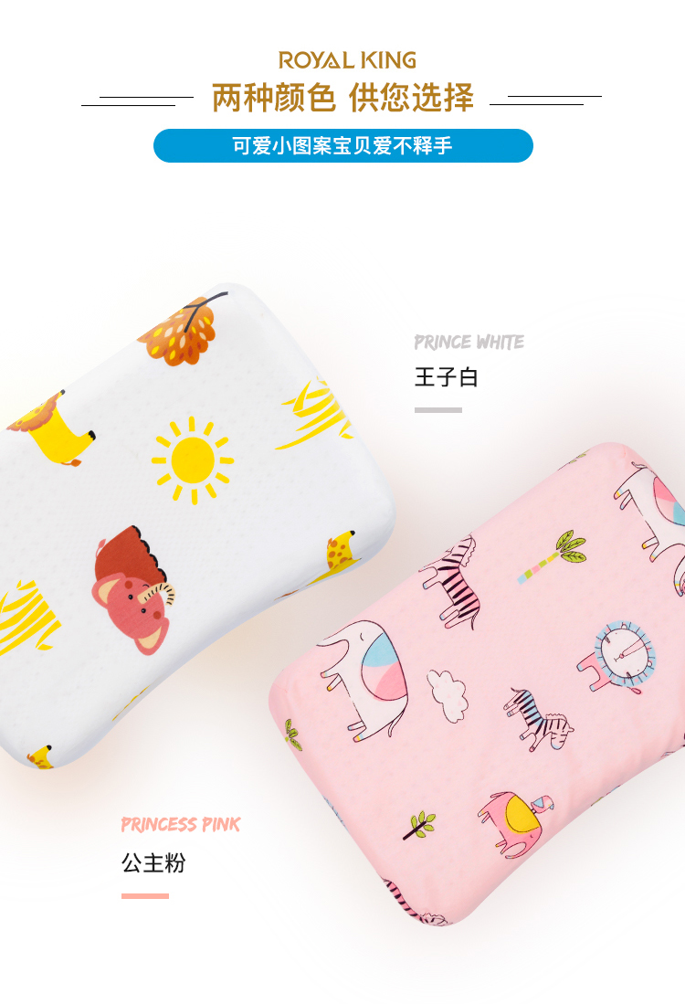 ROYAL KING泰国皇家进口宝宝天然乳胶枕头0-3岁婴儿男女儿童防扁头枕 婴儿定型枕(42*28*3cm)粉色款 单只
