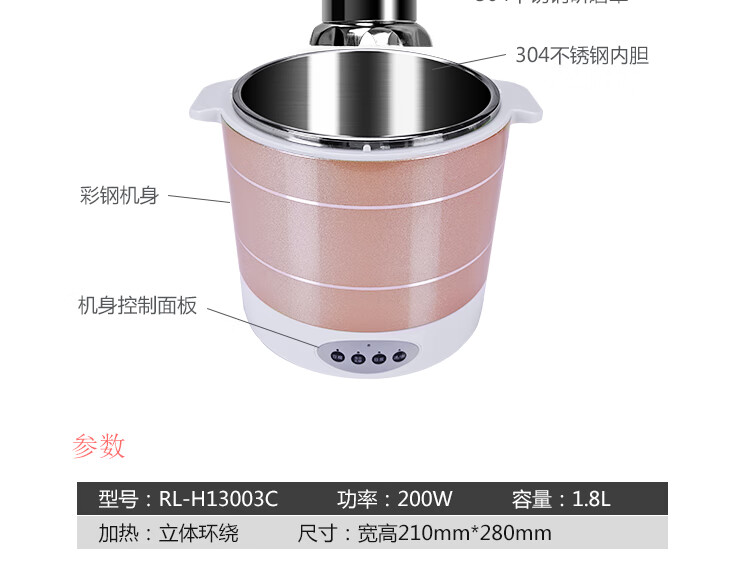 乐扣乐扣400ml养生杯烧水杯 迷你养生壶牛奶神器热奶杯电煮杯电炖杯电热水杯旅行加热水杯户外电热水杯 红色单机款- 0.4L