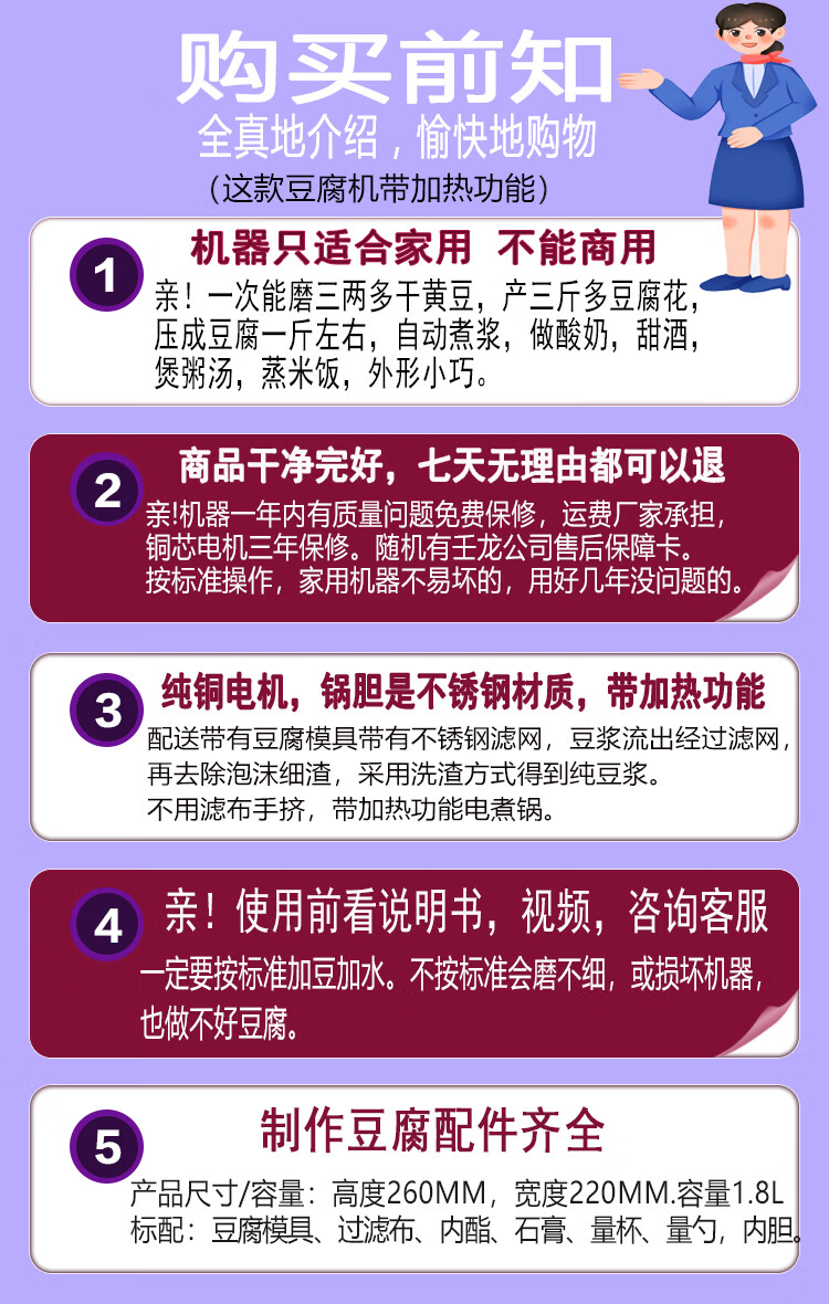 壬龙新型智能磨豆浆豆腐花豆浆豆腐机小型家用制酸奶甜酒酿蒸饭煲汤 银色 1.8L