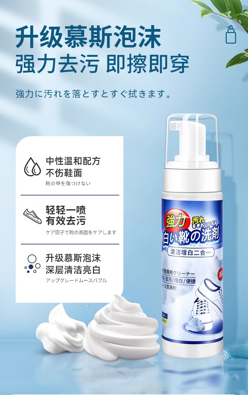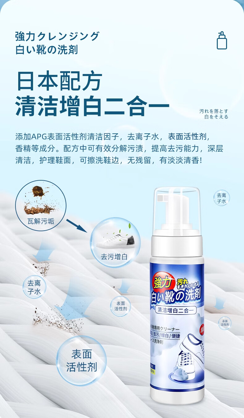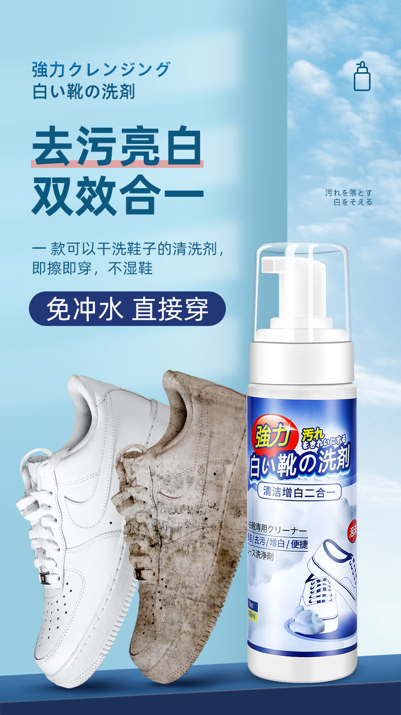 ZYUO【日本】小白鞋清洁剂去黄增白泡沫免洗网面运动球鞋泡沫鞋面鞋边 200ml 1瓶 【日本品牌】免水清洗 轻松去污 去黄净白 小白鞋洗鞋清洁剂网面发黄免水洗增白去黄去污