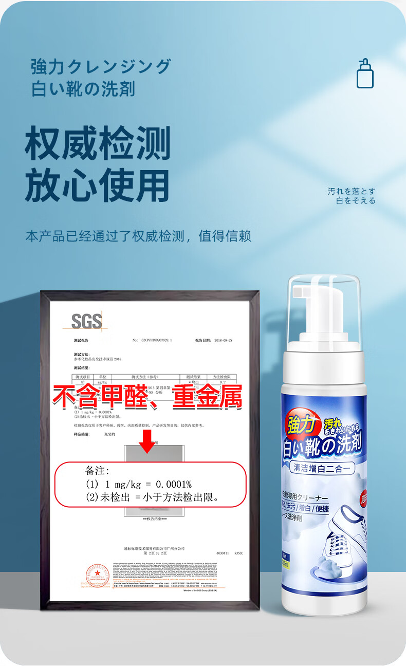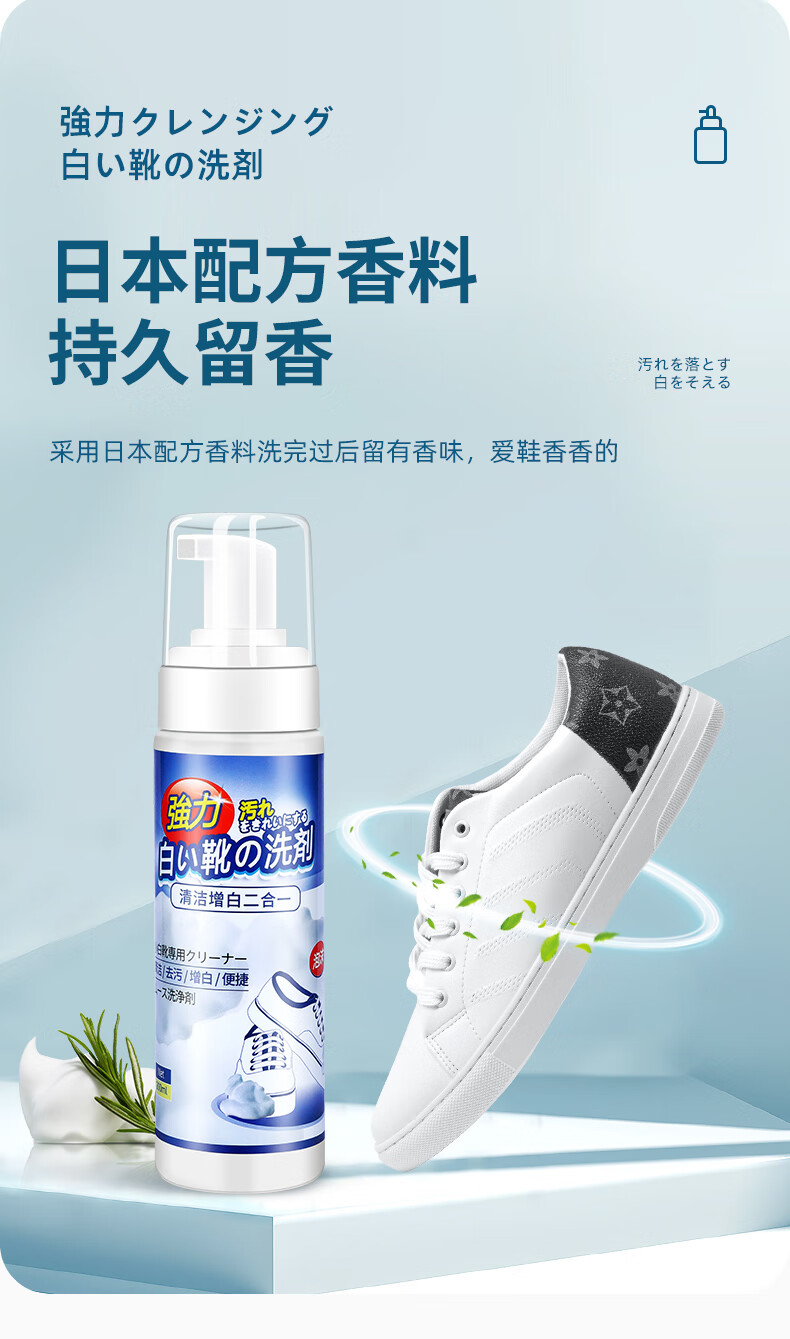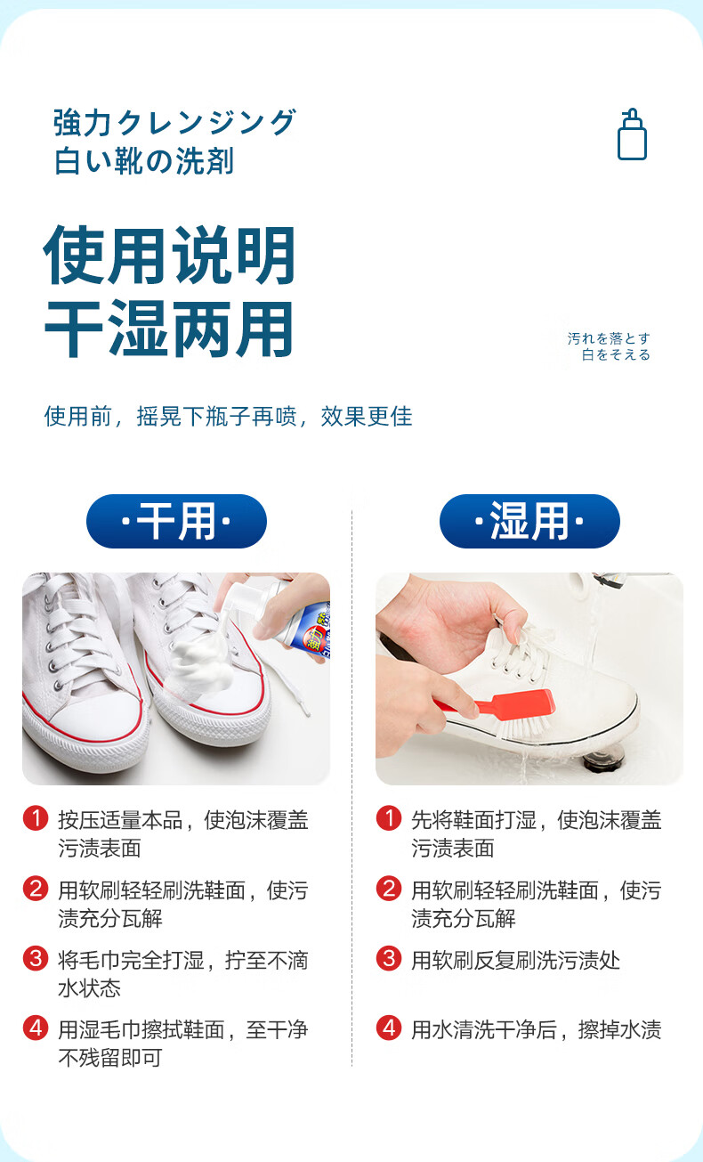 ZYUO【日本】小白鞋清洁剂去黄增白泡沫免洗网面运动球鞋泡沫鞋面鞋边 200ml 1瓶 【日本品牌】免水清洗 轻松去污 去黄净白 小白鞋洗鞋清洁剂网面发黄免水洗增白去黄去污