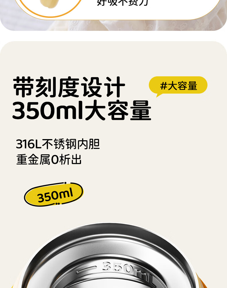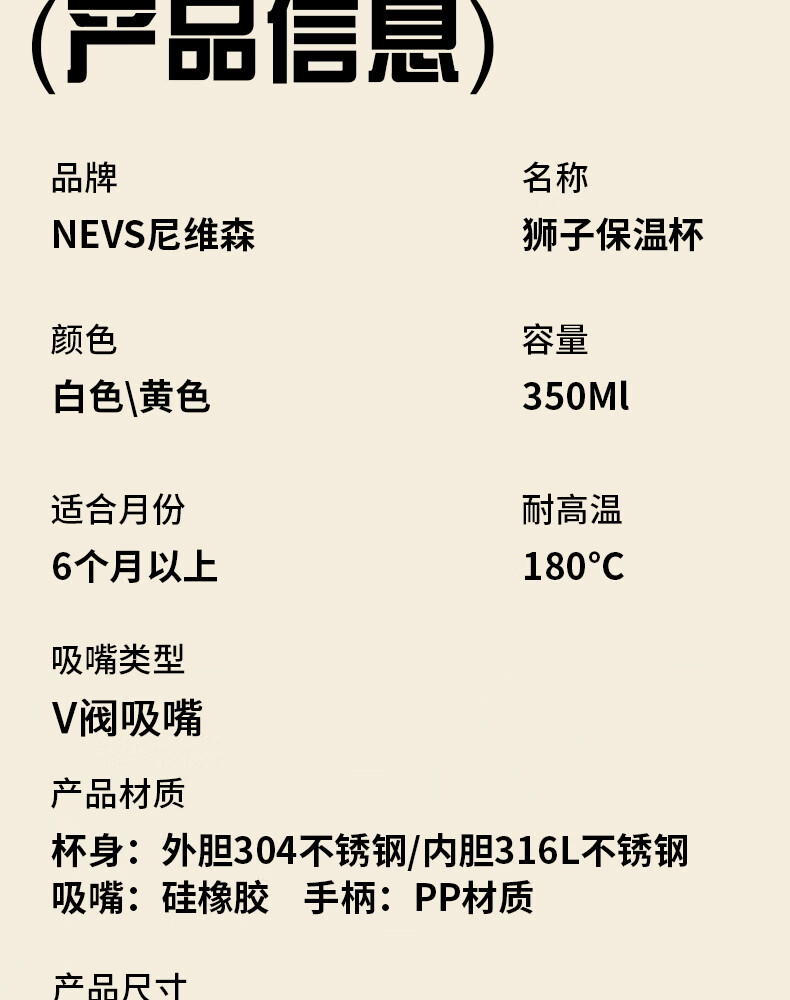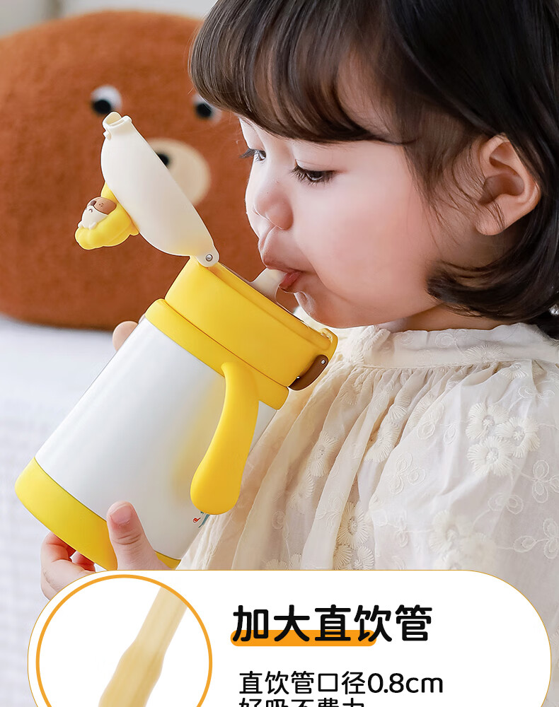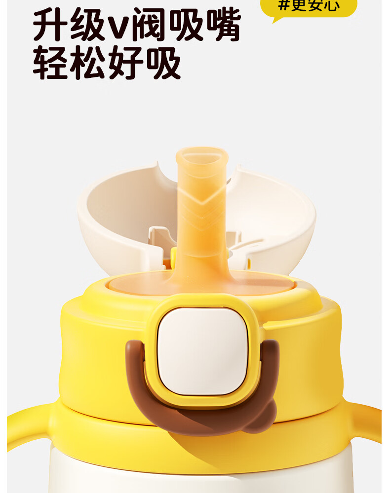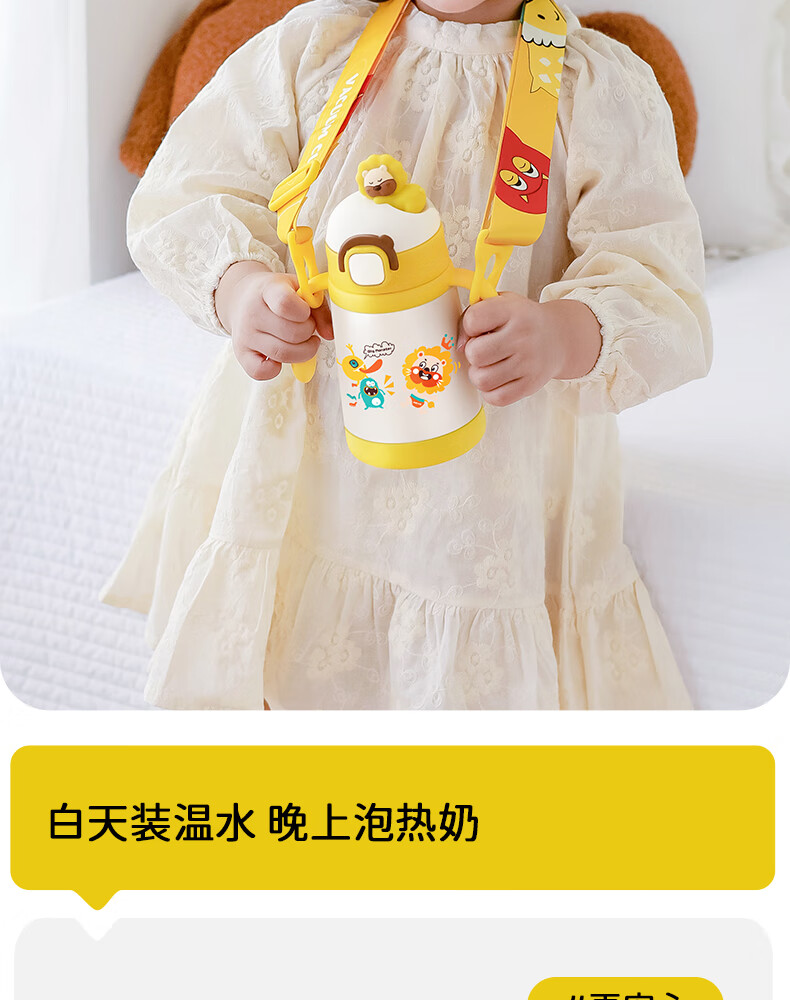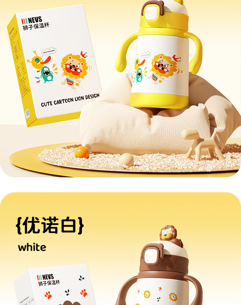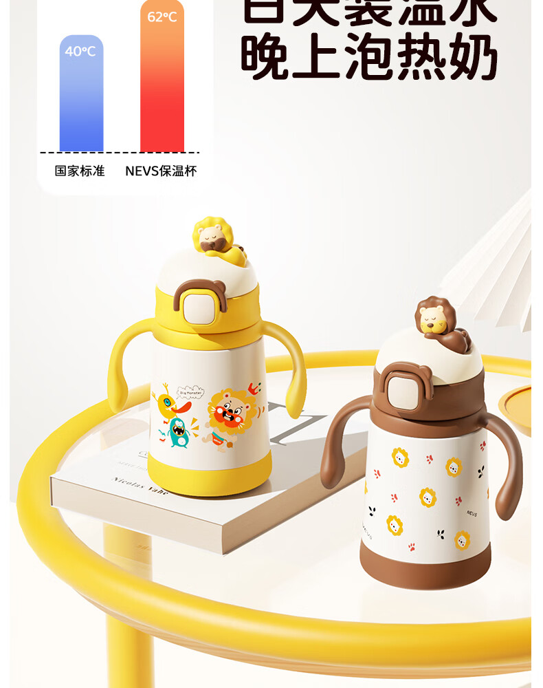 NEVS儿童保温水杯宝宝学饮杯婴儿吸管奶瓶小月龄6月以上316不锈钢水壶 优诺白350ml +重力球吸管+背带