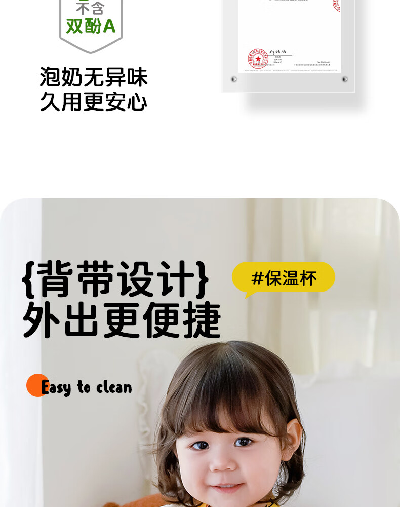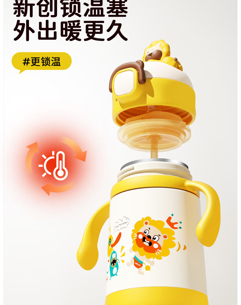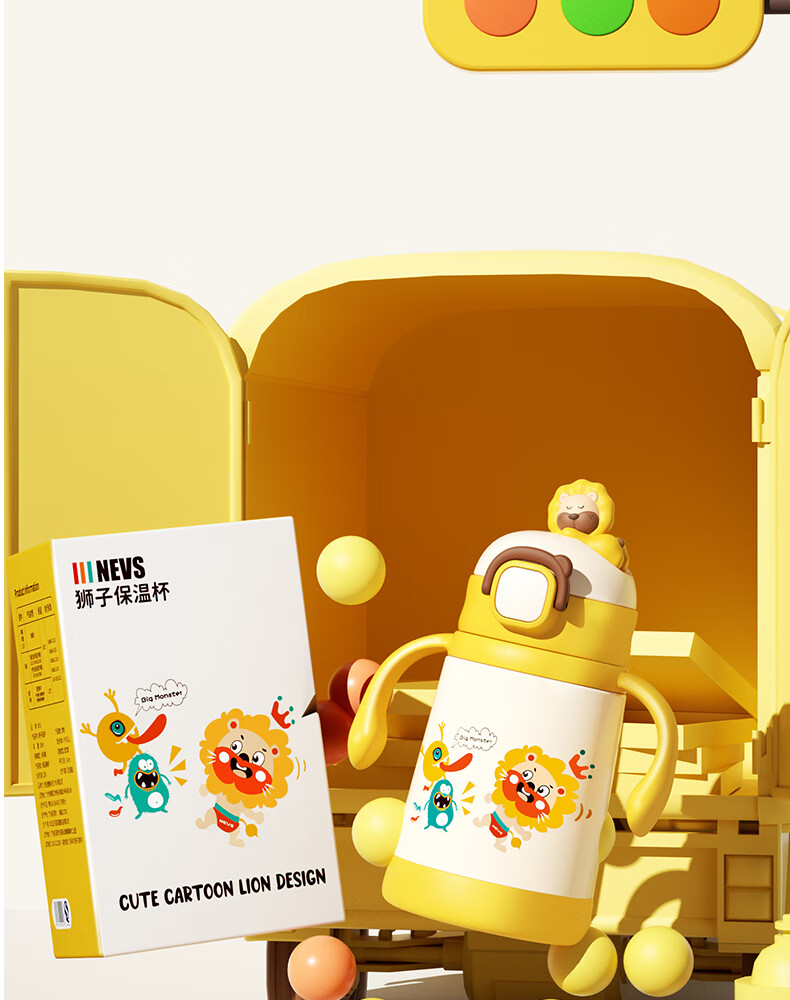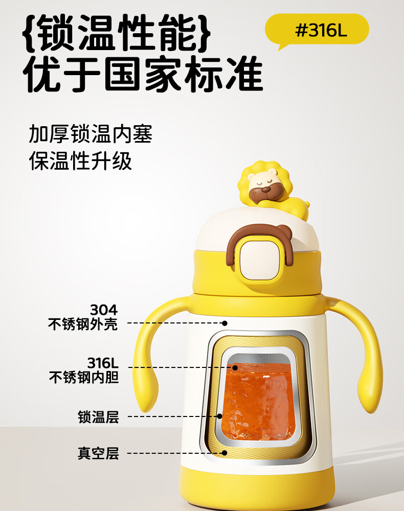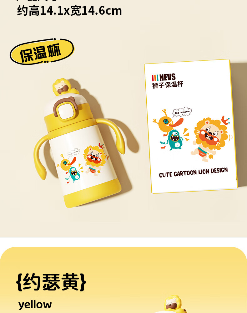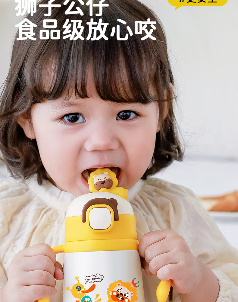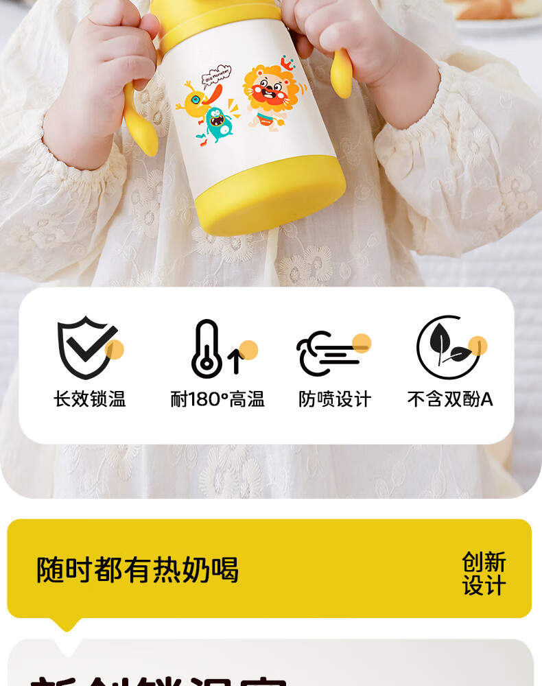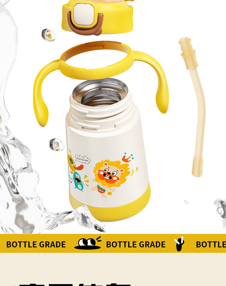NEVS儿童保温水杯宝宝学饮杯婴儿吸管奶瓶小月龄6月以上316不锈钢水壶 优诺白350ml +重力球吸管+背带