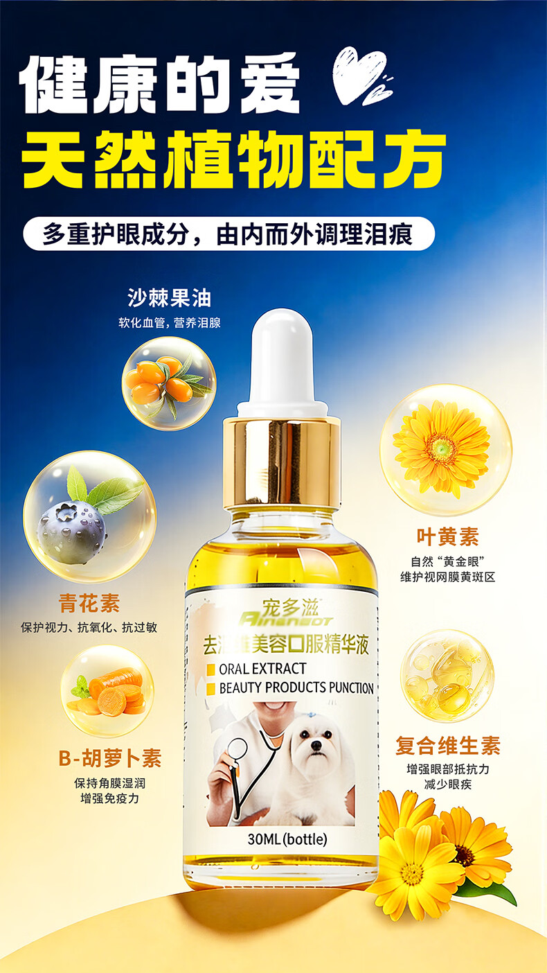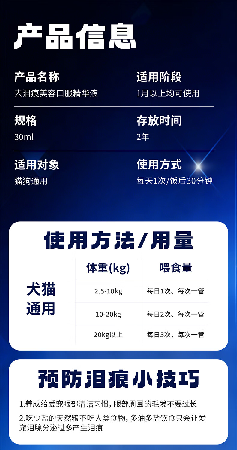 宠多滋挑战7天去泪痕口服液猫狗通用神器祛上火眼屎流泪泪管泪腺眼部清洁宠物用品泰迪边牧哈士奇边牧金毛比熊通用 猫狗通用 1瓶*1盒
