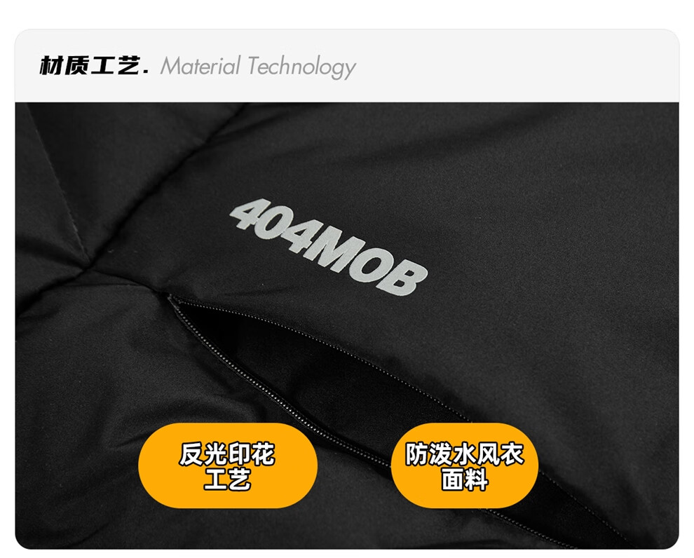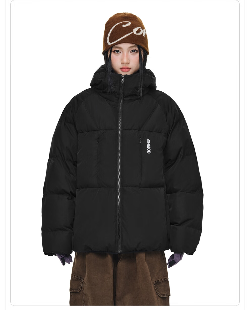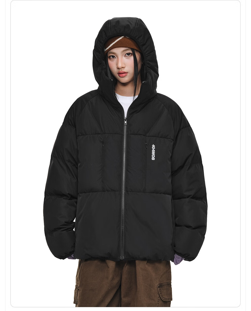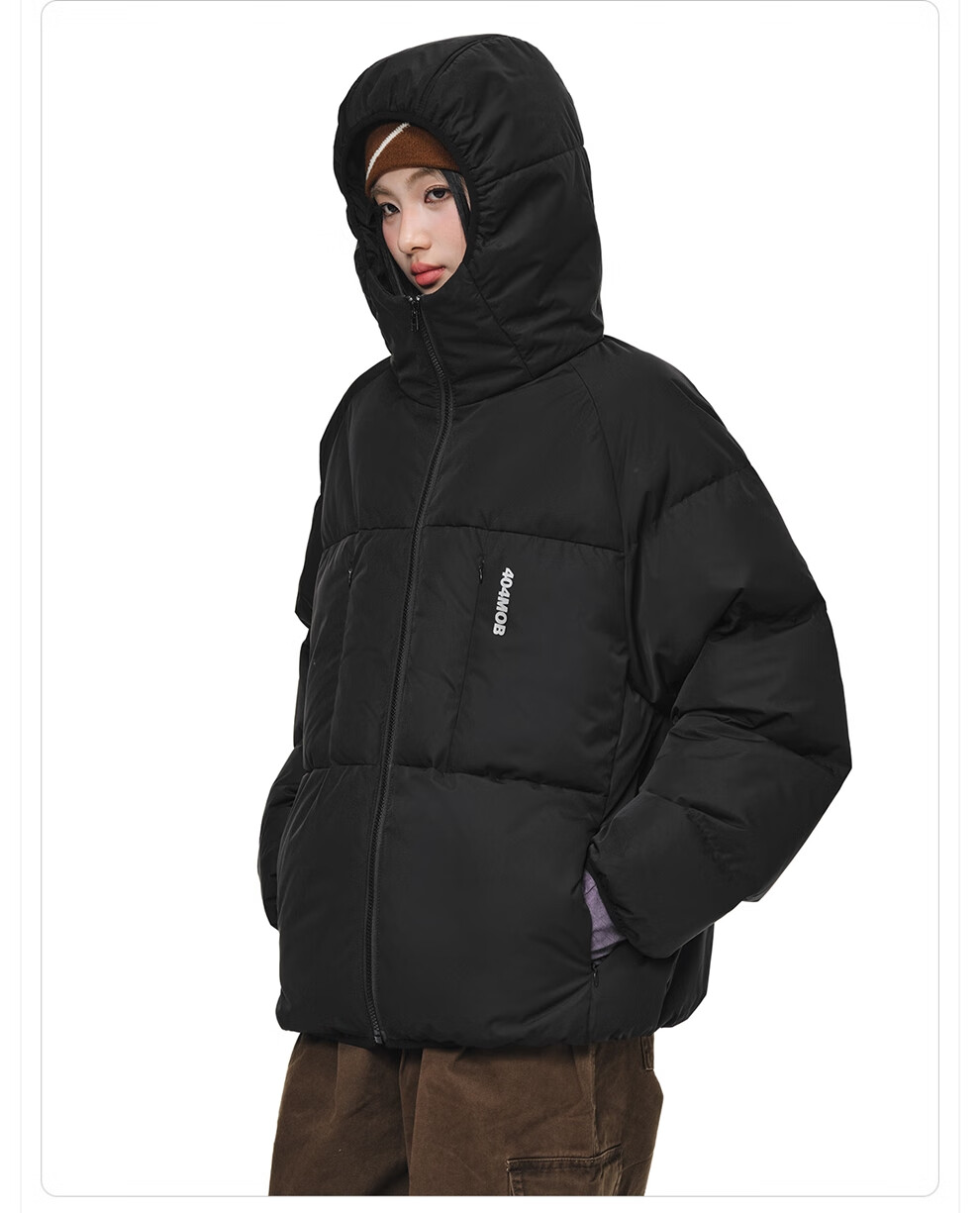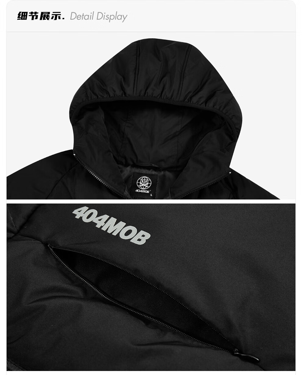 404MOBGANG 户外运动登山连帽棉服男女冬季面包服加厚保暖三防外套休闲棉衣 黑色 XL