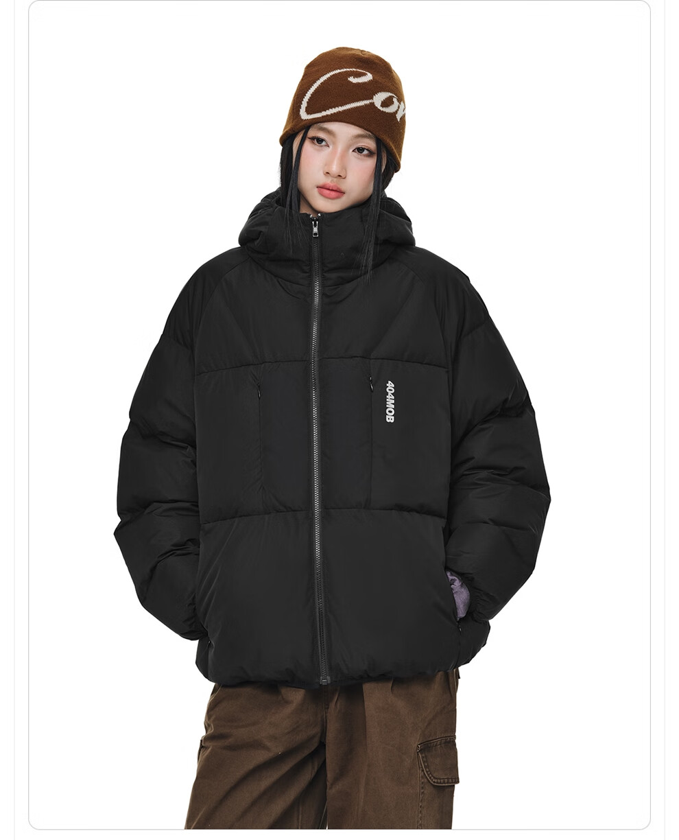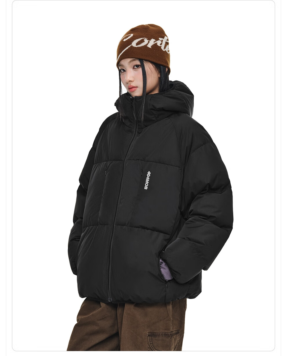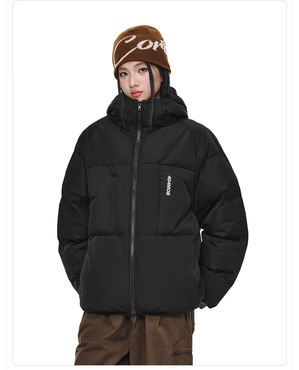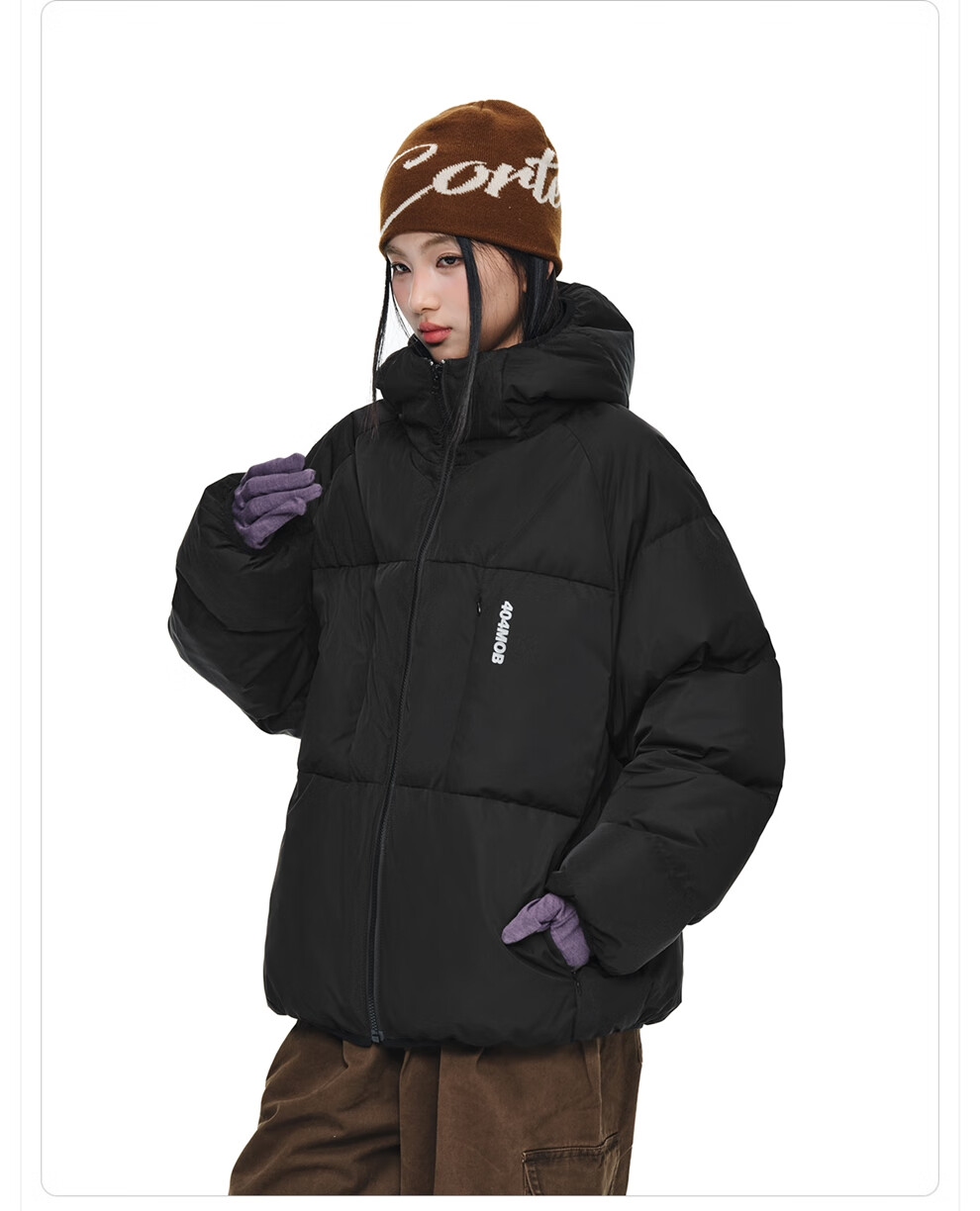 404MOBGANG 户外运动登山连帽棉服男女冬季面包服加厚保暖三防外套休闲棉衣 黑色 XL