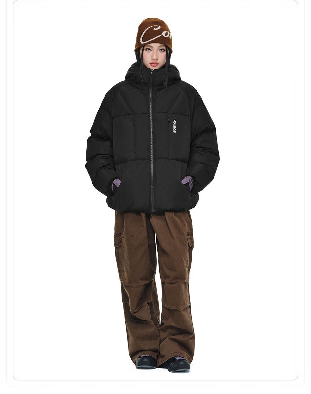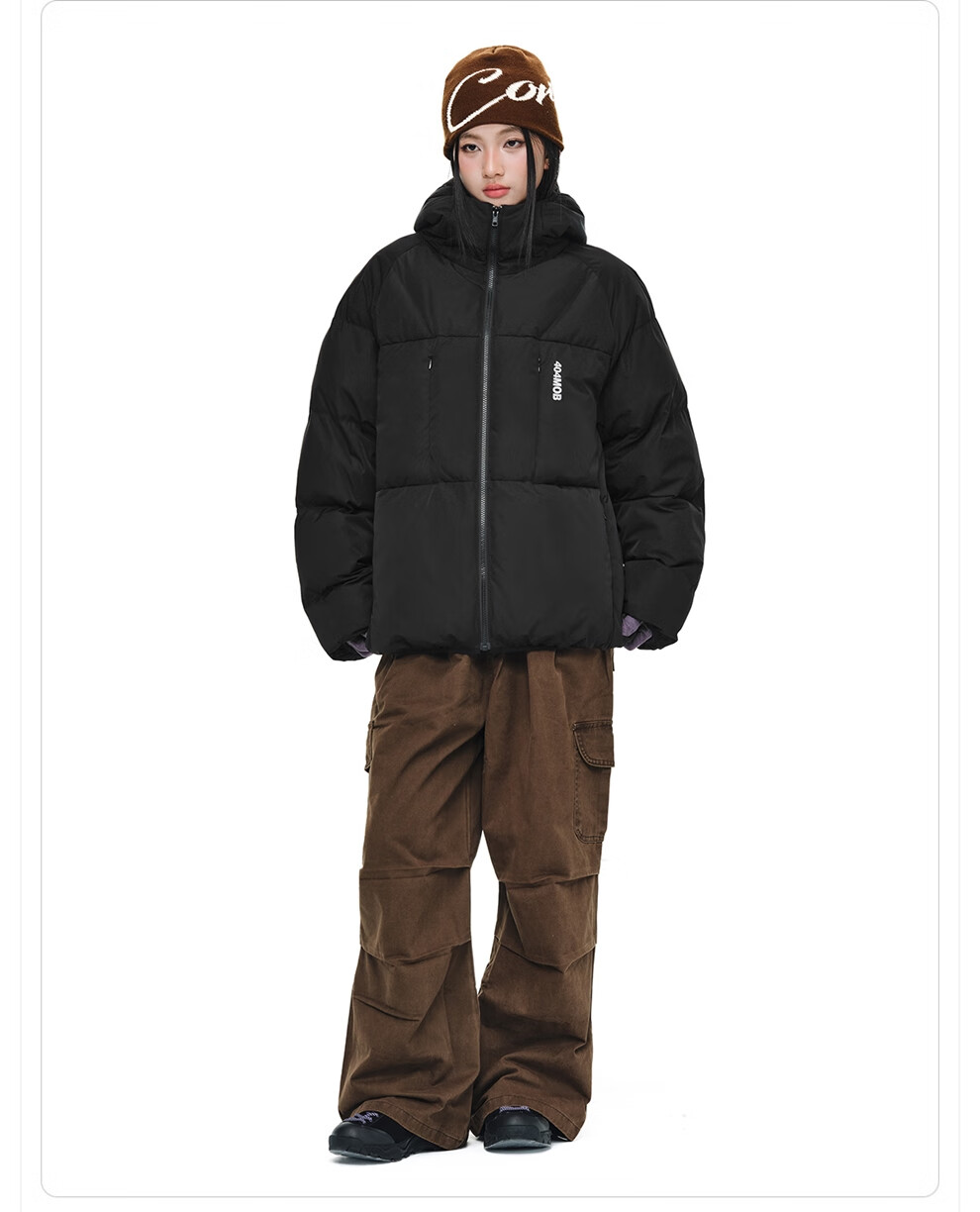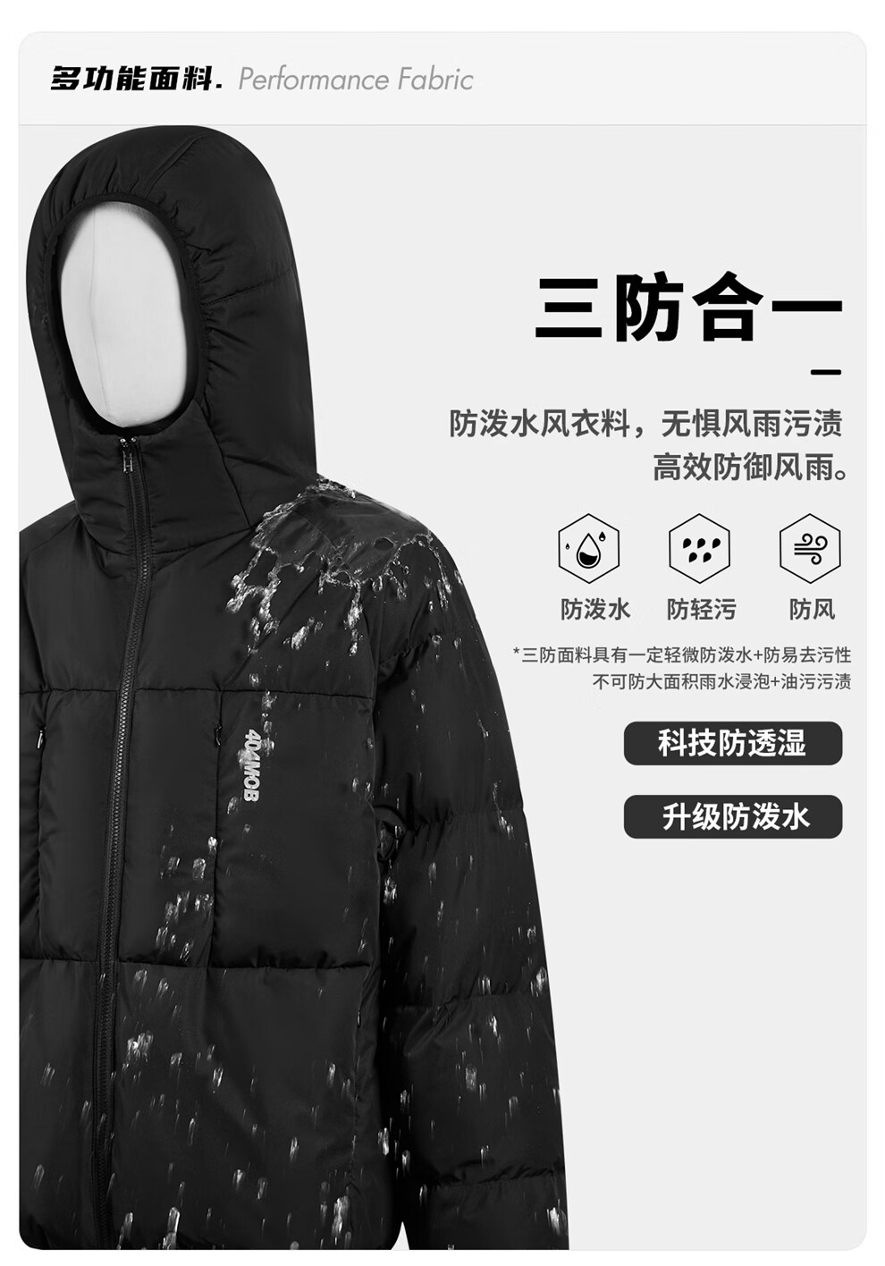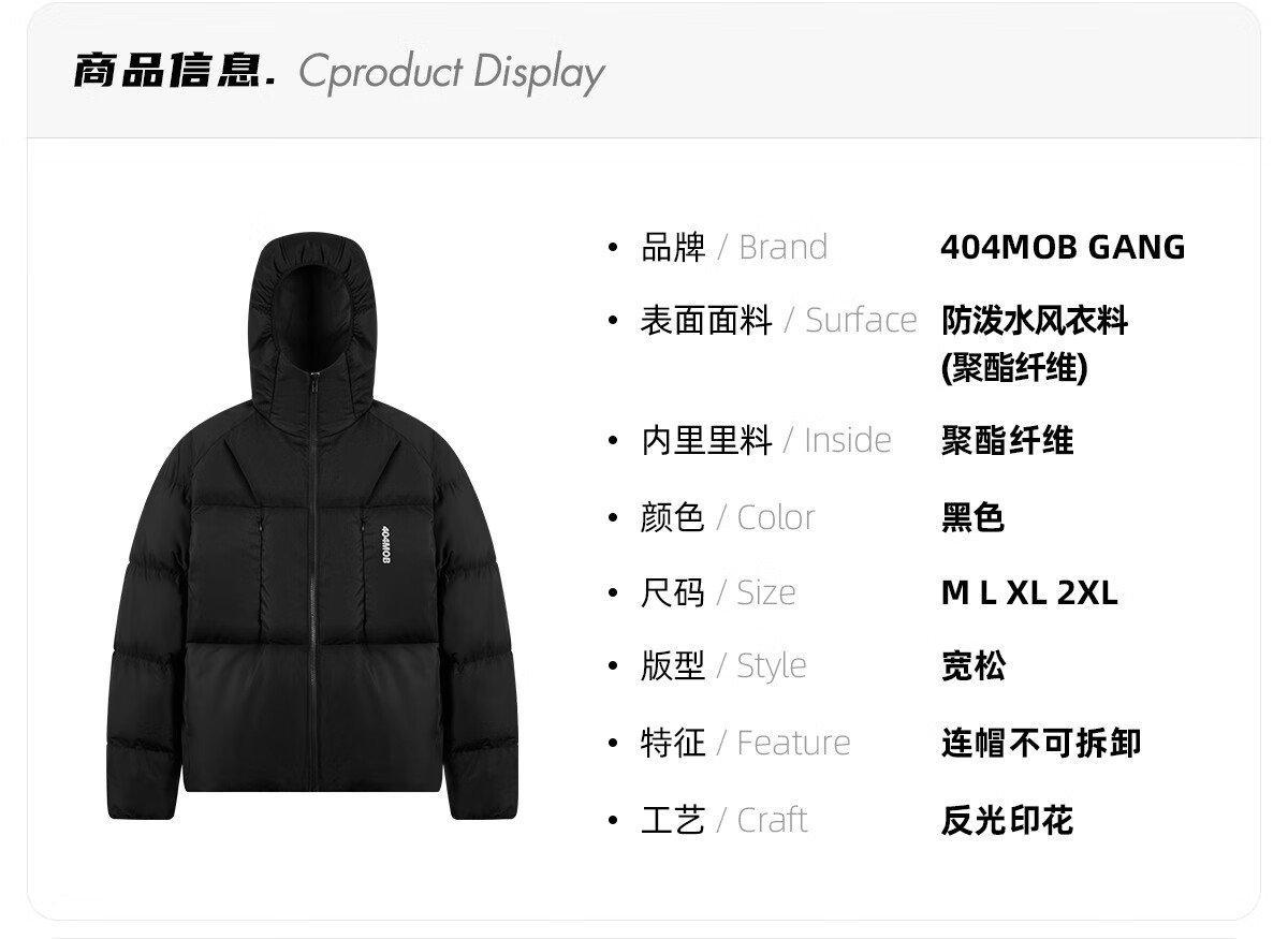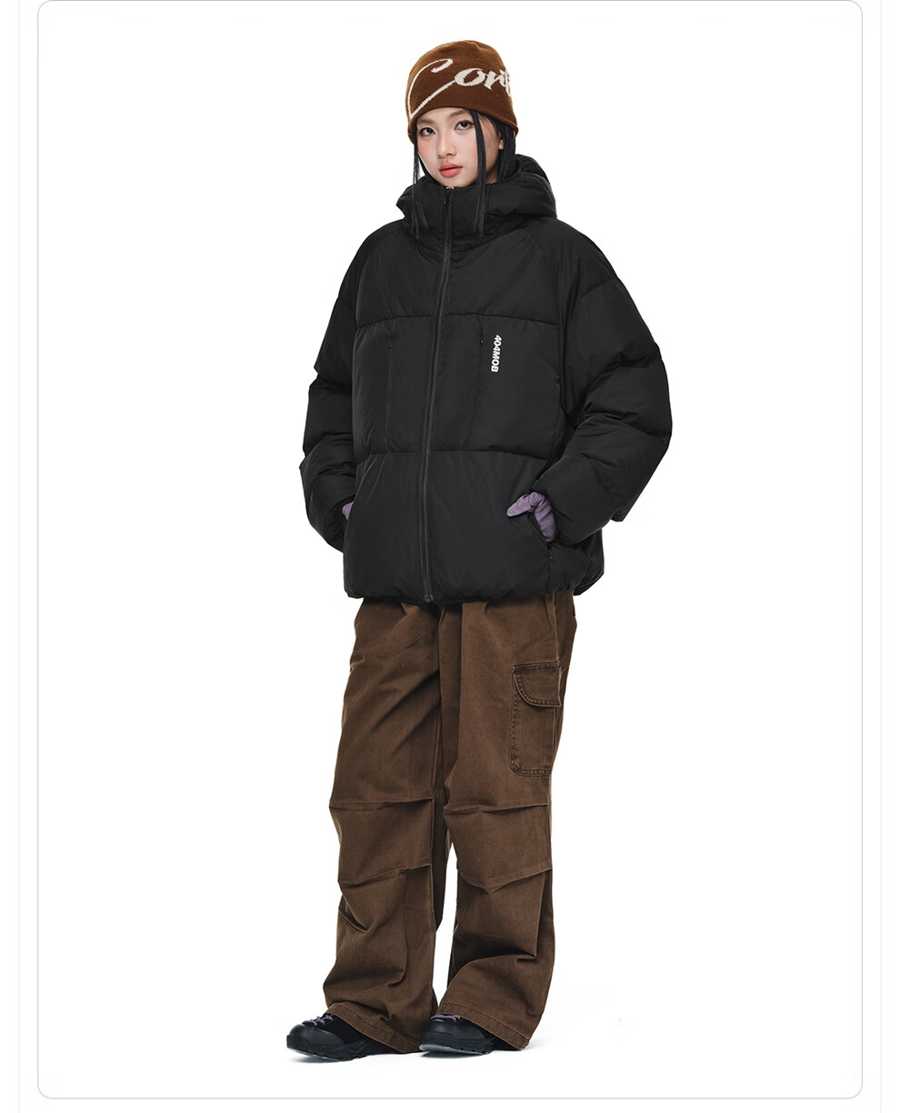 404MOBGANG 户外运动登山连帽棉服男女冬季面包服加厚保暖三防外套休闲棉衣 黑色 XL