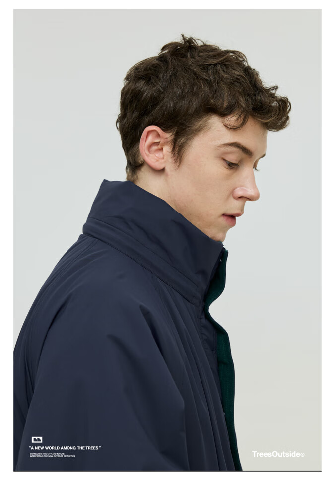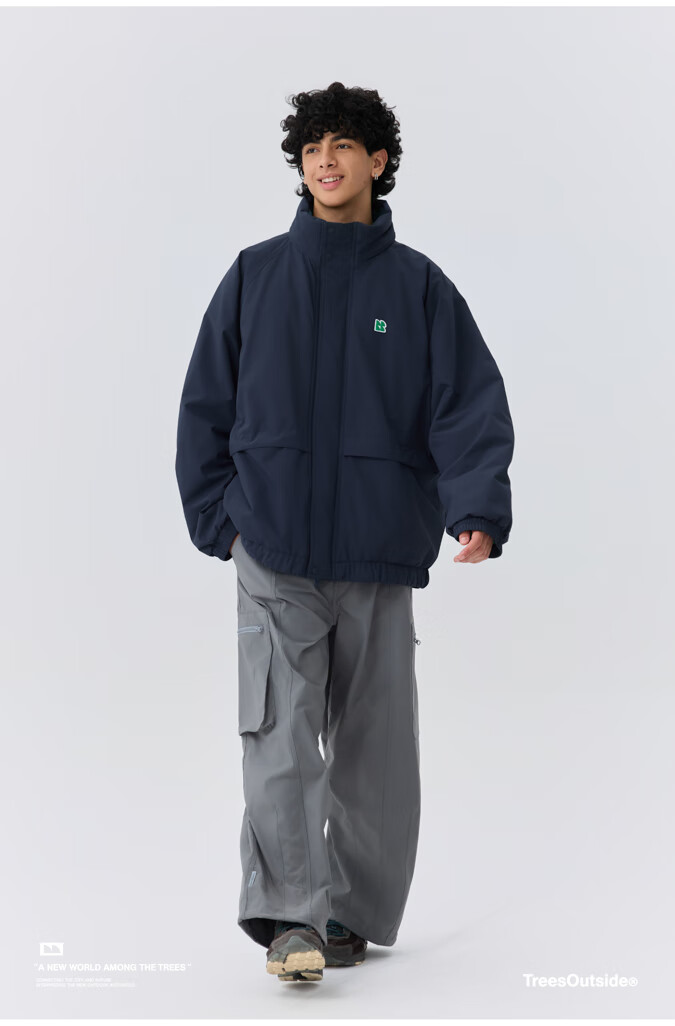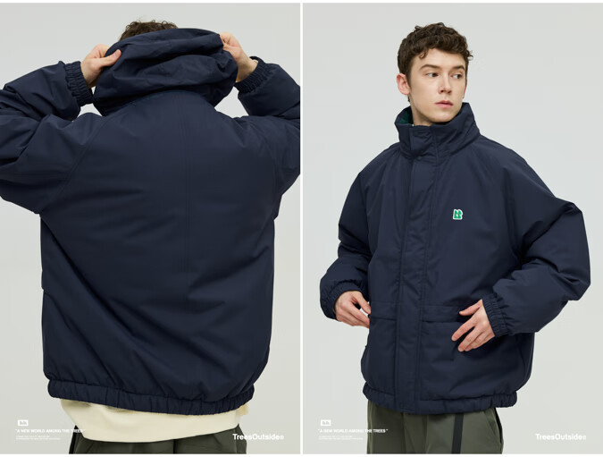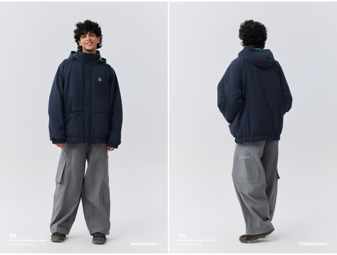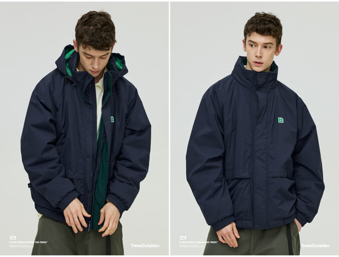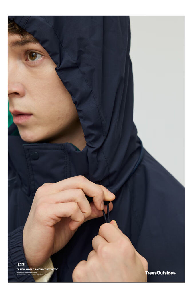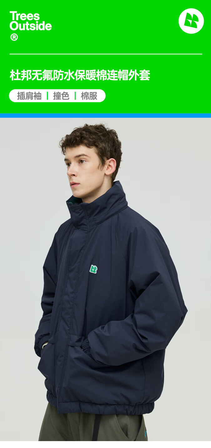 warmtreesTreesOutside杜邦无氟防泼水保暖棉连帽外套棉服 藏青色【帽子可收纳】 M