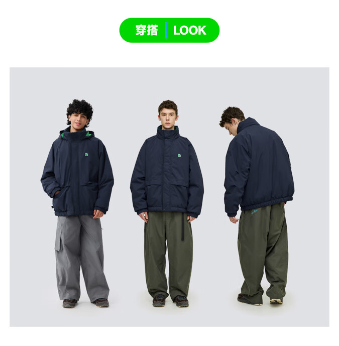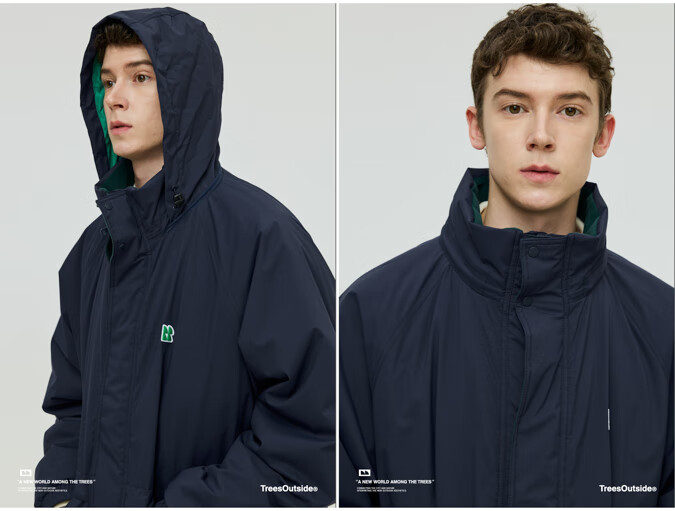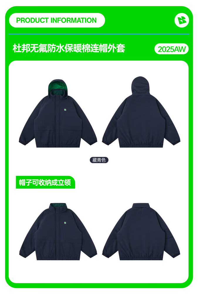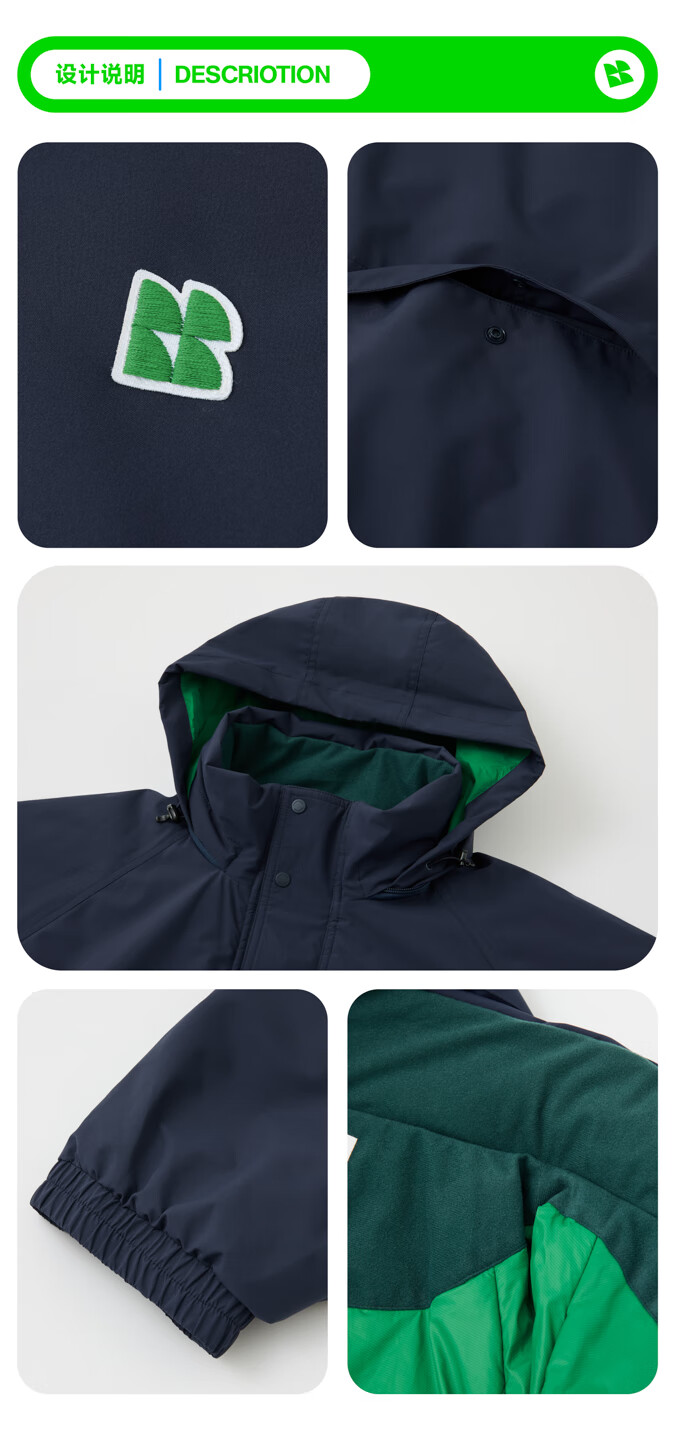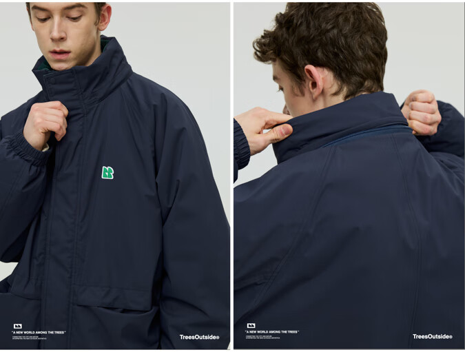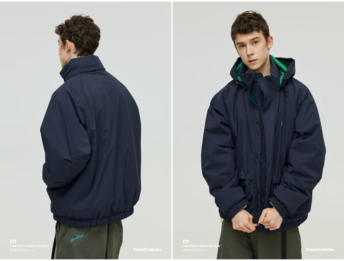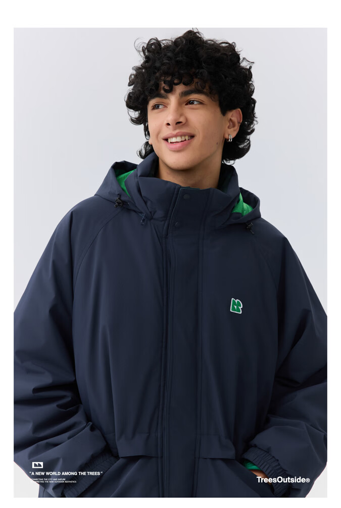 warmtreesTreesOutside杜邦无氟防泼水保暖棉连帽外套棉服 藏青色【帽子可收纳】 M