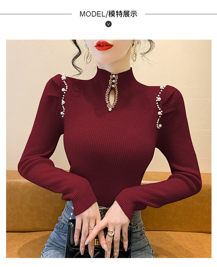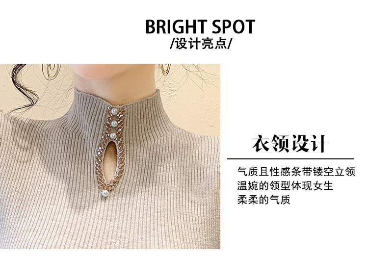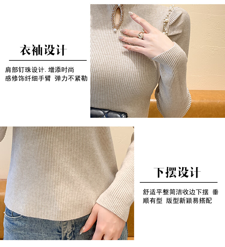 香影芬毛衣女款钉珠镂空半高领针织衫女秋冬气质设计感修身冬季长袖上衣 驼色 S (建议95斤以内)