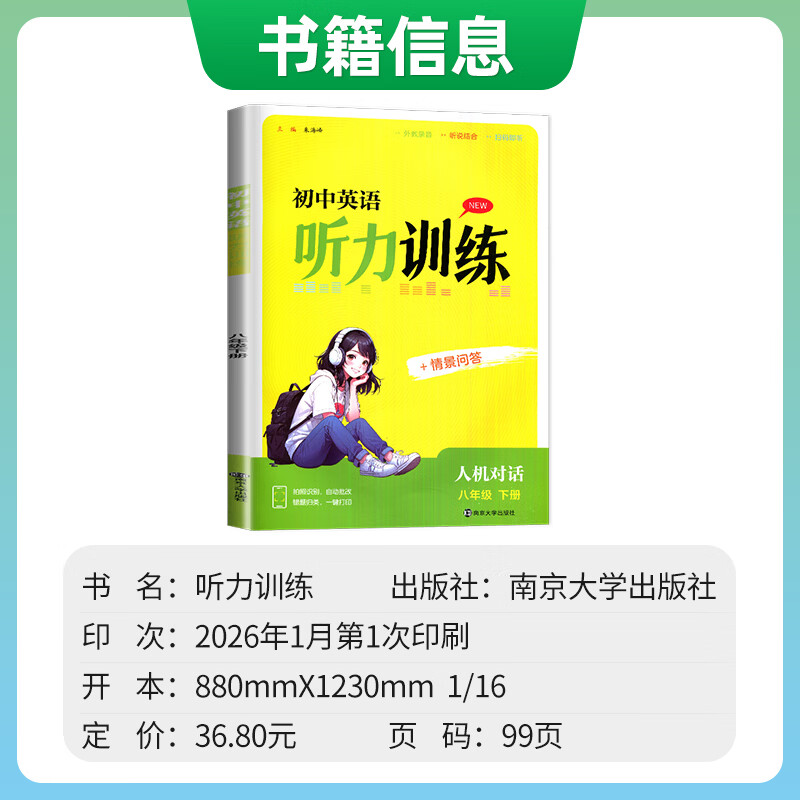 2026初中英语听力训练人机对话 七八九年级上下册全一册 789年级情景问答初一二三金钥匙同步英语听力模拟训练期中期末测试 九年级 全一册