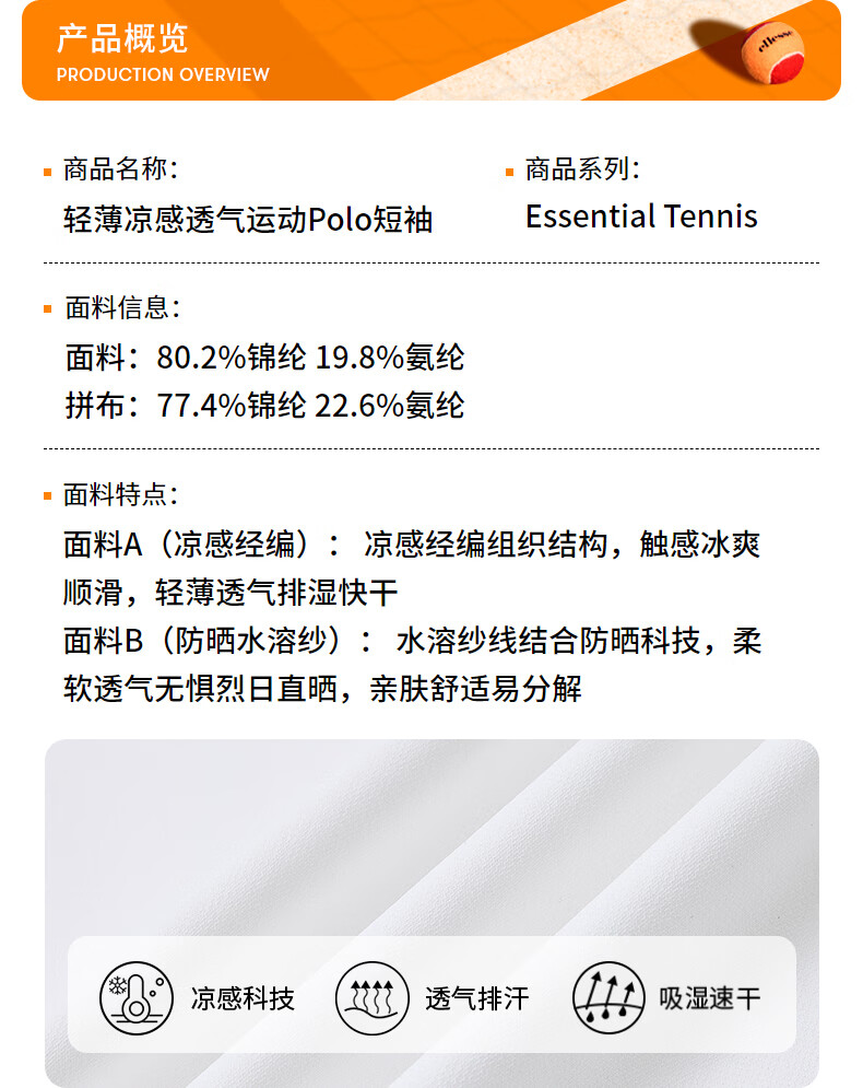 ellesse小贝壳26春新品网球服轻薄凉感透气经典老钱风polo短袖男 星云白 M