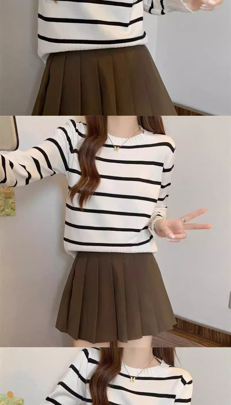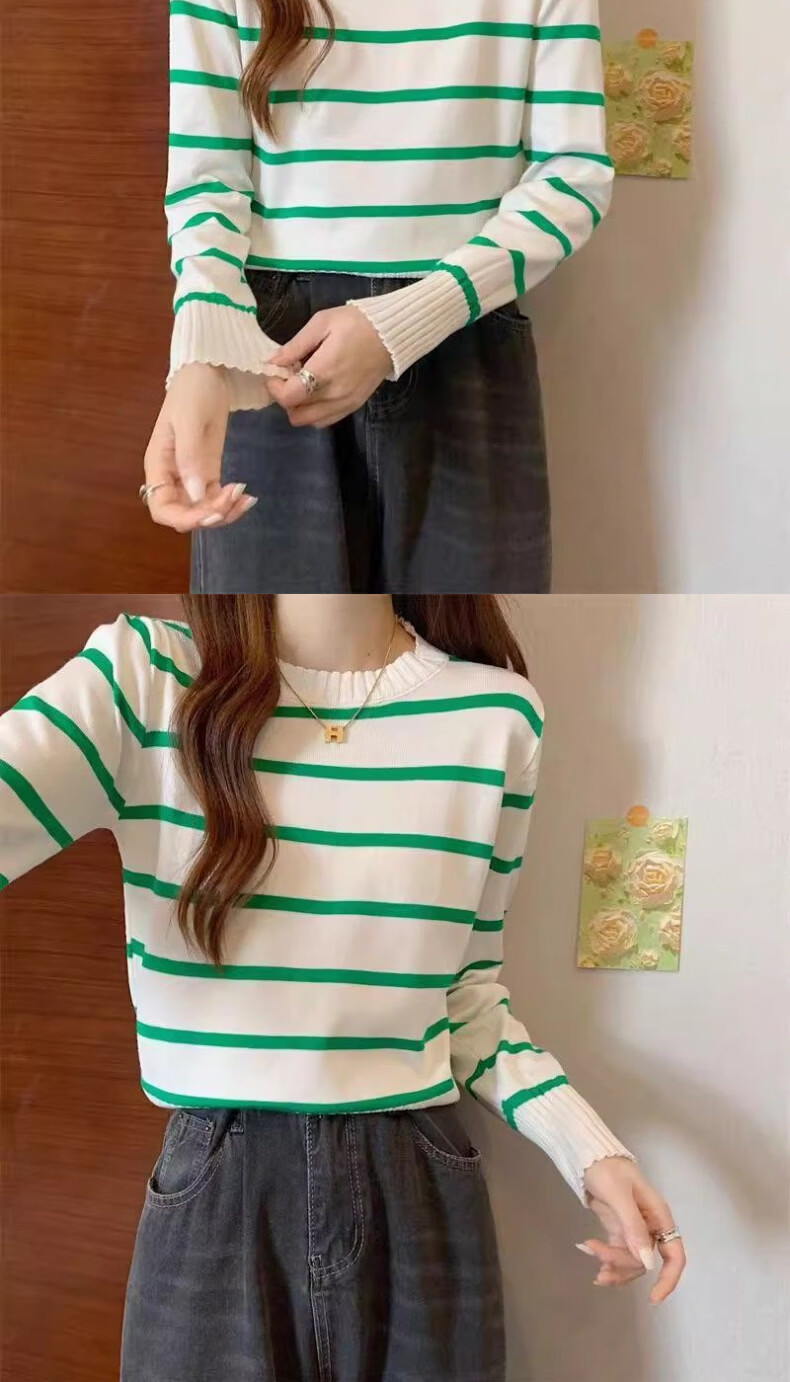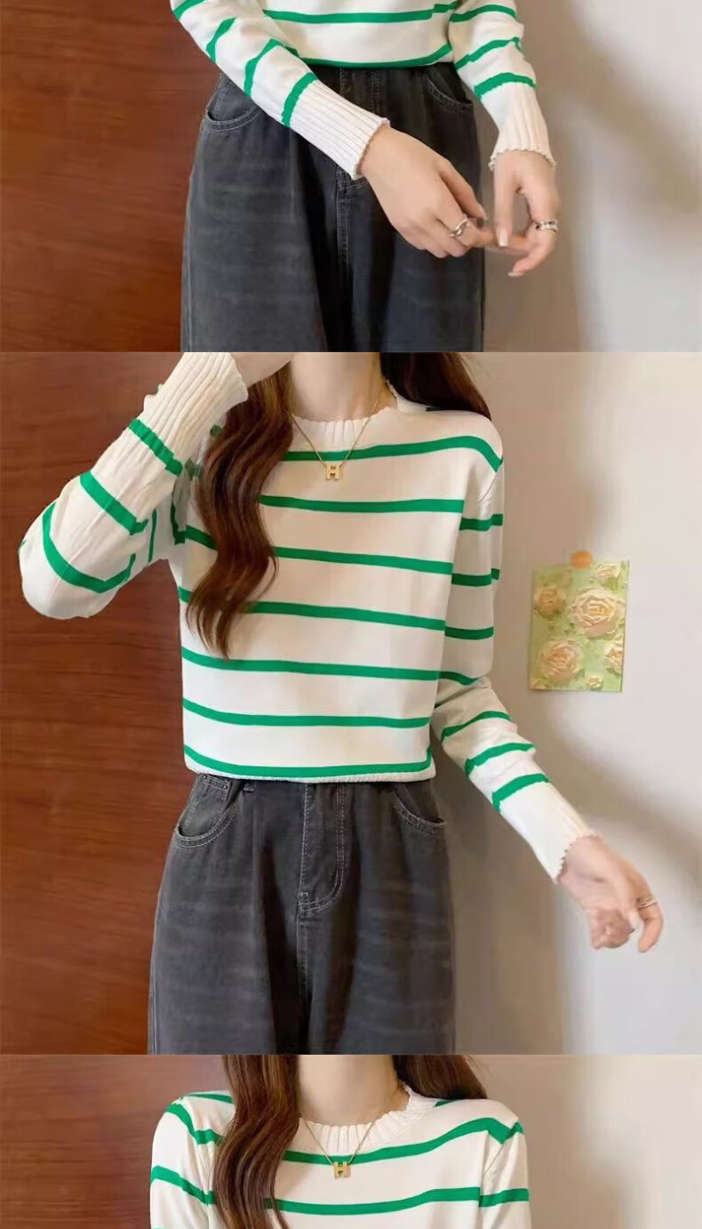 WAMLBN秋季短款韩版撞色条纹长袖针织衫针织2025打底新款毛衣设计上衣 白色 均码