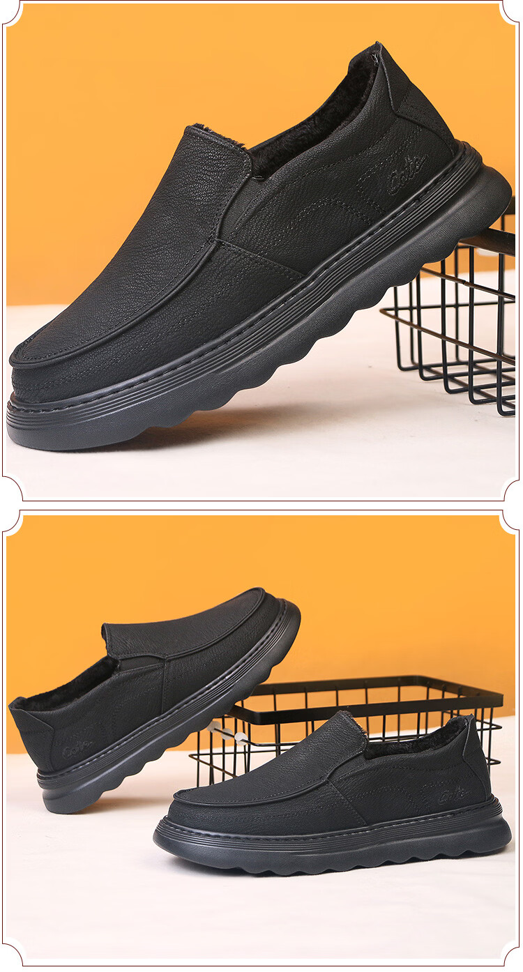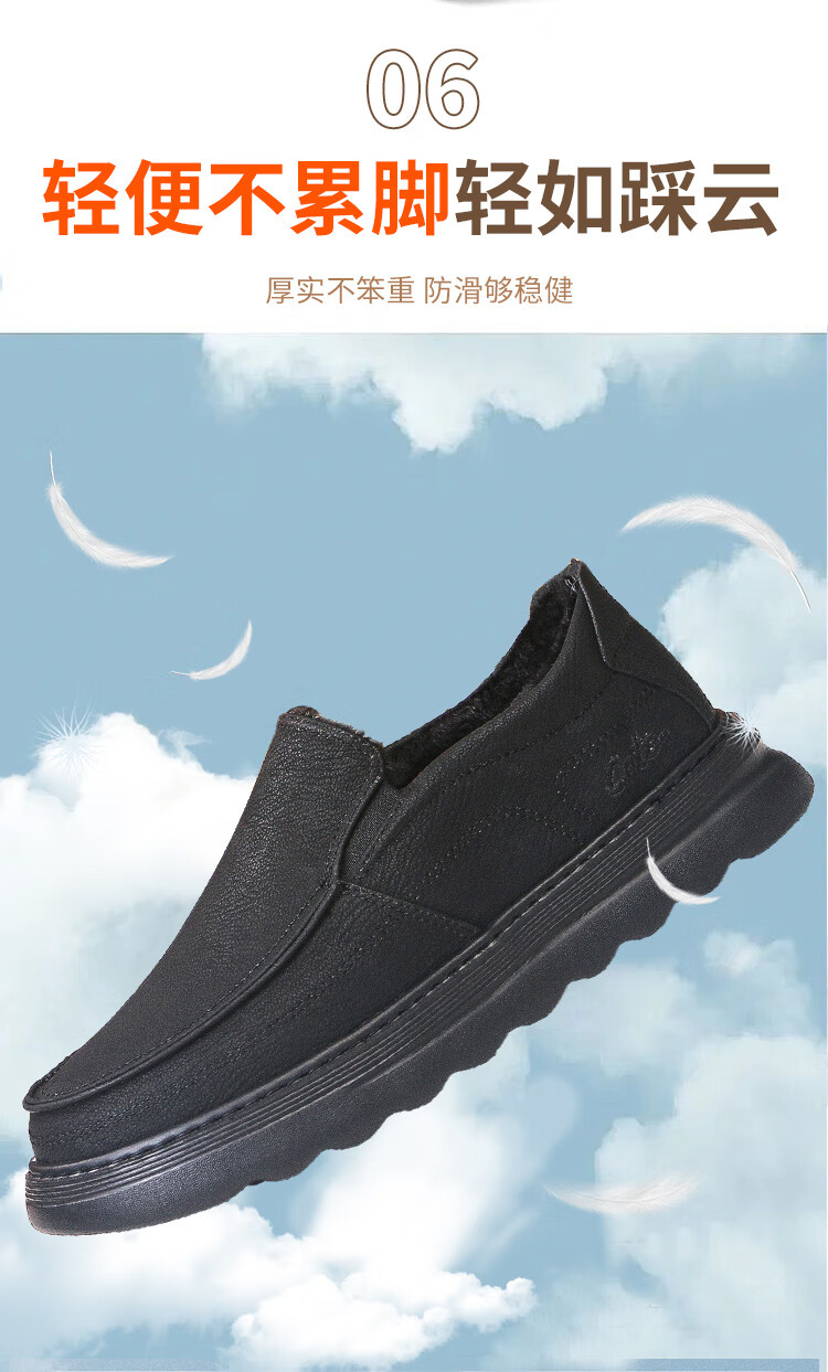 奥康(Aokang)男鞋套脚商务休闲皮鞋男士牛皮软底一脚蹬皮鞋黑色43码