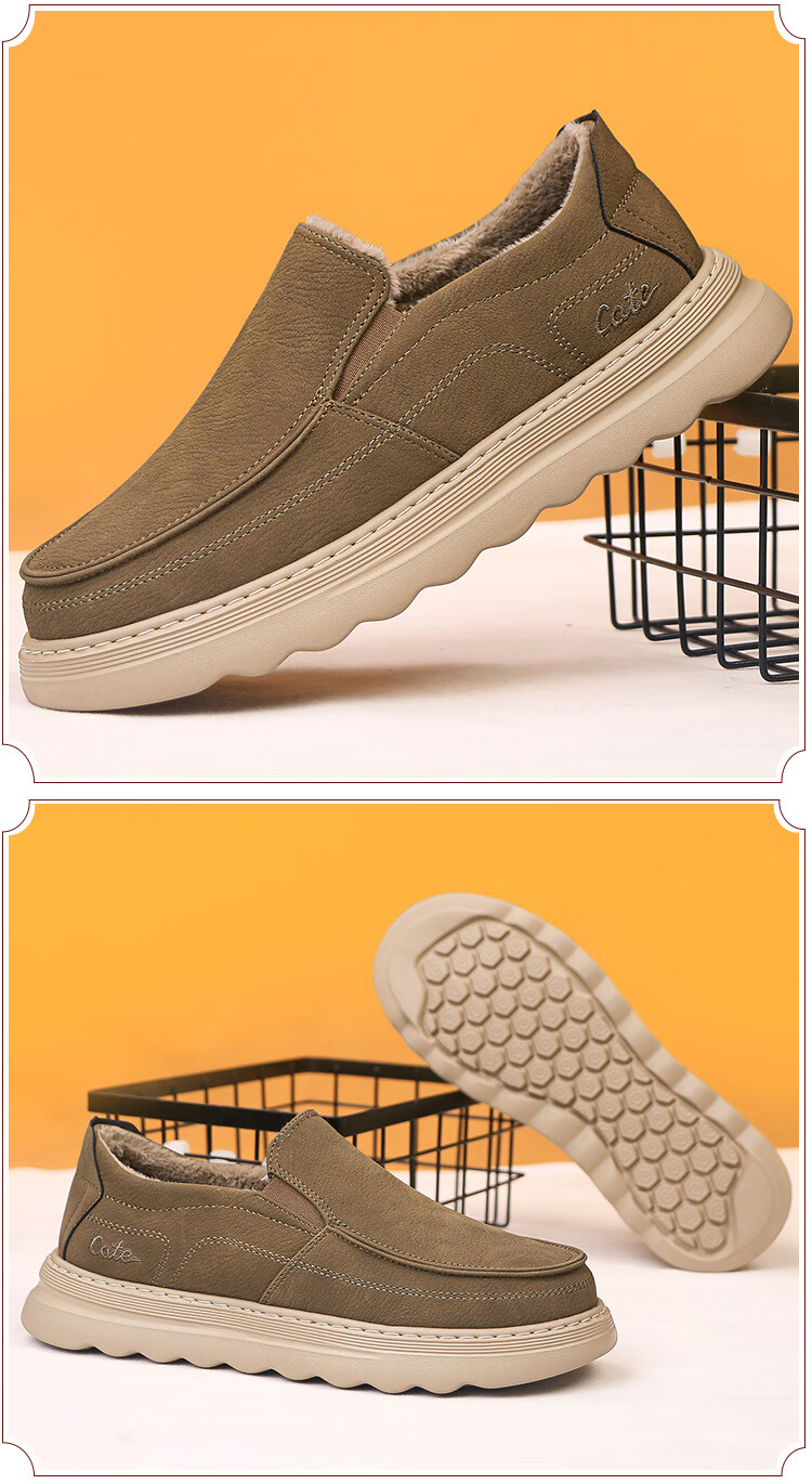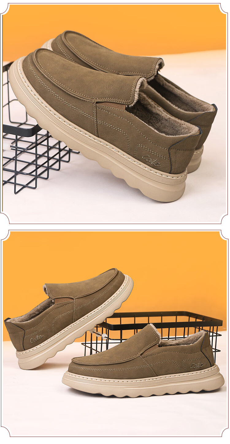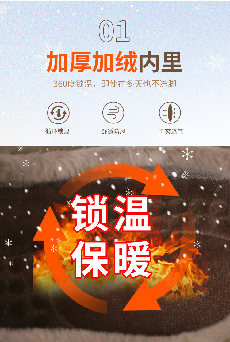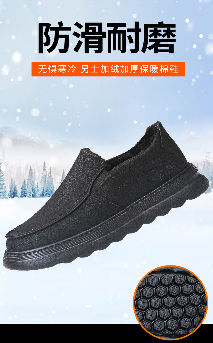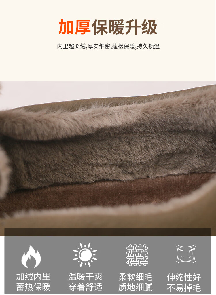 稻草人(MEXICAN)冬季新款棉鞋男保暖加厚老北京布鞋加绒中老年爸爸鞋一脚蹬二棉鞋 咖色 39