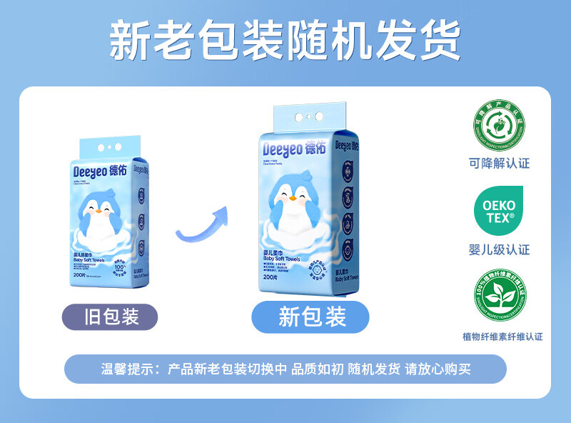 德佑悬挂绵柔巾婴儿加大加厚洗脸巾干湿两用一次性洁面巾200抽*1提