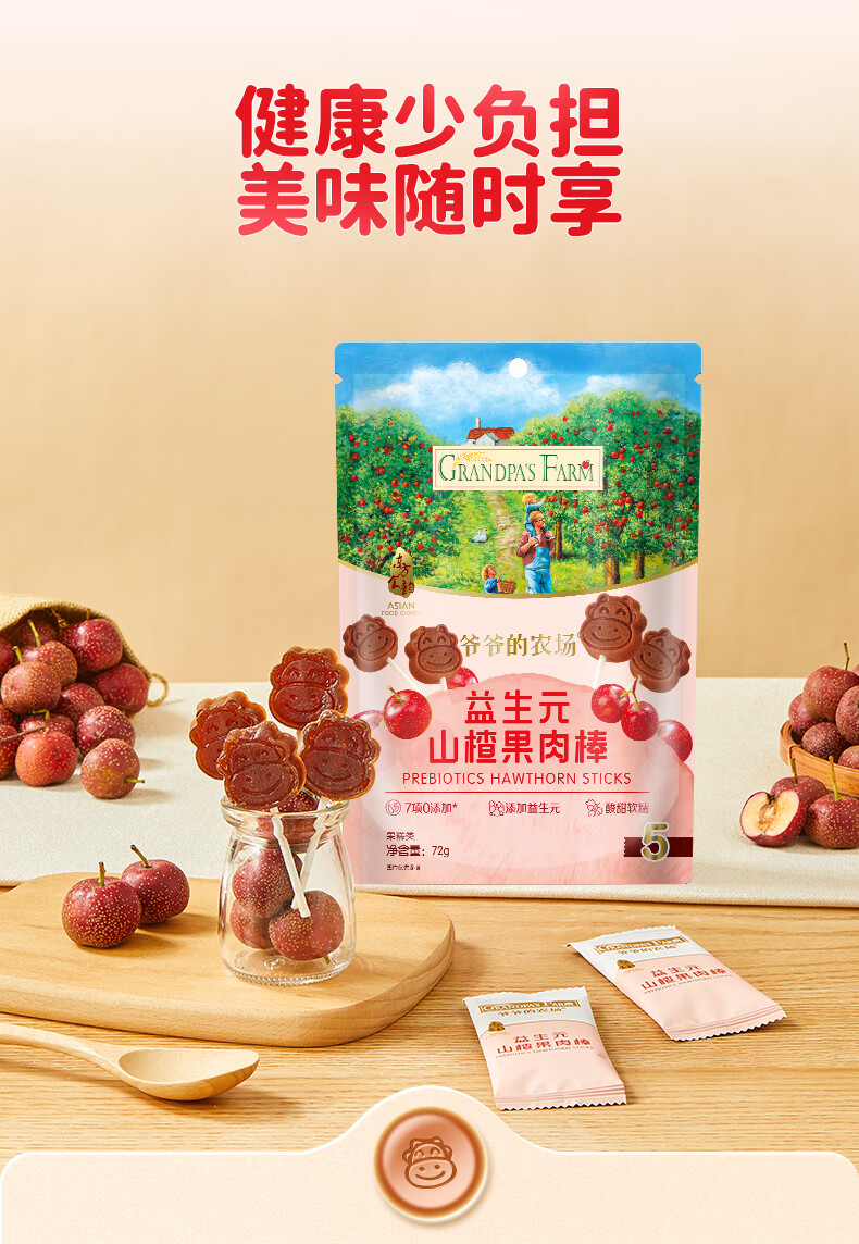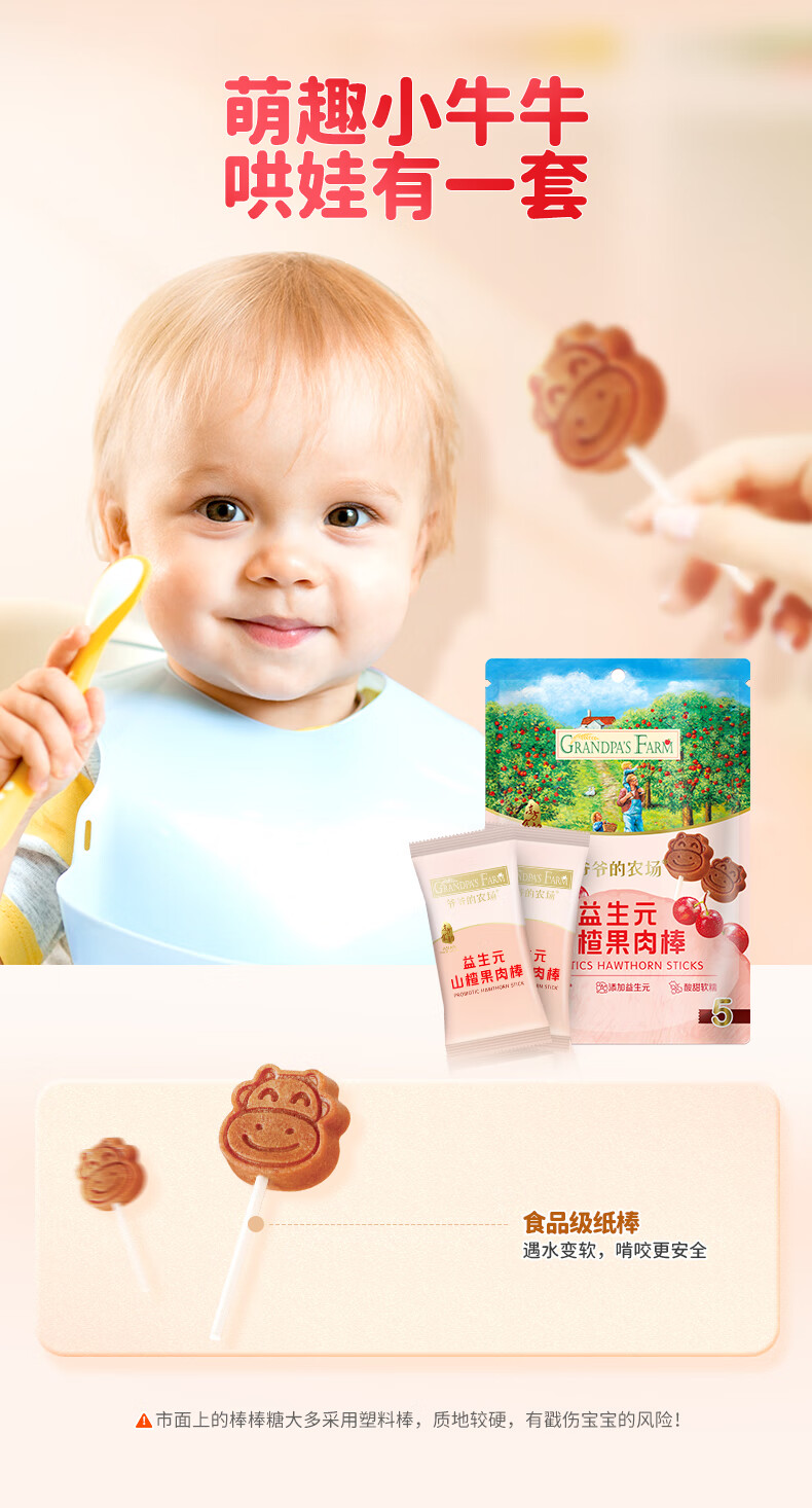 爷爷的农场 益生元山楂棒棒糖宝宝儿童零食 无添加 出行便携72g