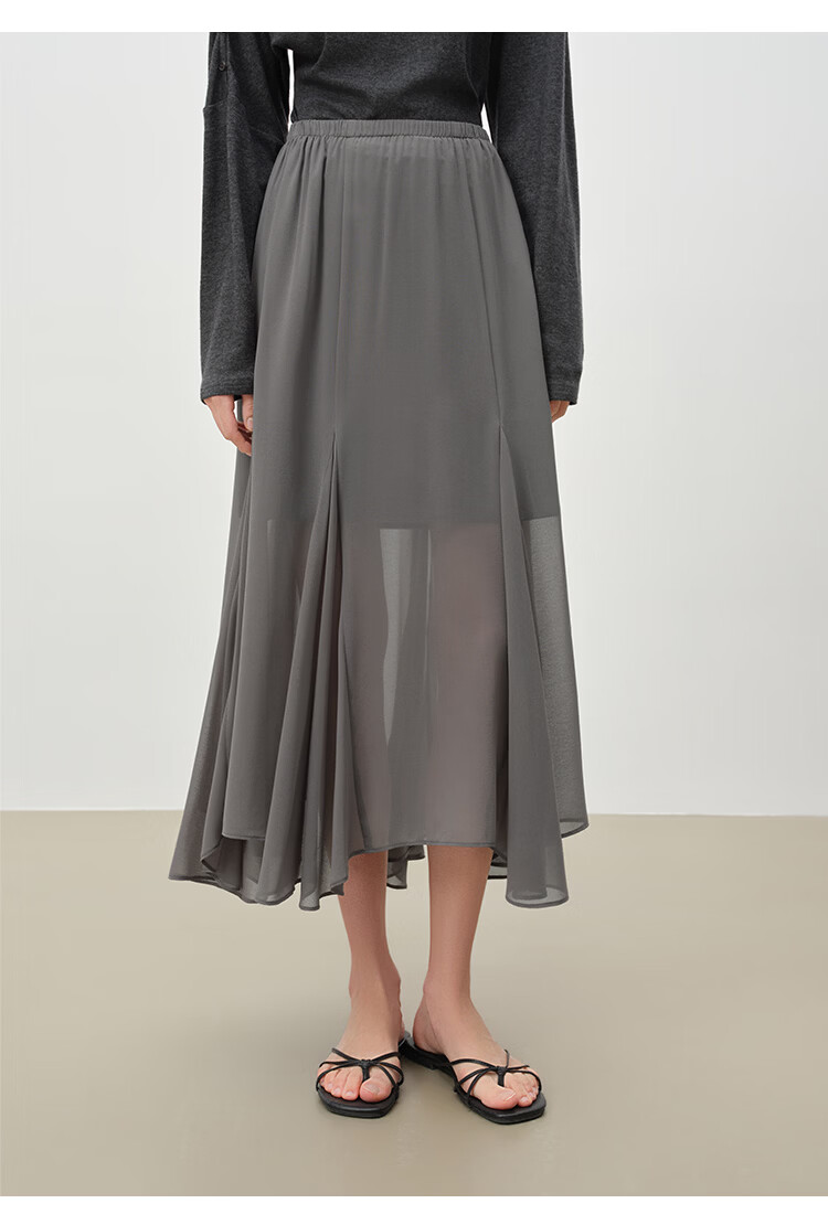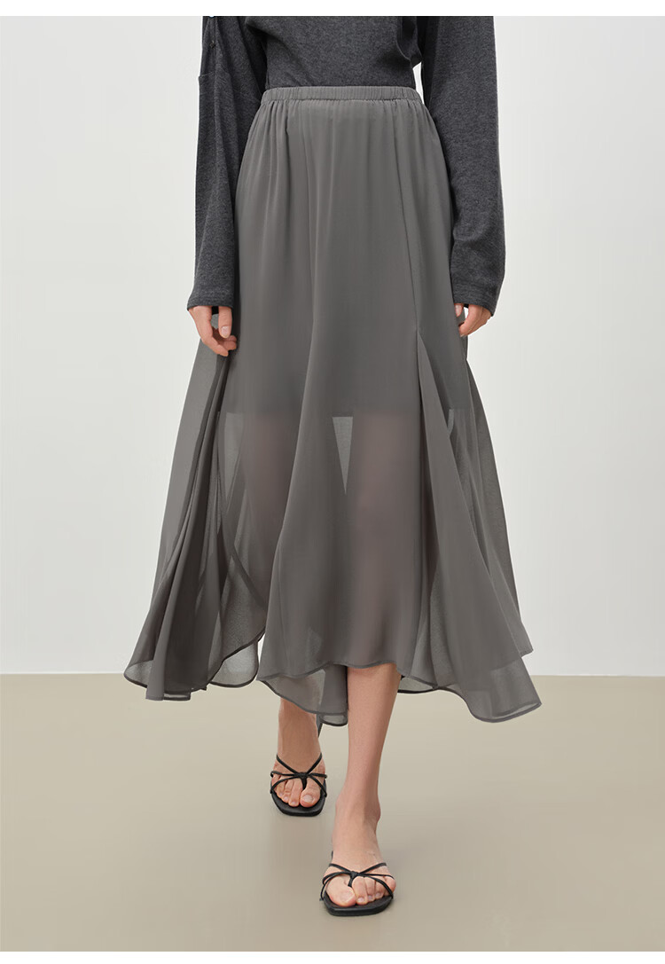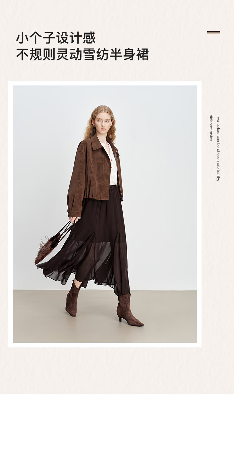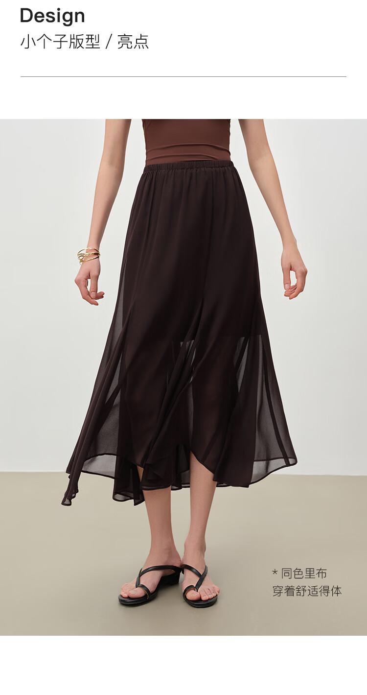 自巧小个子设计感不规则垂感雪纺半身裙女2026早春新品薄纱长裙子 摩卡棕 XXS (尺码:1)
