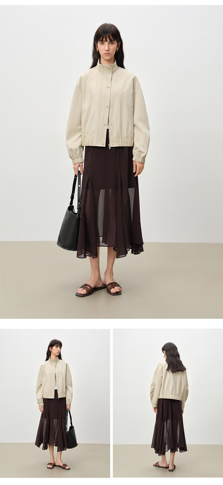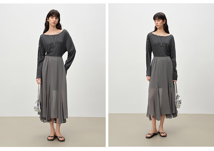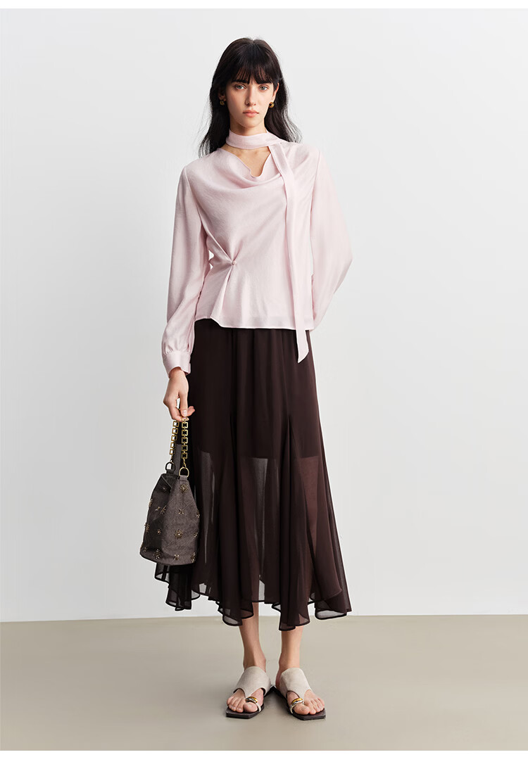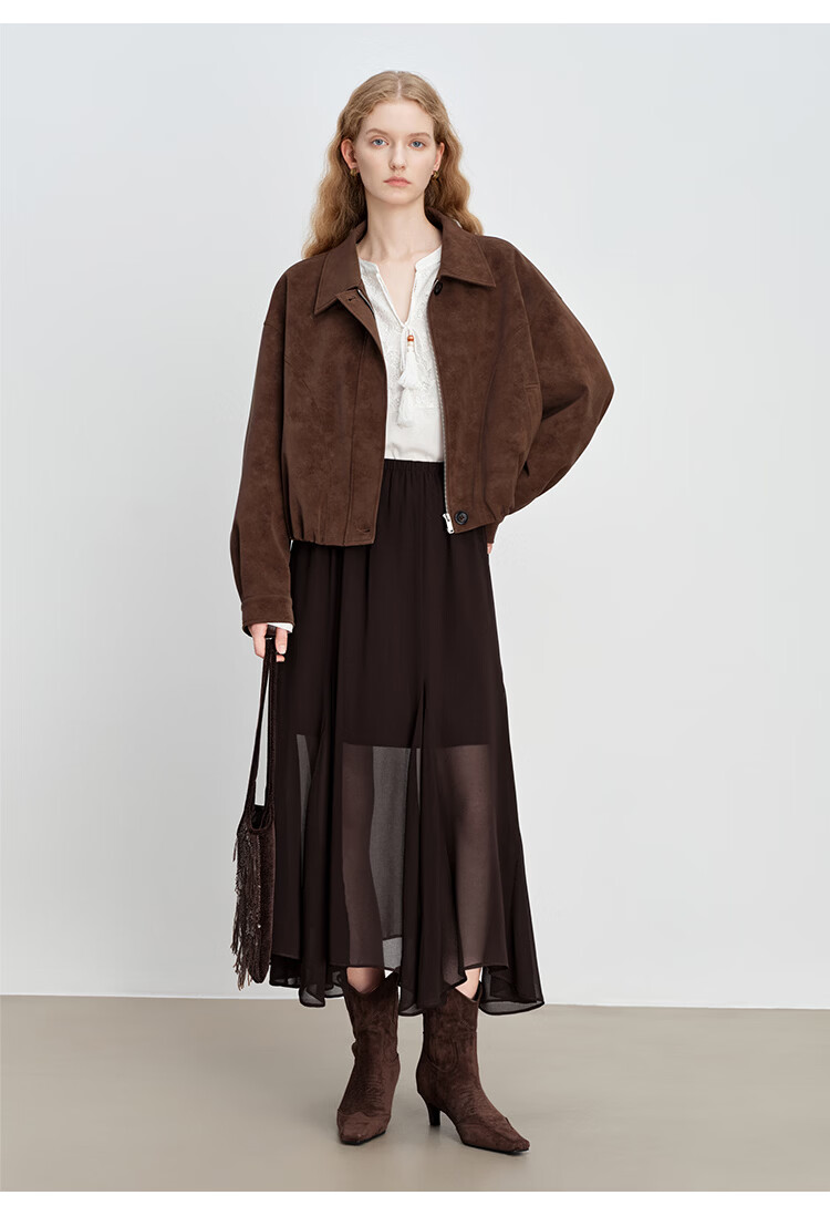 自巧小个子设计感不规则垂感雪纺半身裙女2026早春新品薄纱长裙子 摩卡棕 XXS (尺码:1)