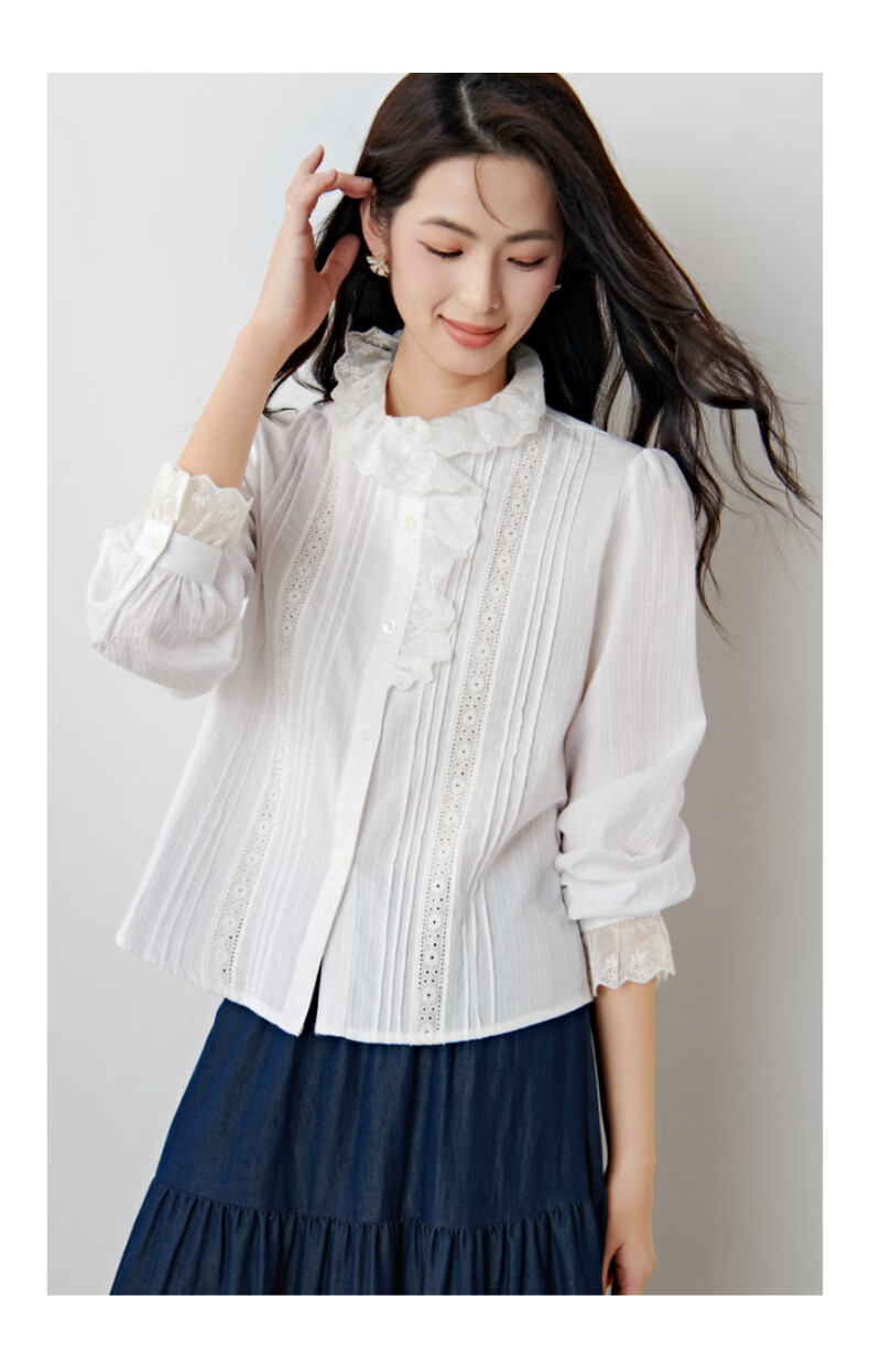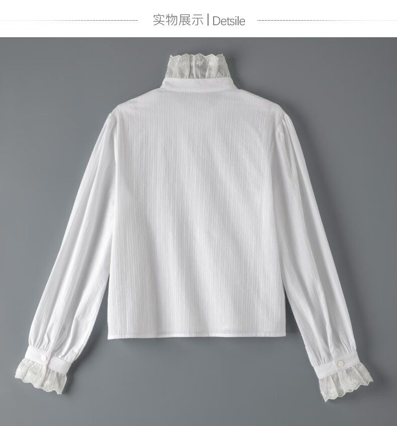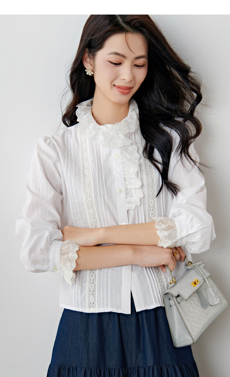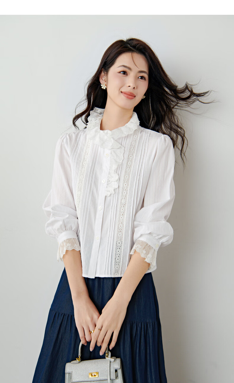 晚白2026年春款法式荷叶领千金感全棉立领上衣风琴褶减龄白衬衫女 白色 XL