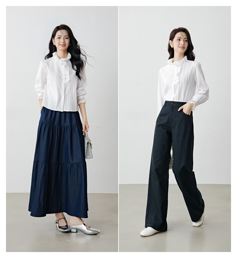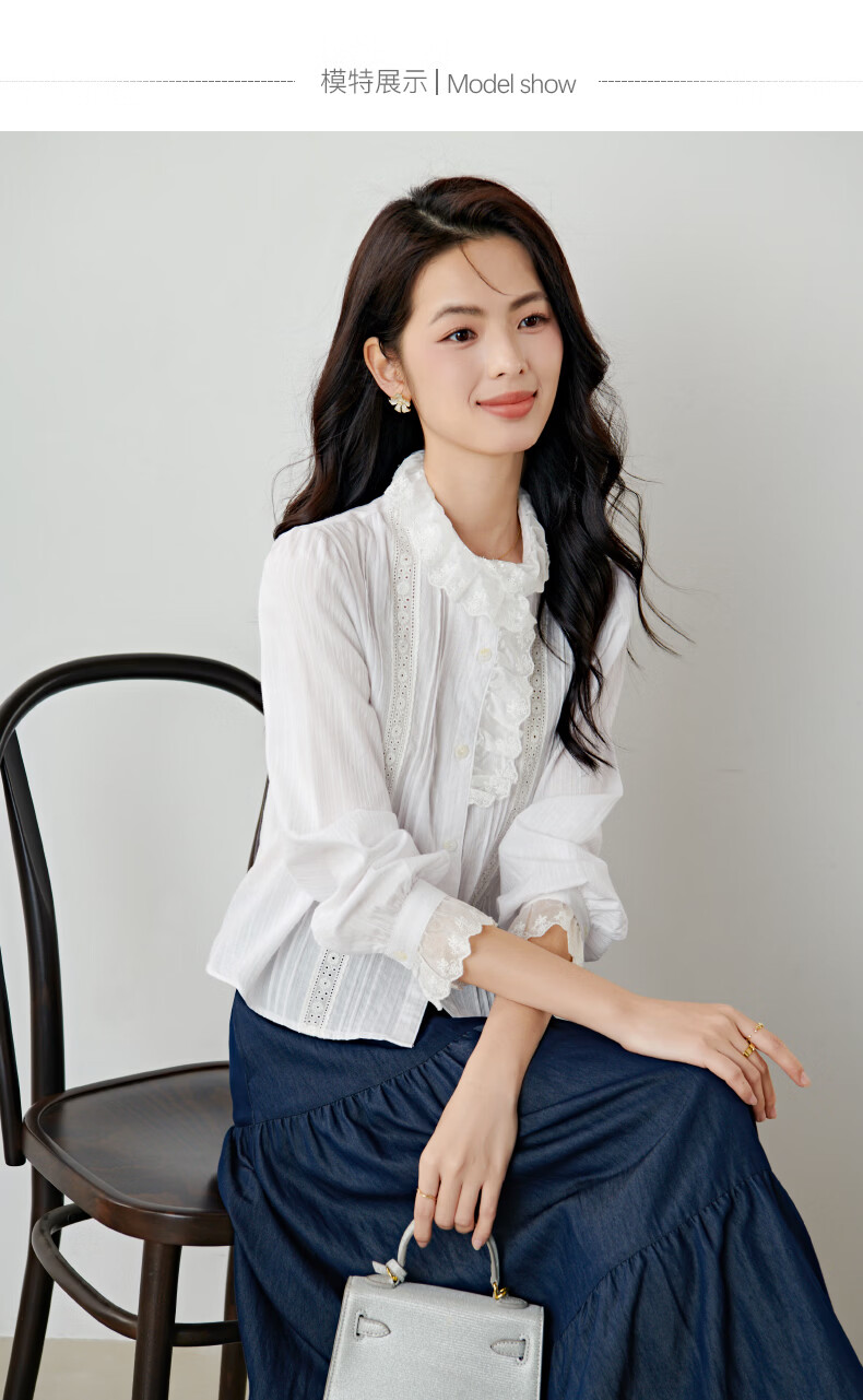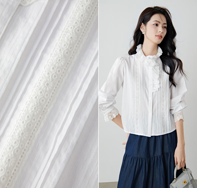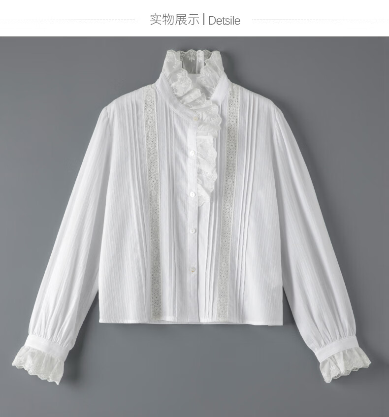 晚白2026年春款法式荷叶领千金感全棉立领上衣风琴褶减龄白衬衫女 白色 XL